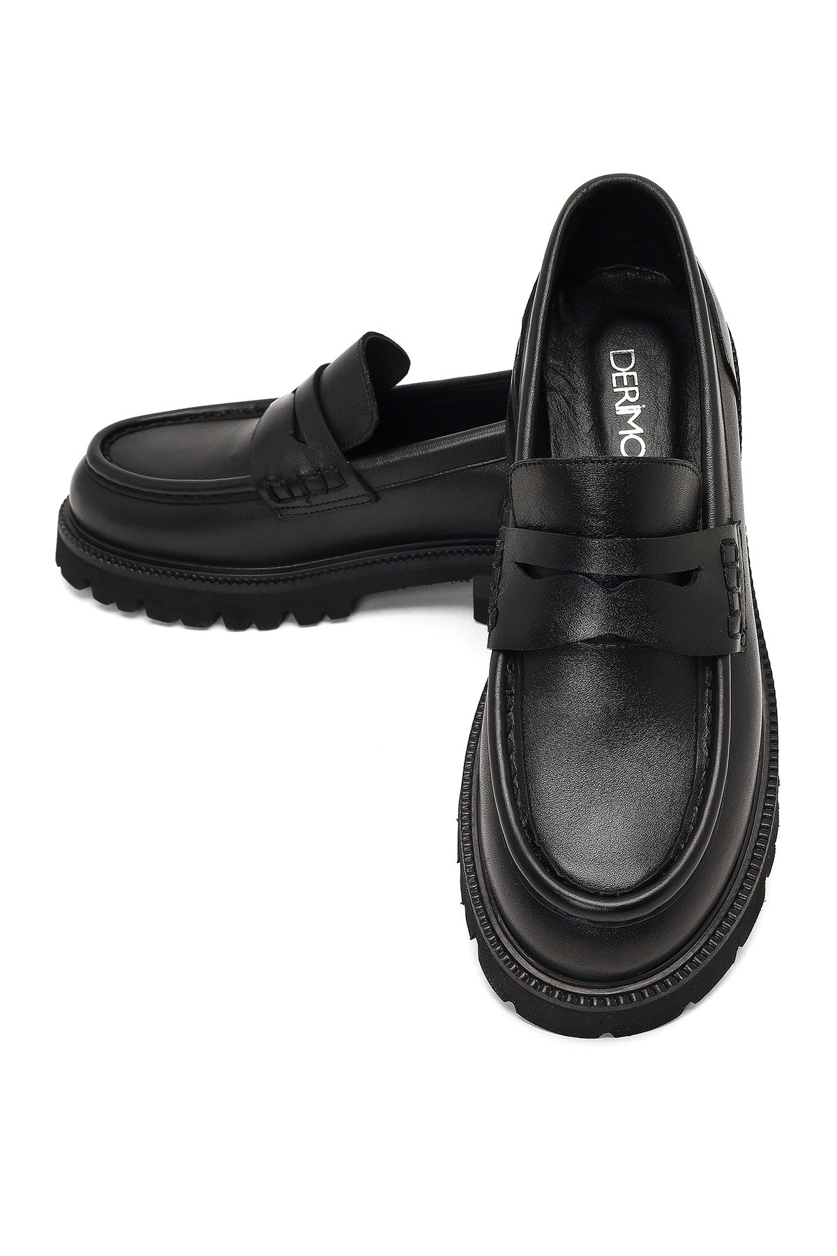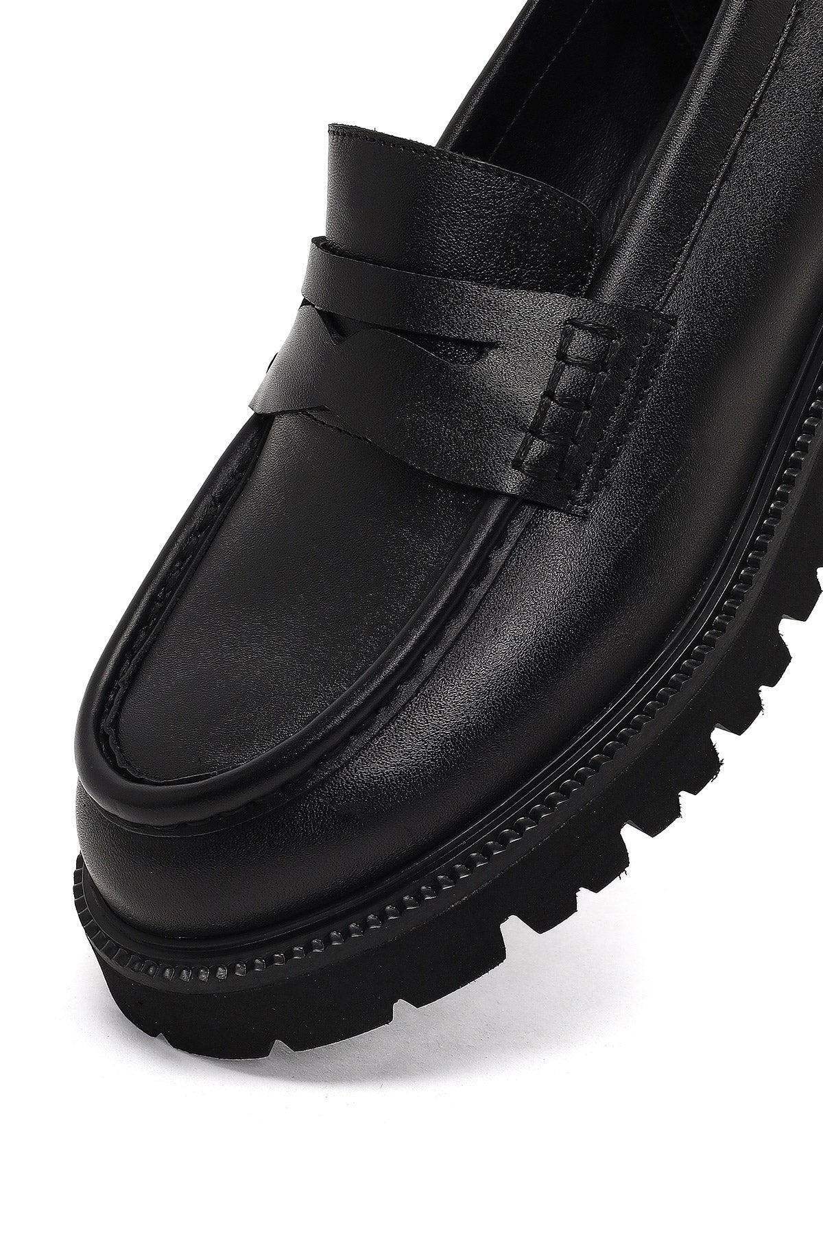 Kadın Siyah Kalın Tabanlı Deri Loafer