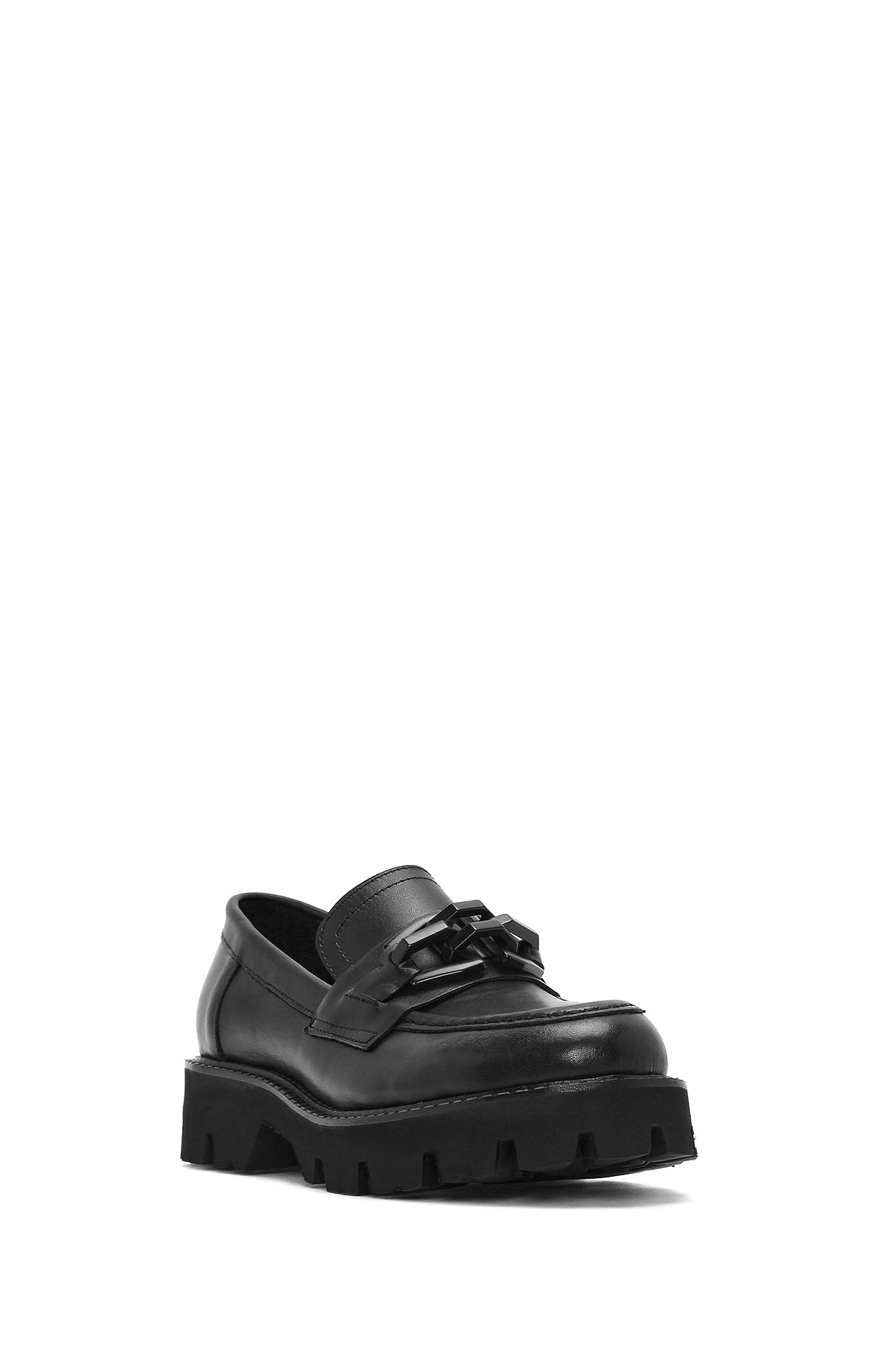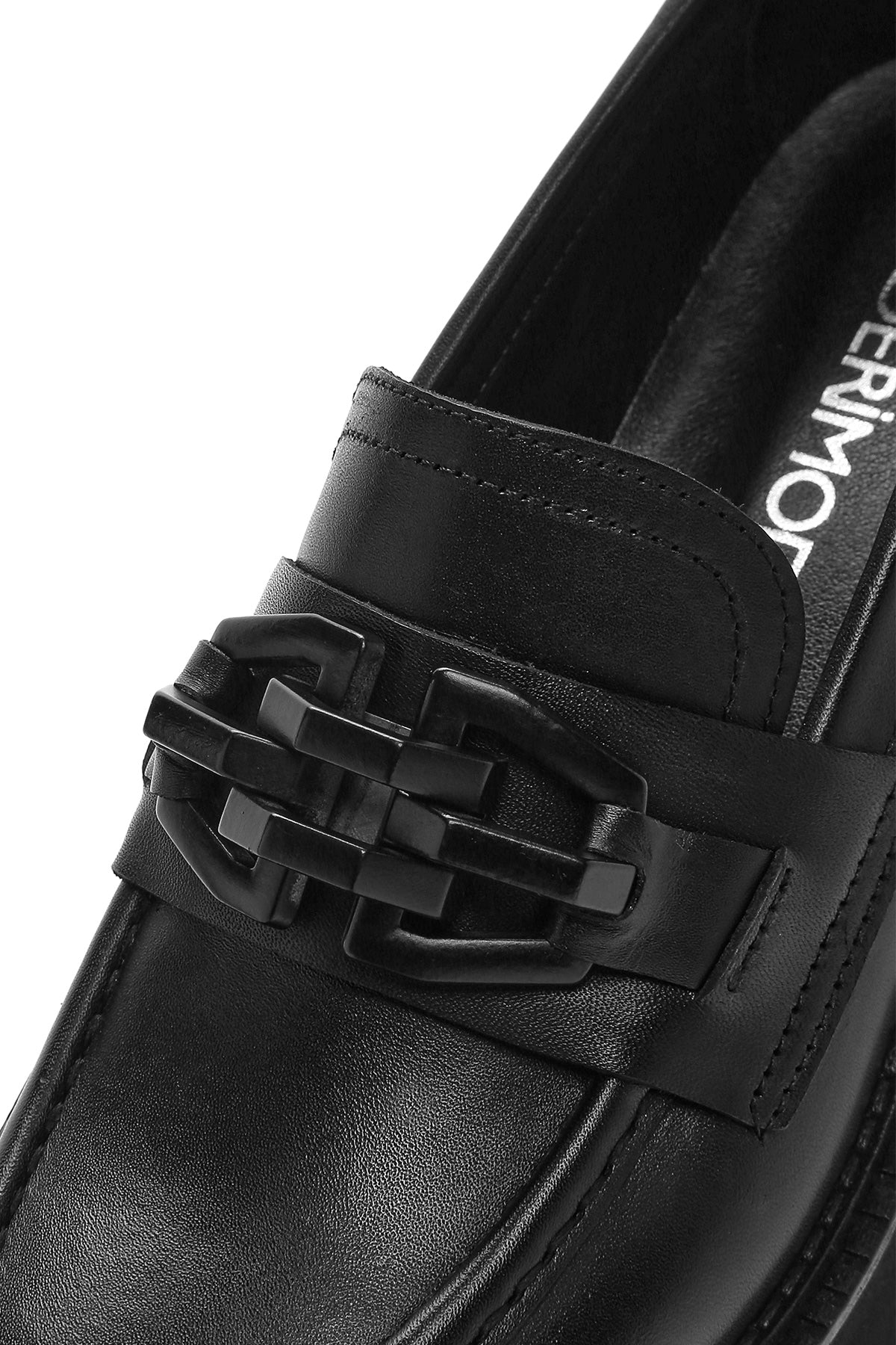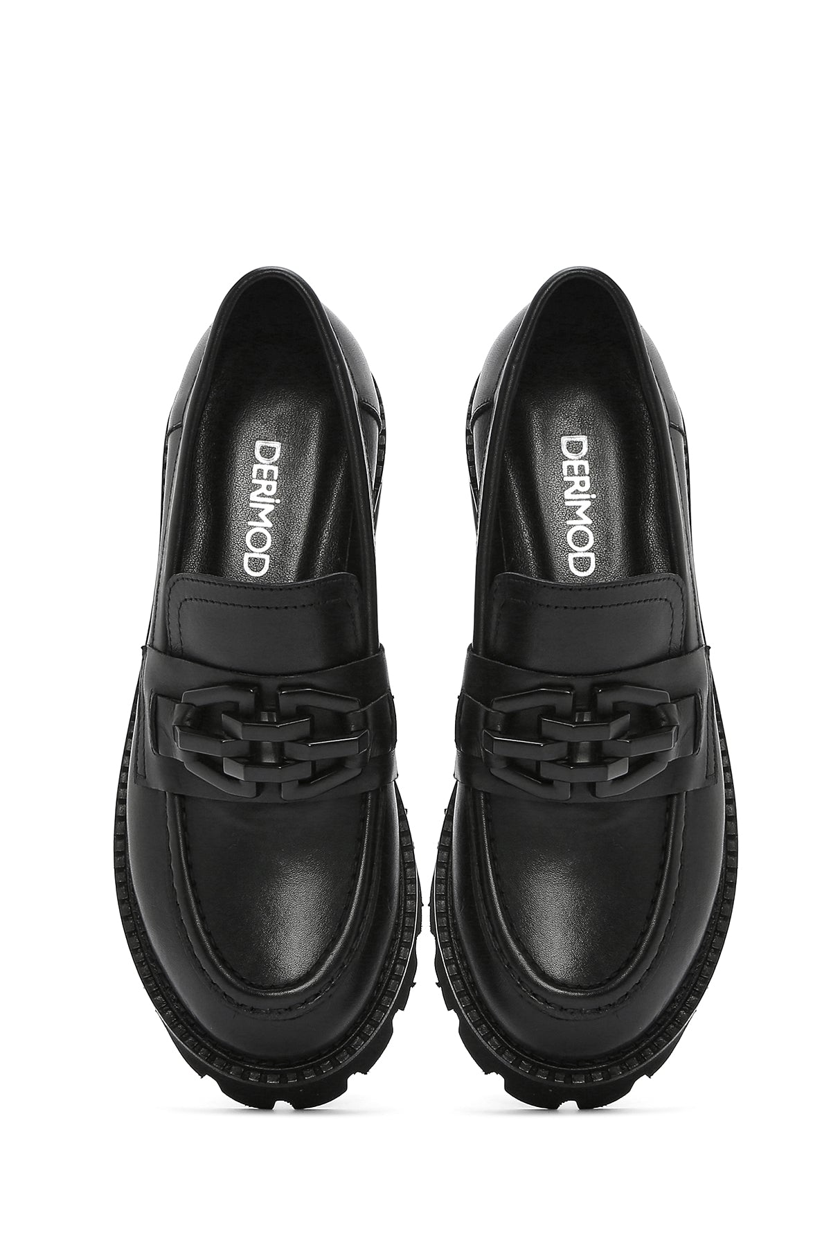 Kadın Siyah Kalın Tabanlı Deri Maskülen Loafer