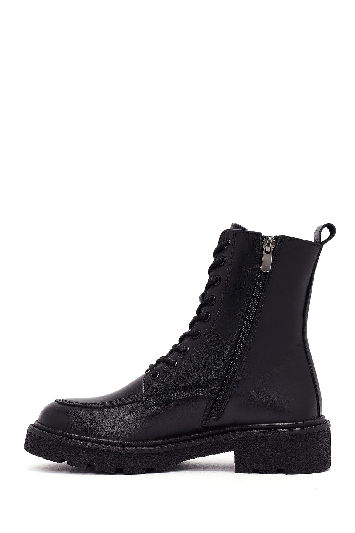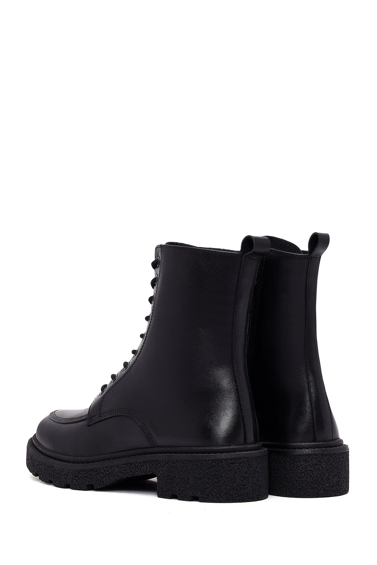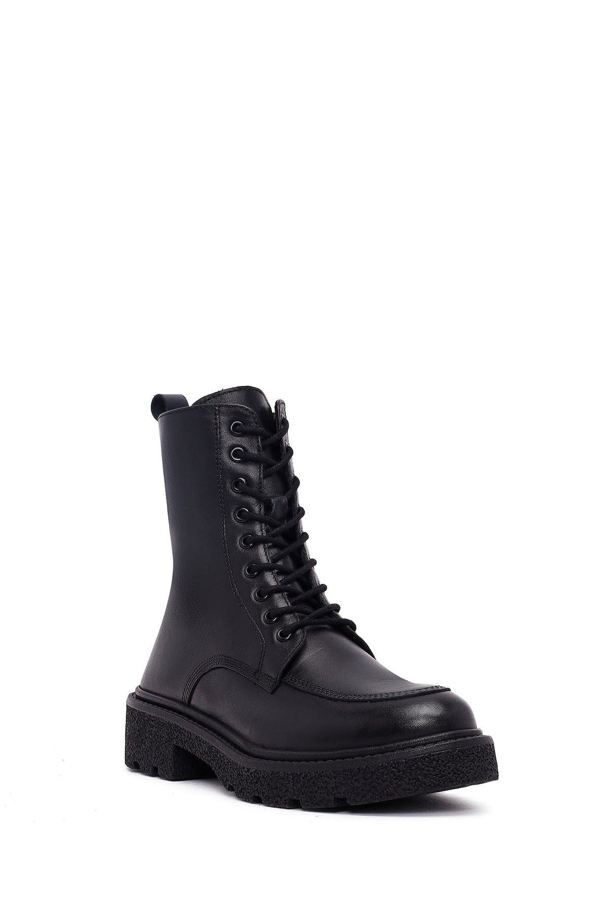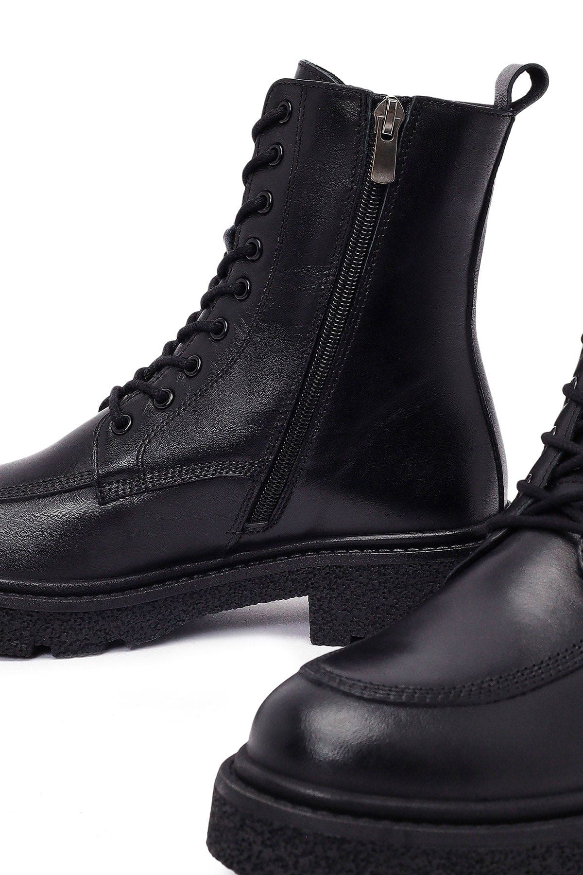 Kadın Siyah Fermuarlı Kalın Tabanlı Deri Postal Bot