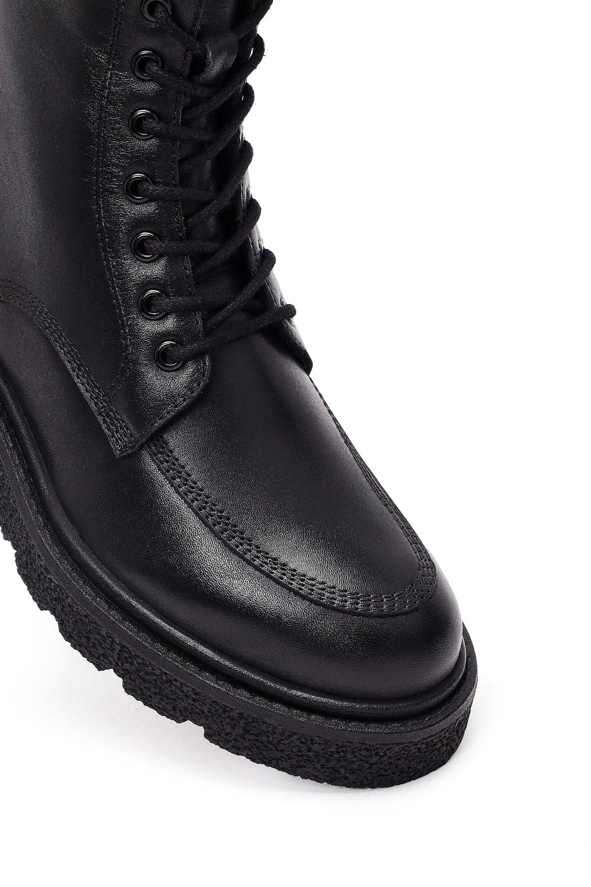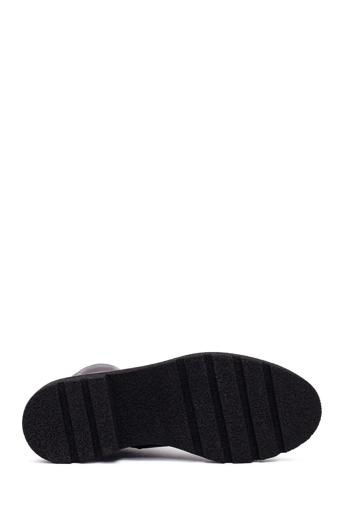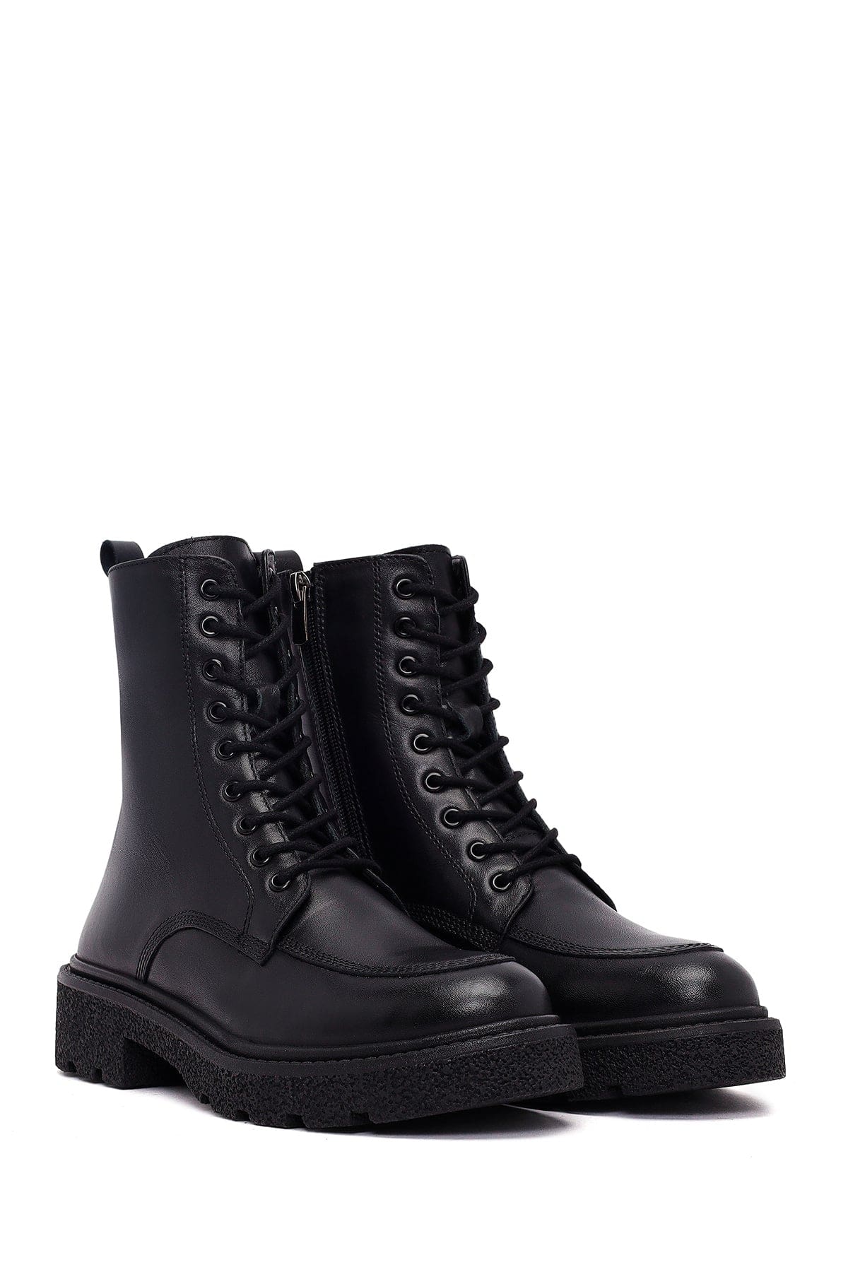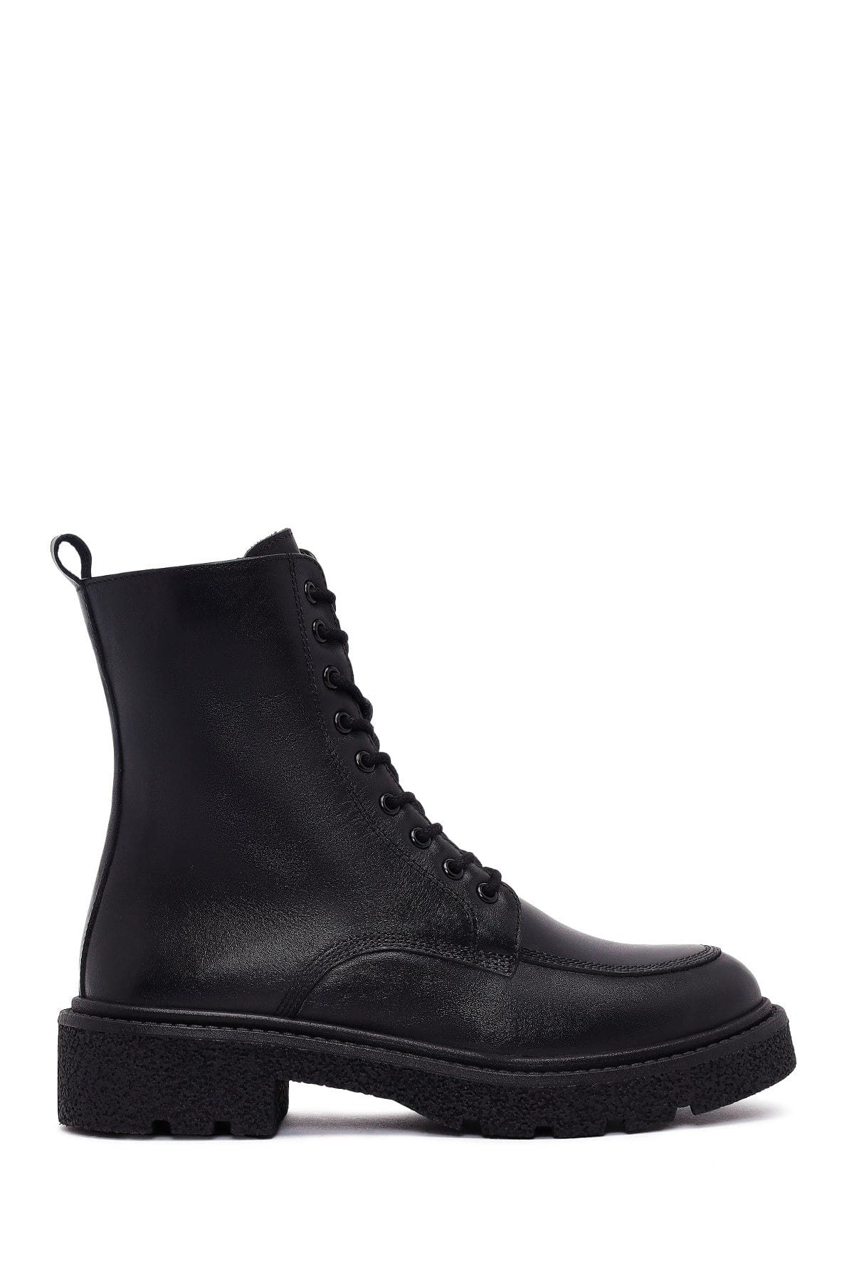 Kadın Siyah Fermuarlı Kalın Tabanlı Deri Postal Bot