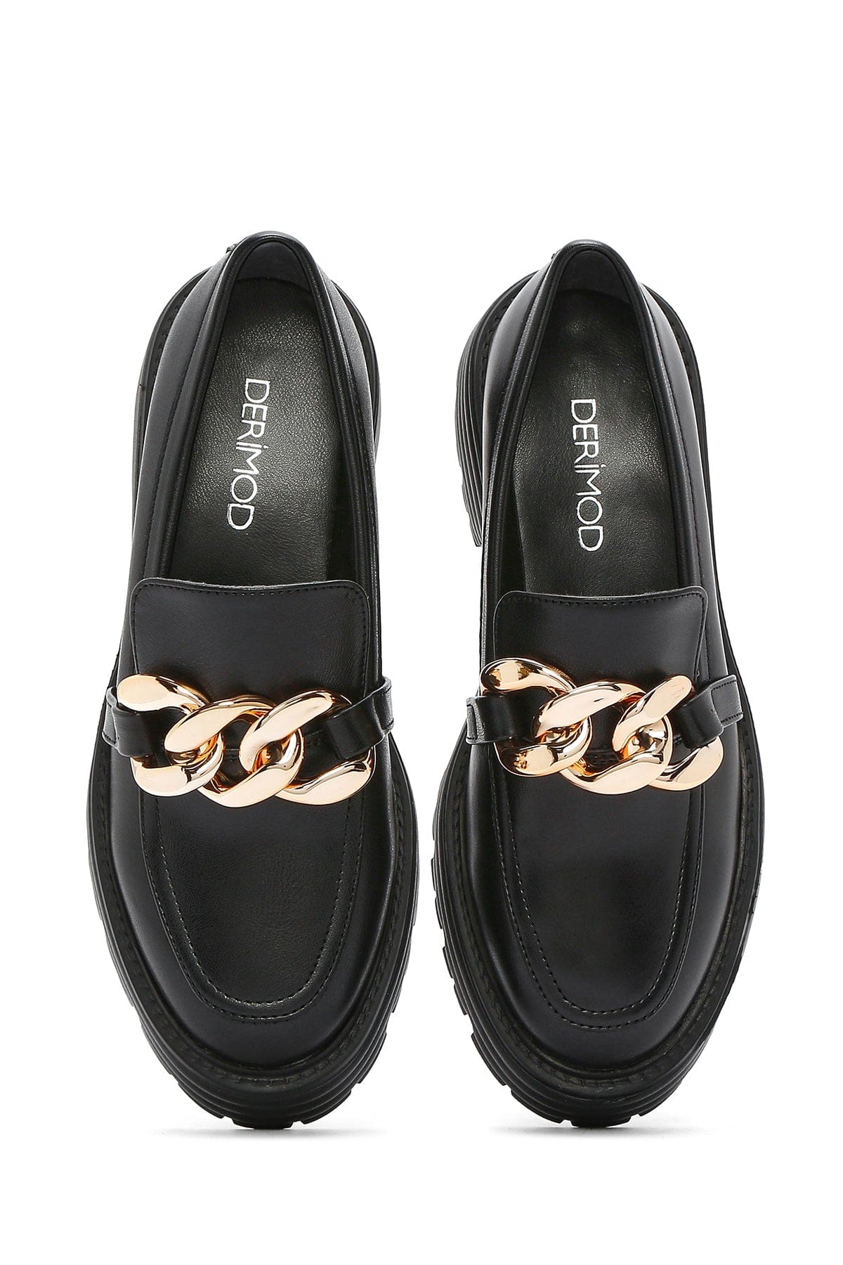 Kadın Siyah Kalın Tabanlı Maskülen Loafer