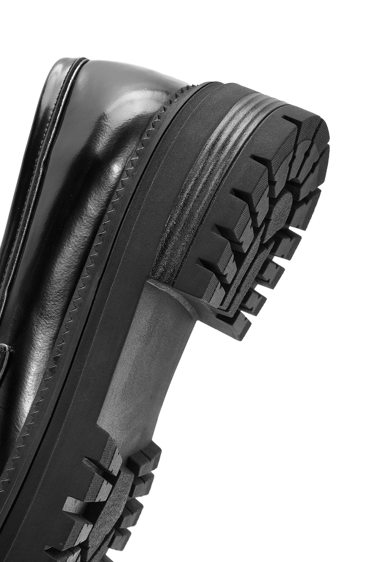 Kadın Siyah Kalın Tabanlı Deri Maskülen Loafer