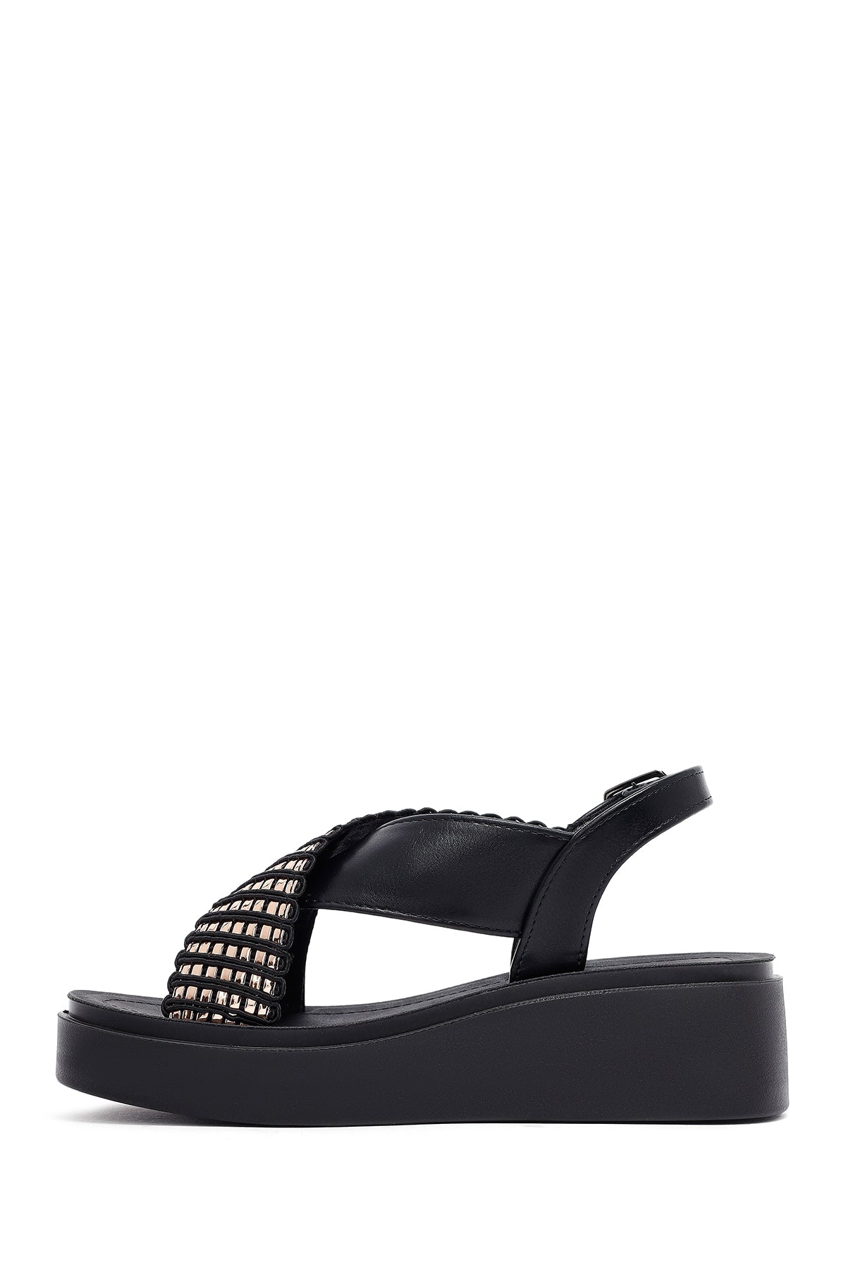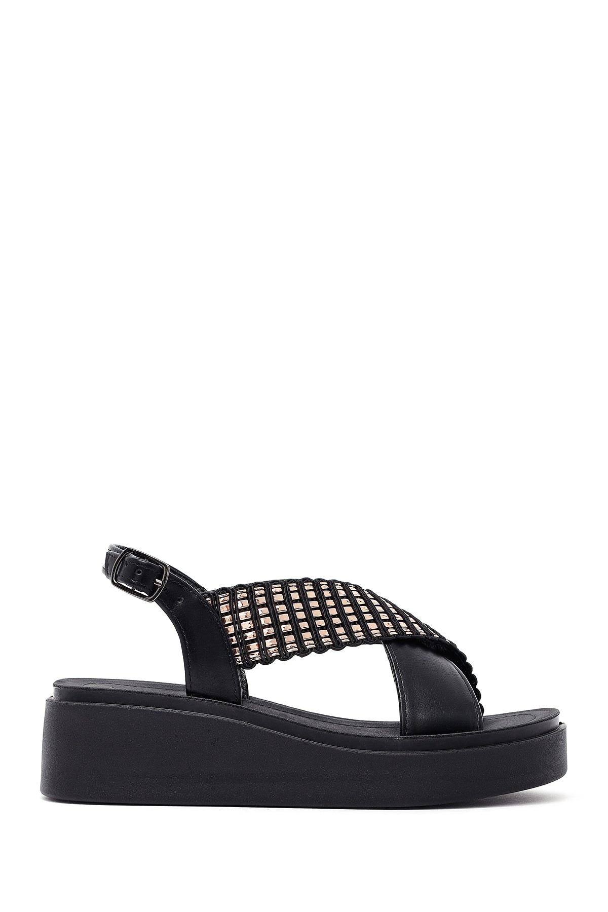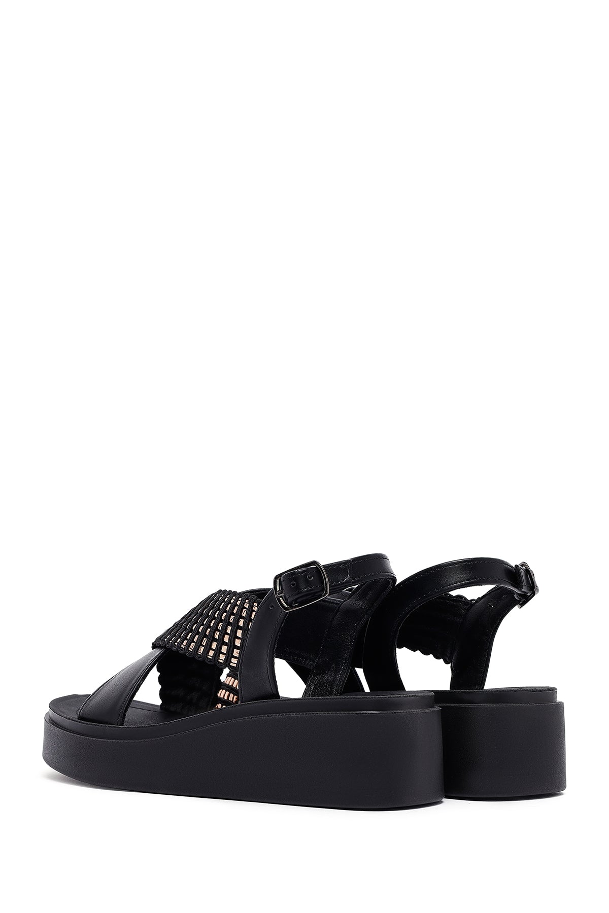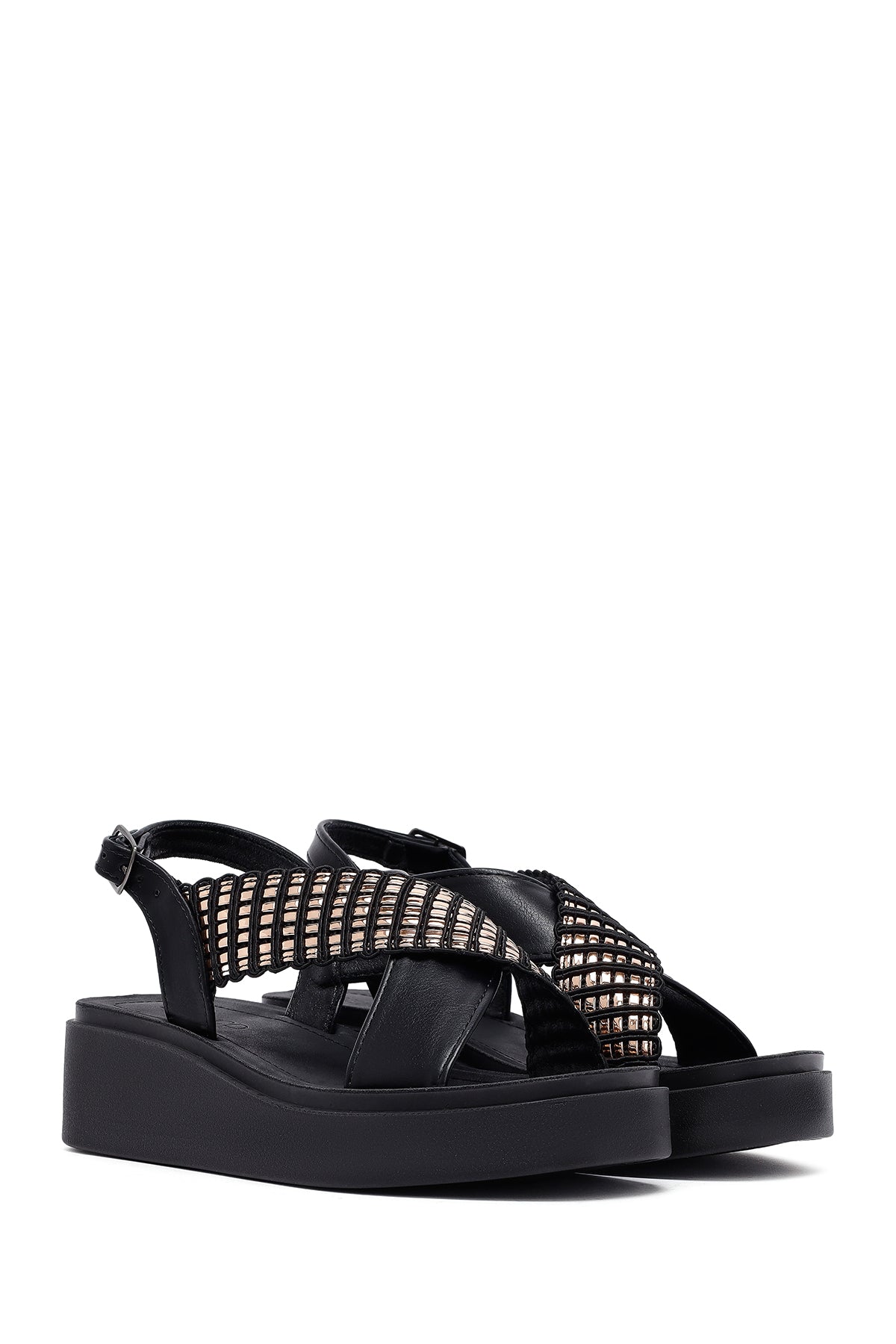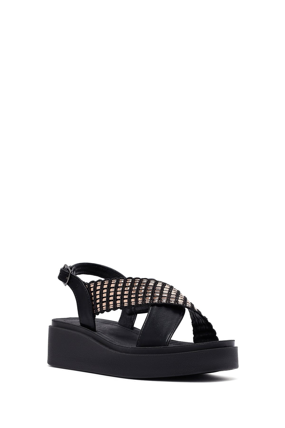 Kadın Siyah Kalın Tabanlı Taşlı Sandalet