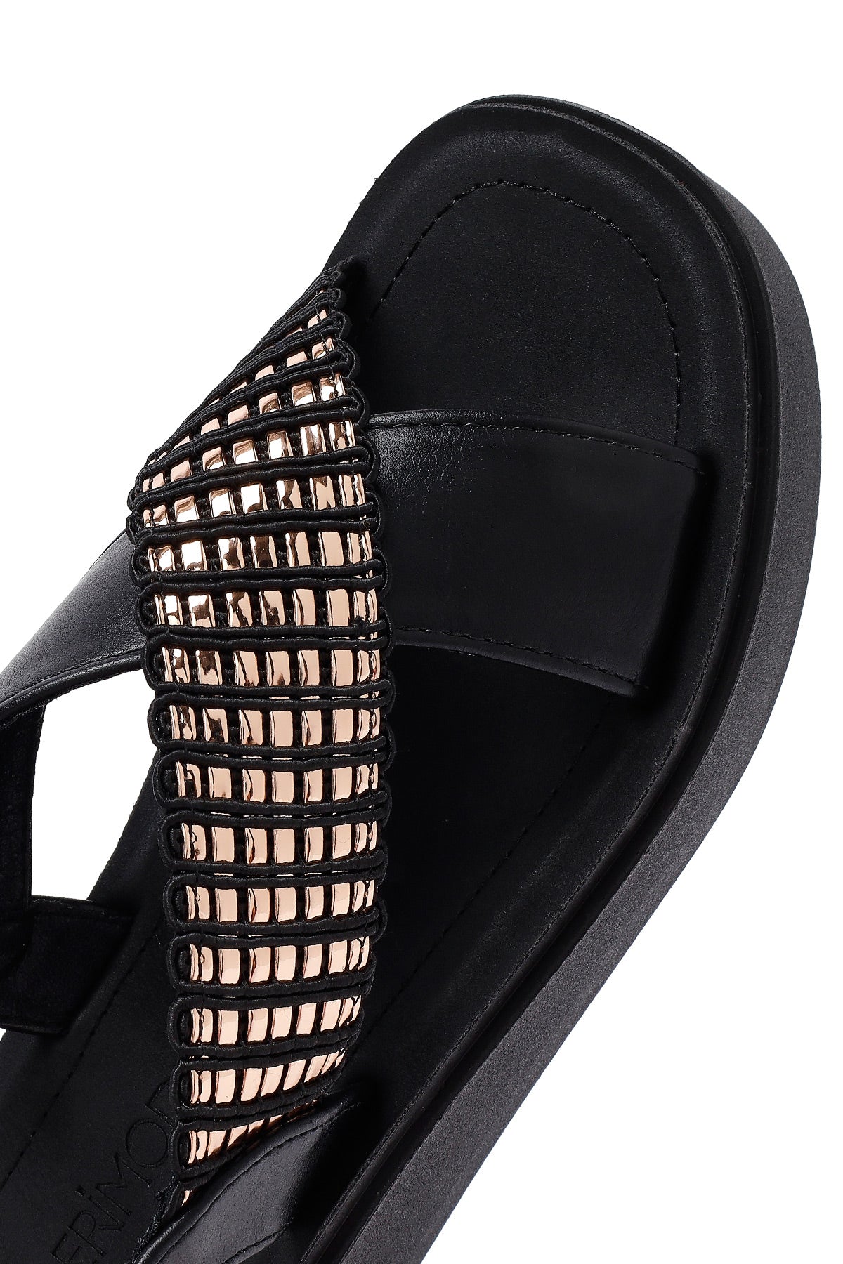 صندل زنانه مشکی لژدار نگیندار دری مد