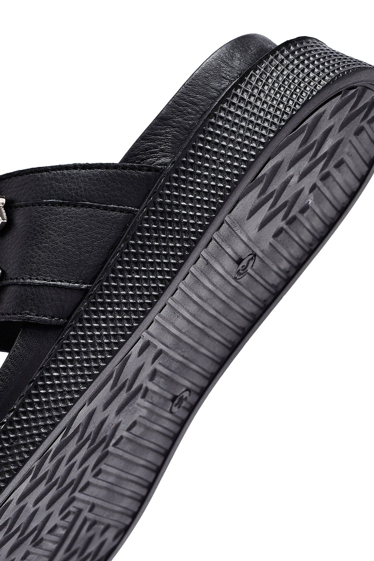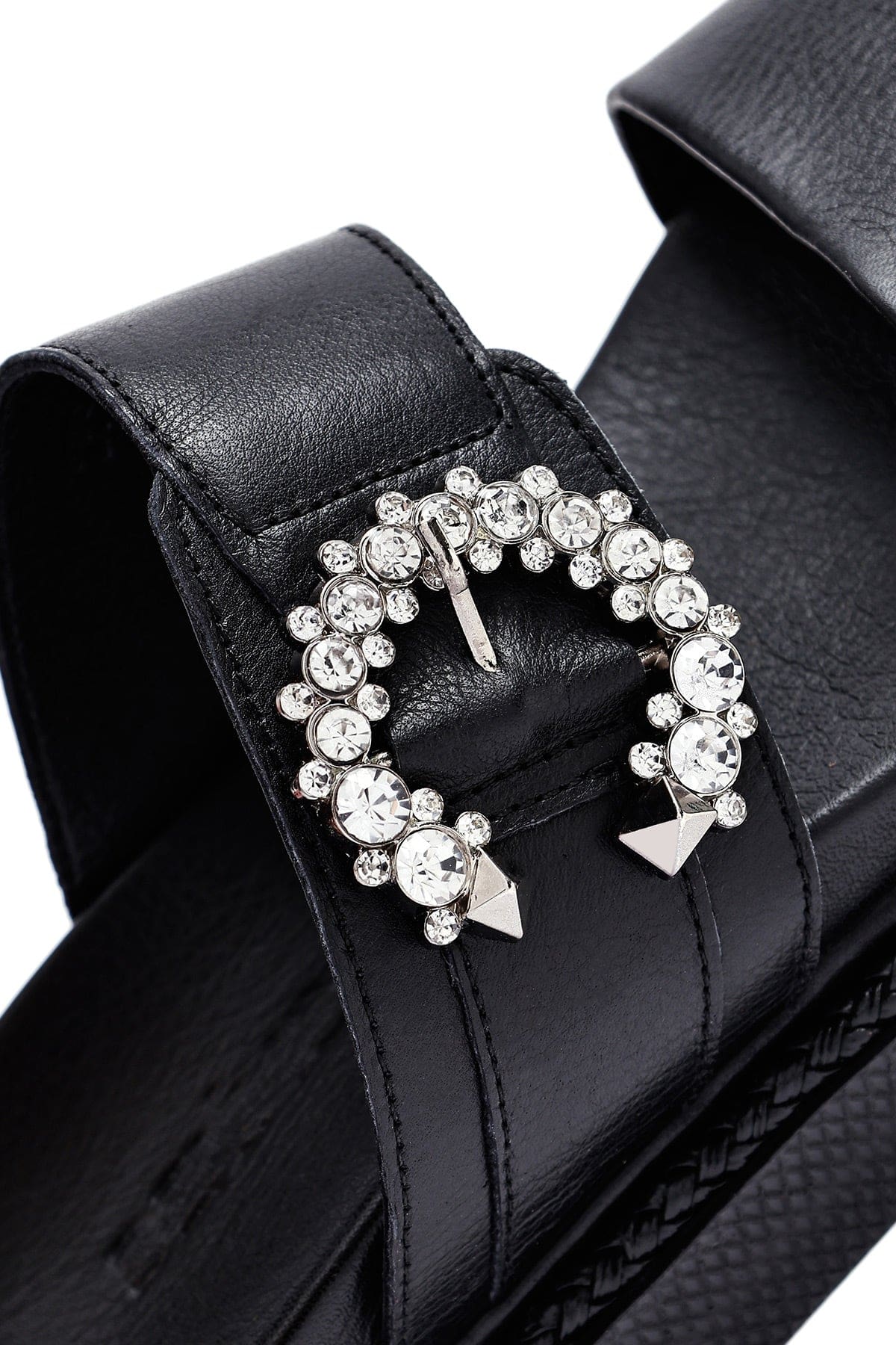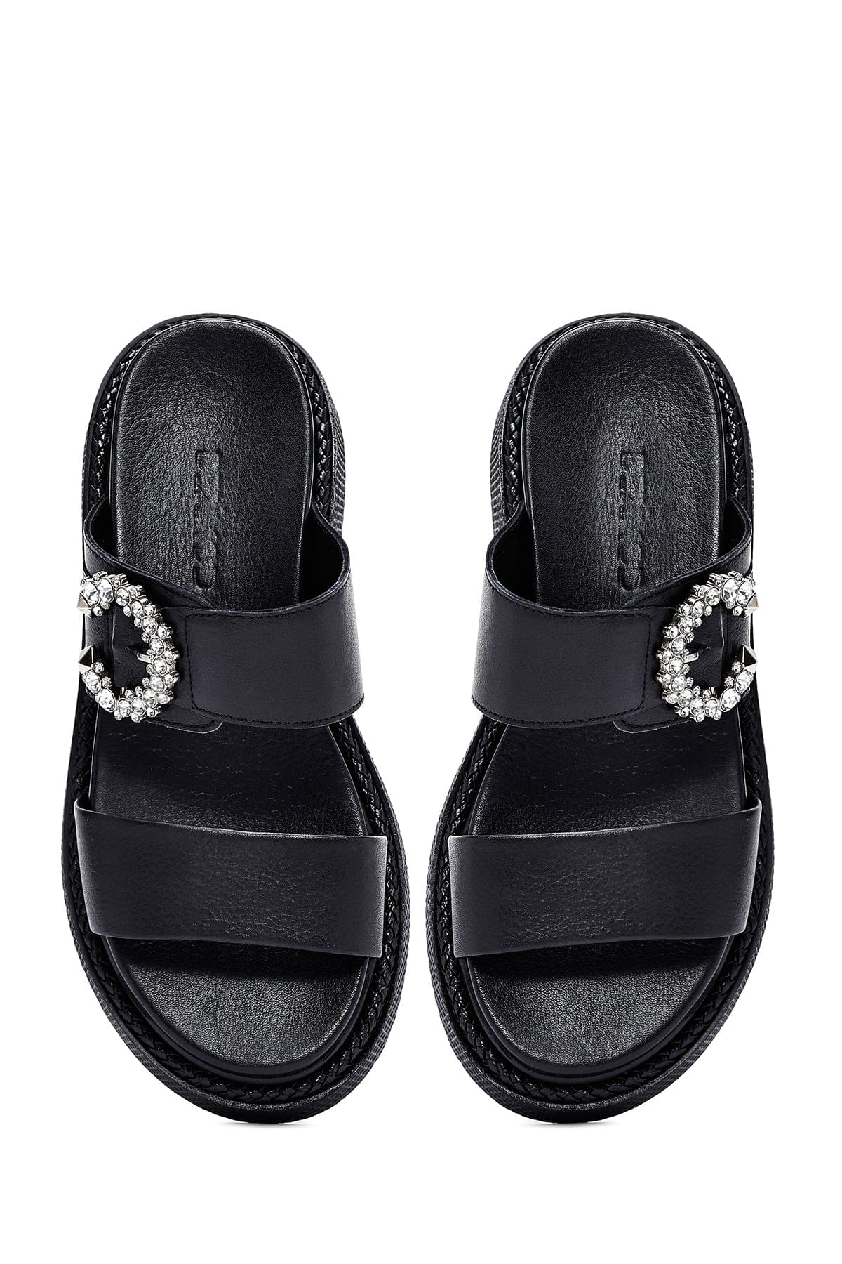 Kadın Siyah Taşlı Kalın Tabanlı Deri Terlik
