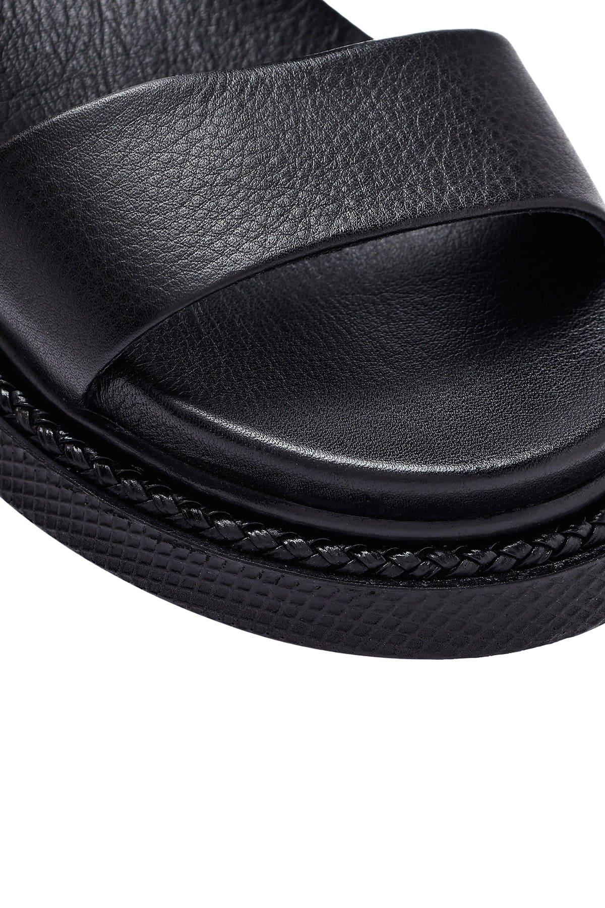 دمپایی زنانه چرم مشکی نگیندار ضخیمتنه دری مد
