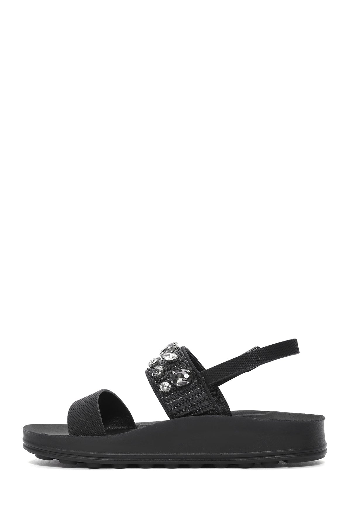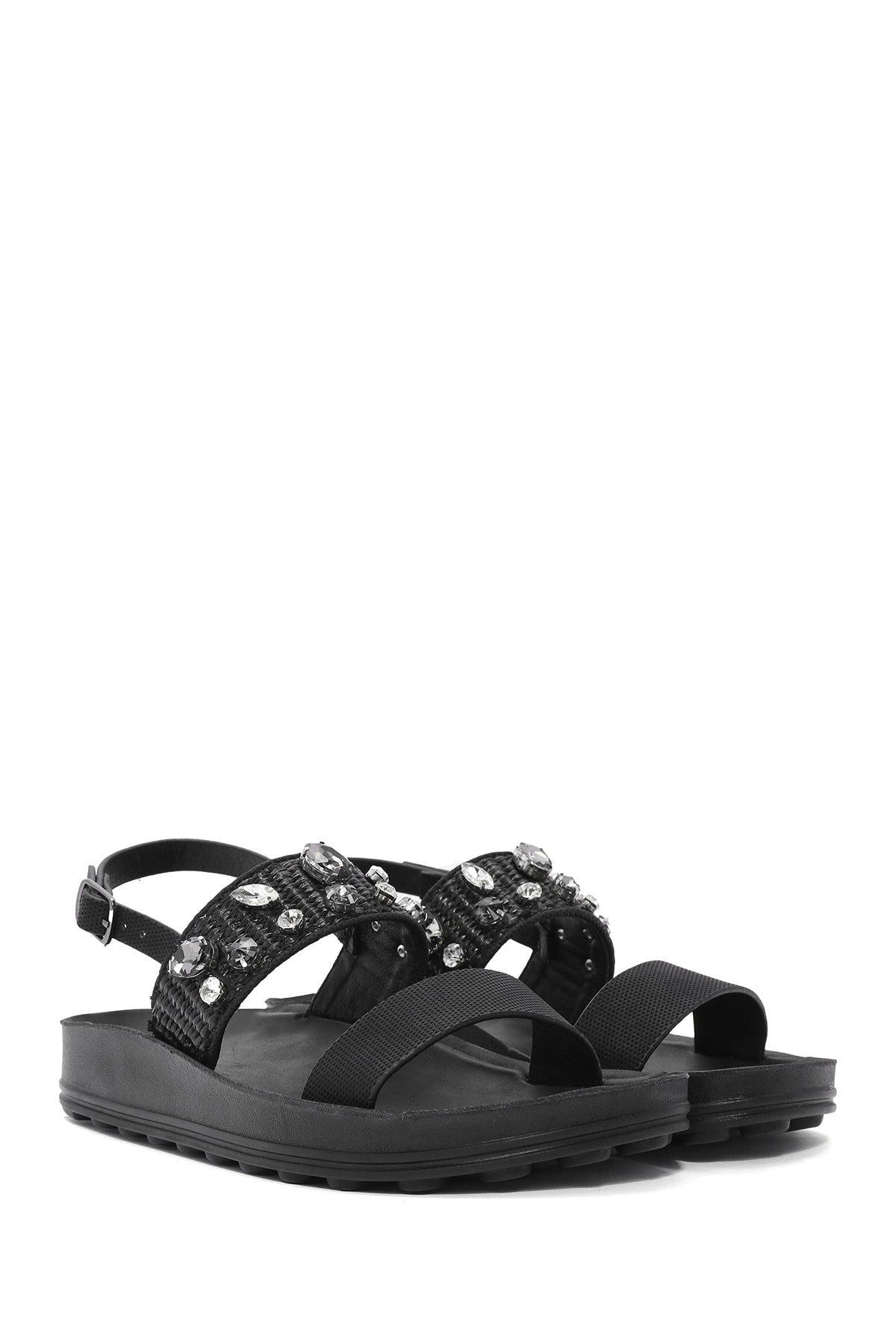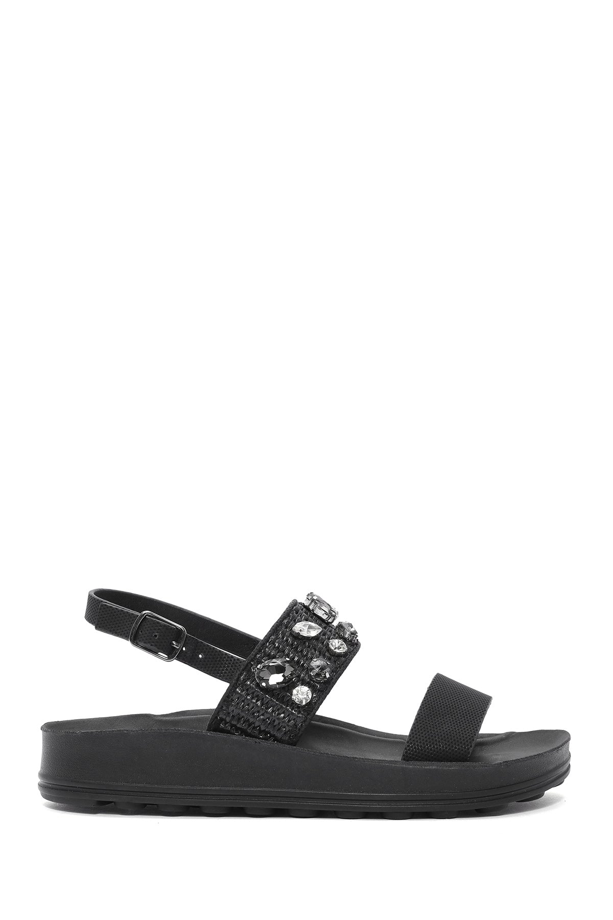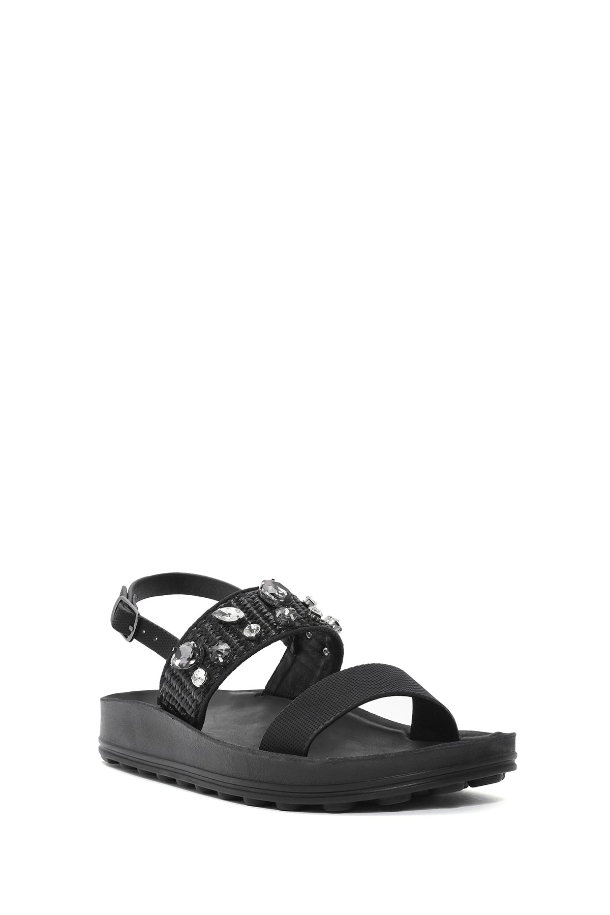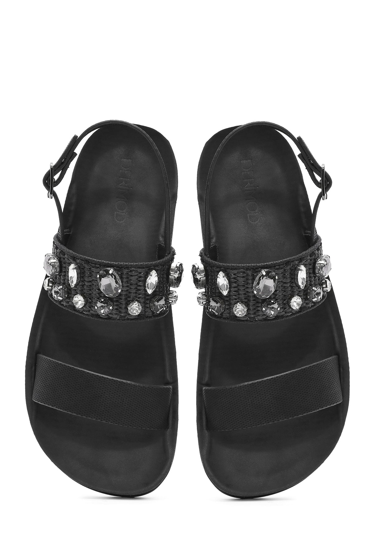 Kadın Siyah Kalın Tabanlı Taşlı Sandalet