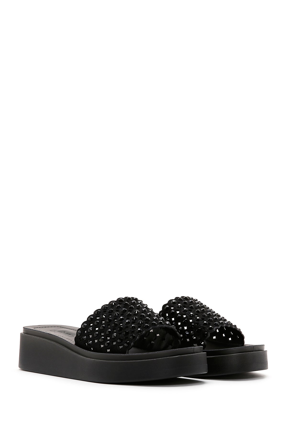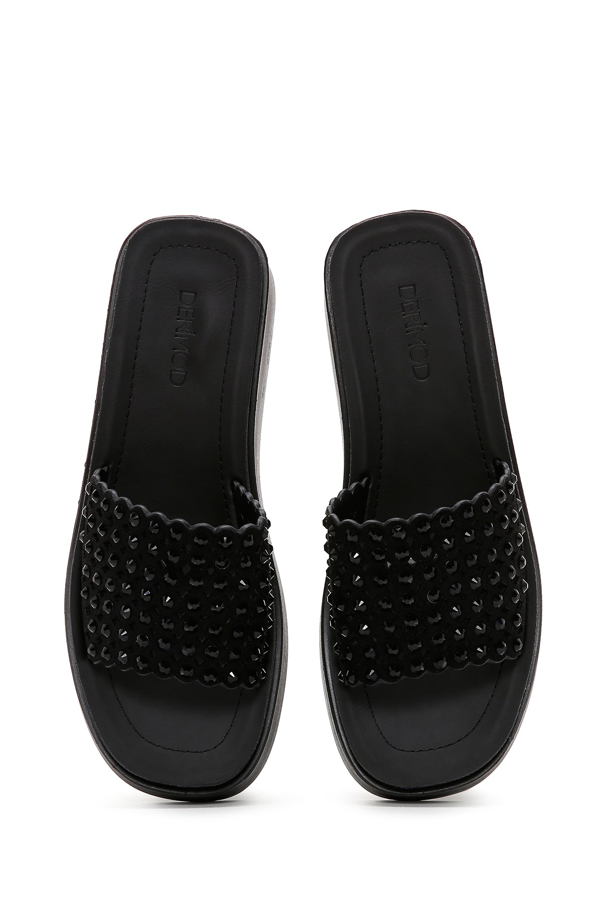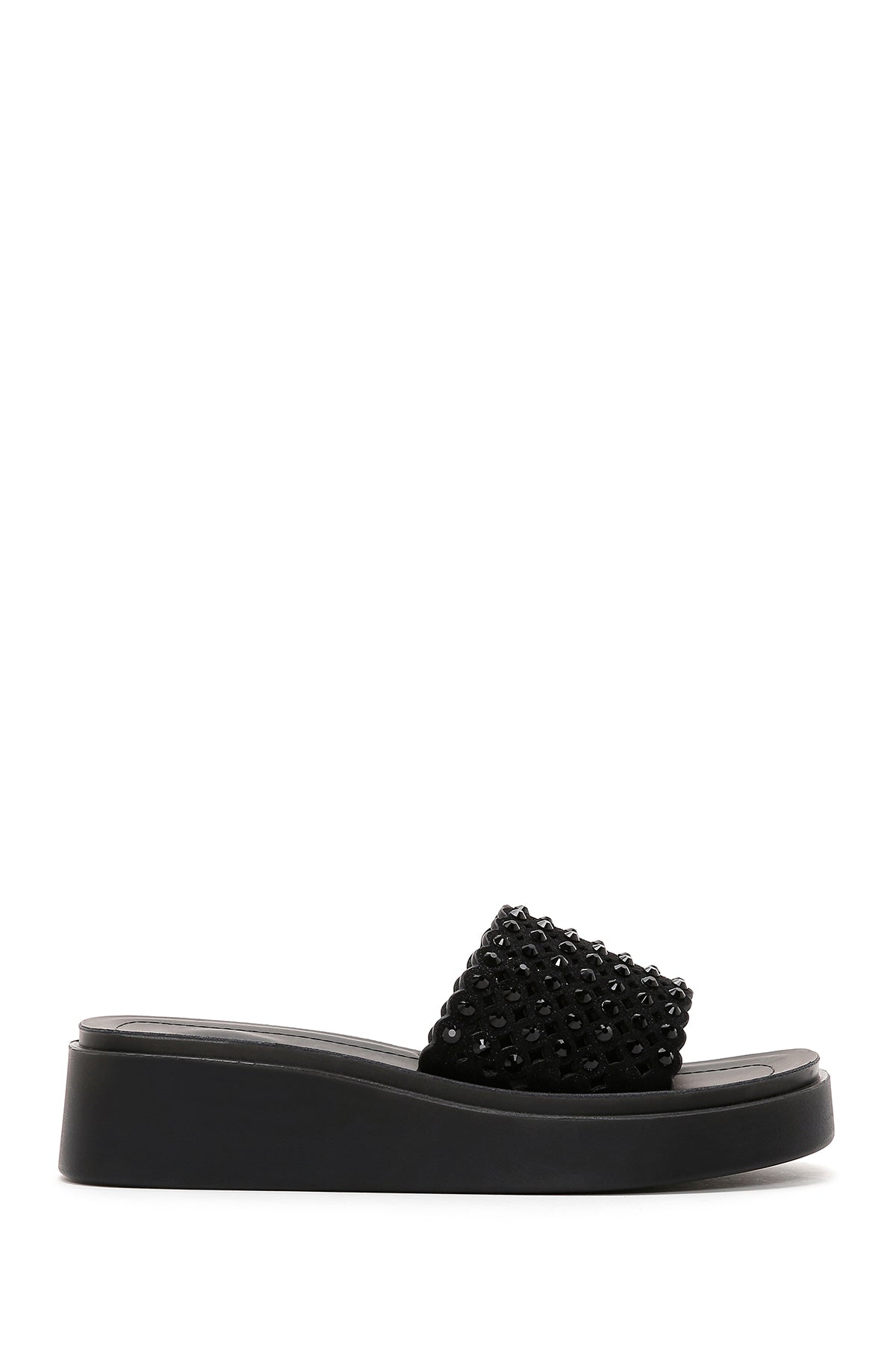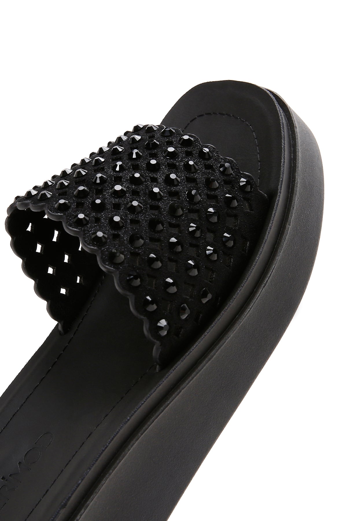 Kadın Siyah Kalın Tabanlı Taşlı Terlik