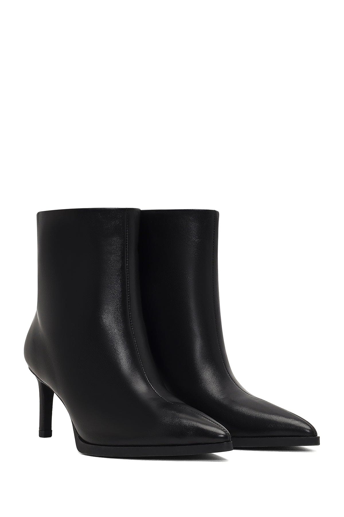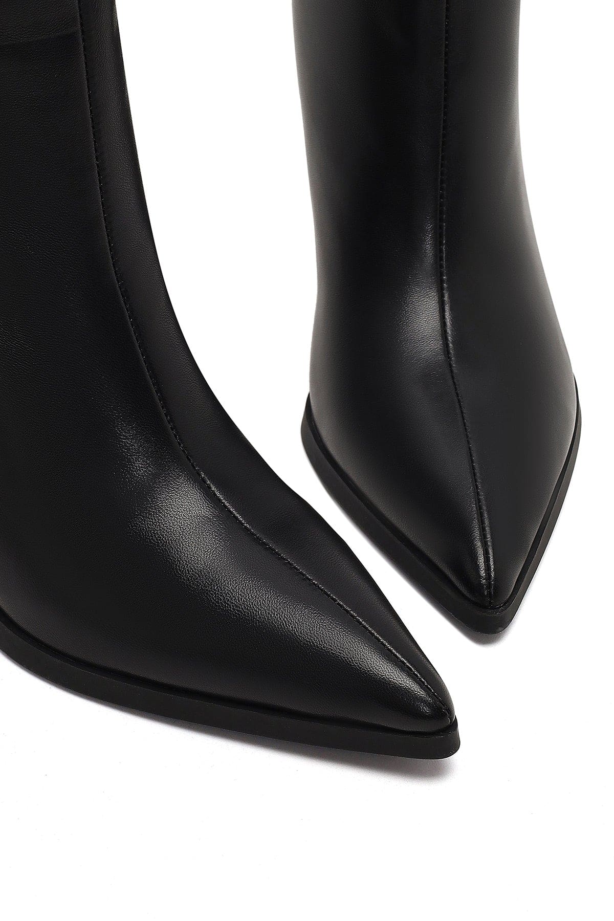 بوت زنانه چرم مشکی پاشنهنازک دری مد