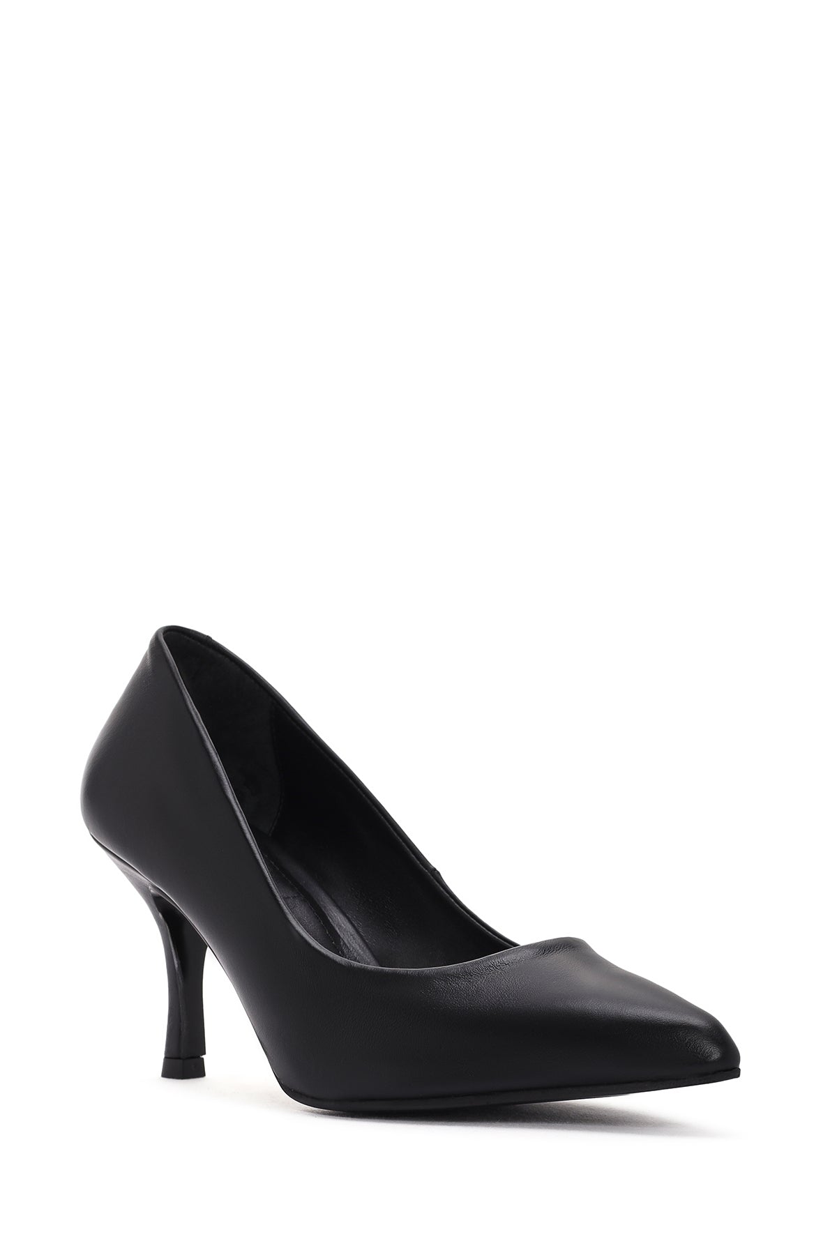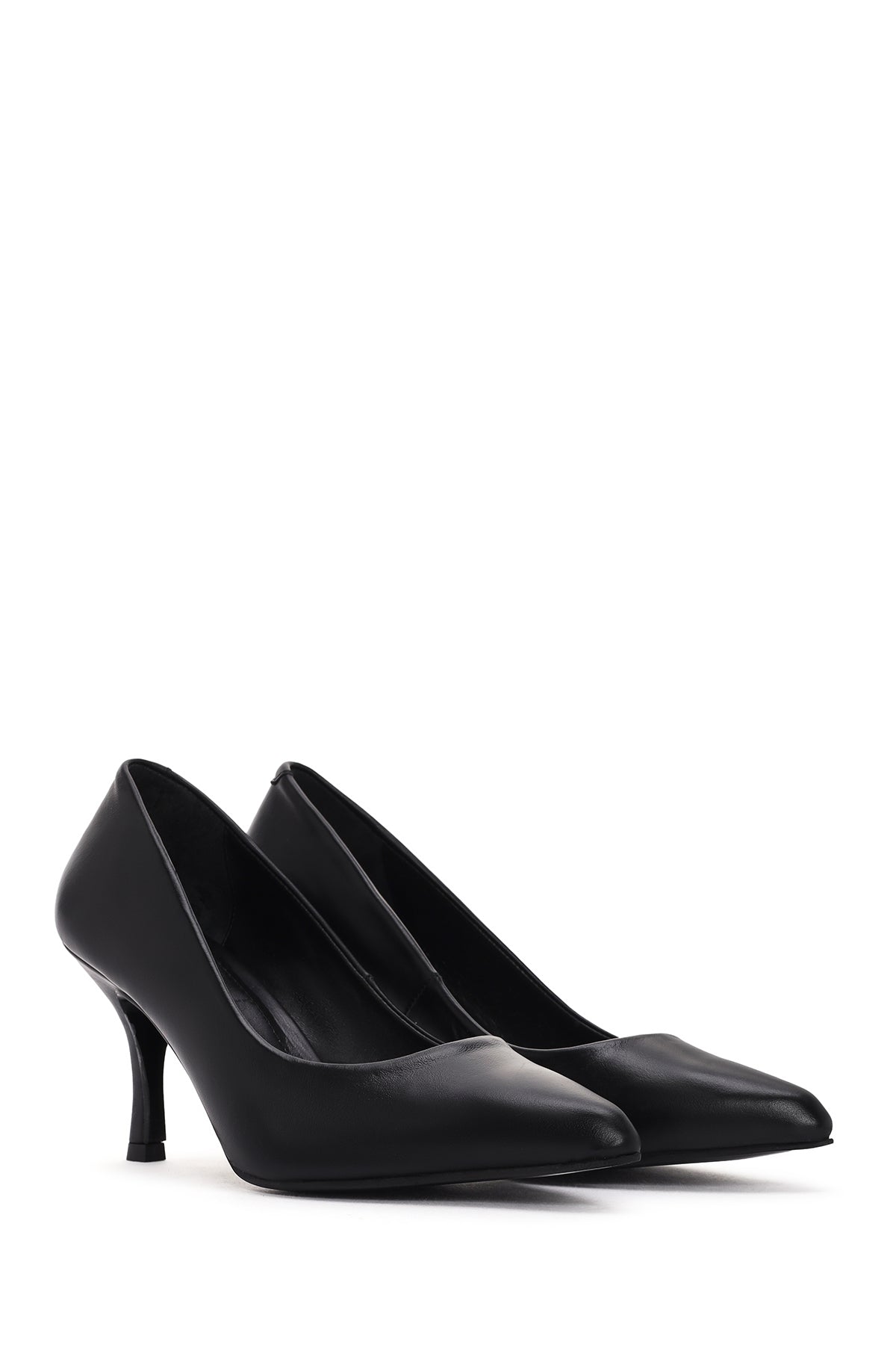 Kadın Siyah İnce Topuklu Deri Stiletto