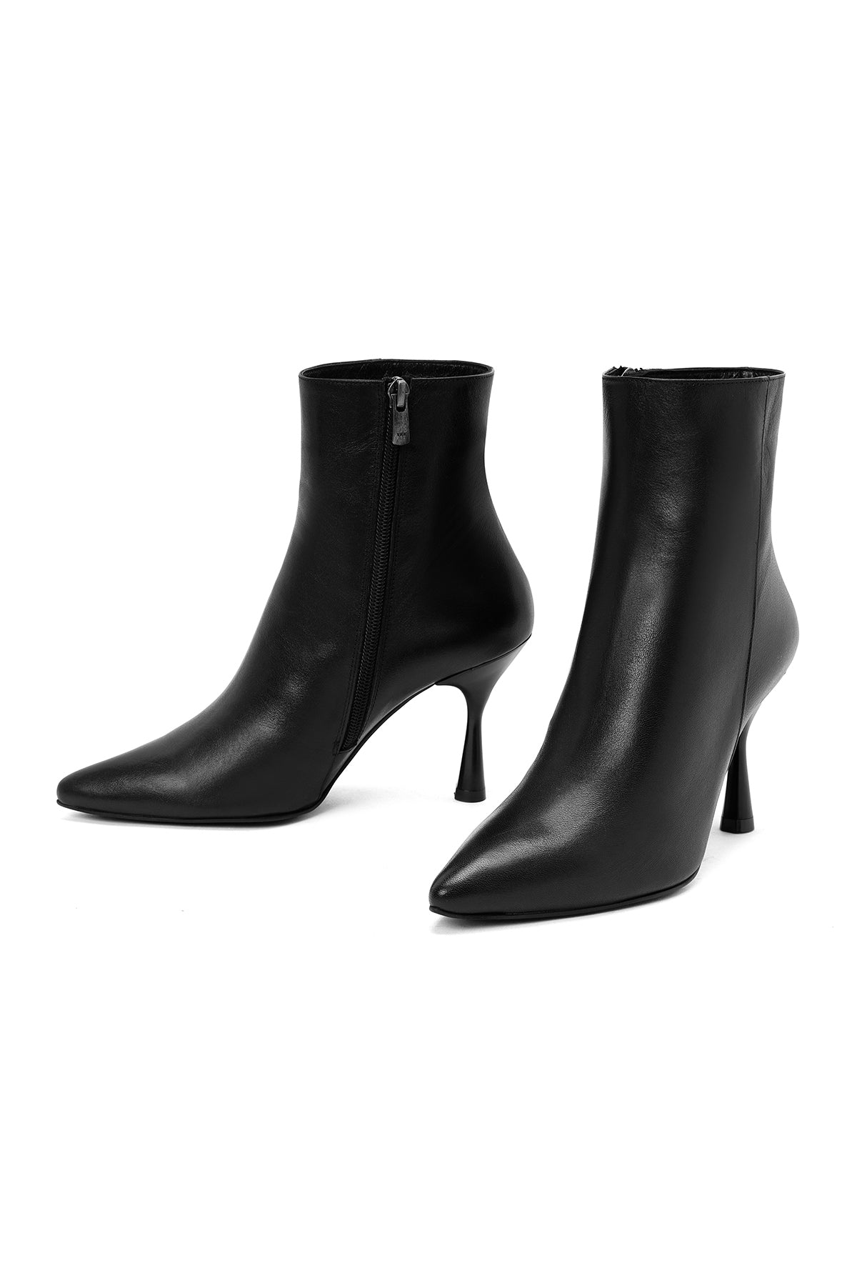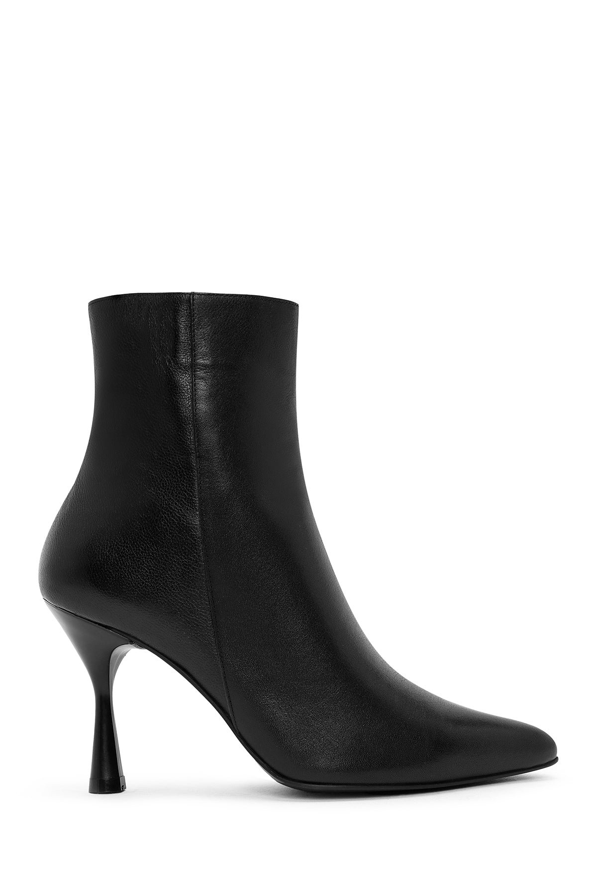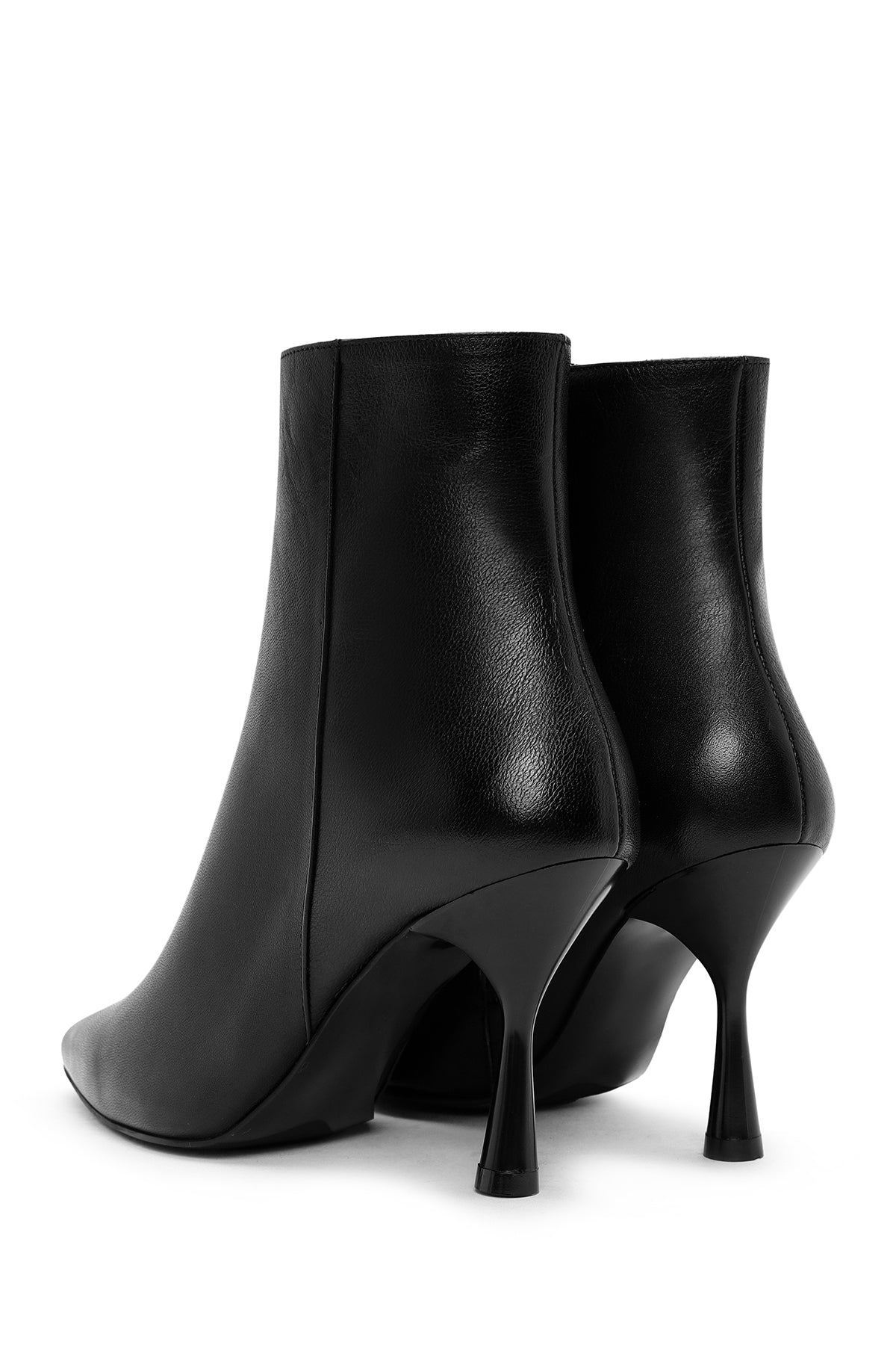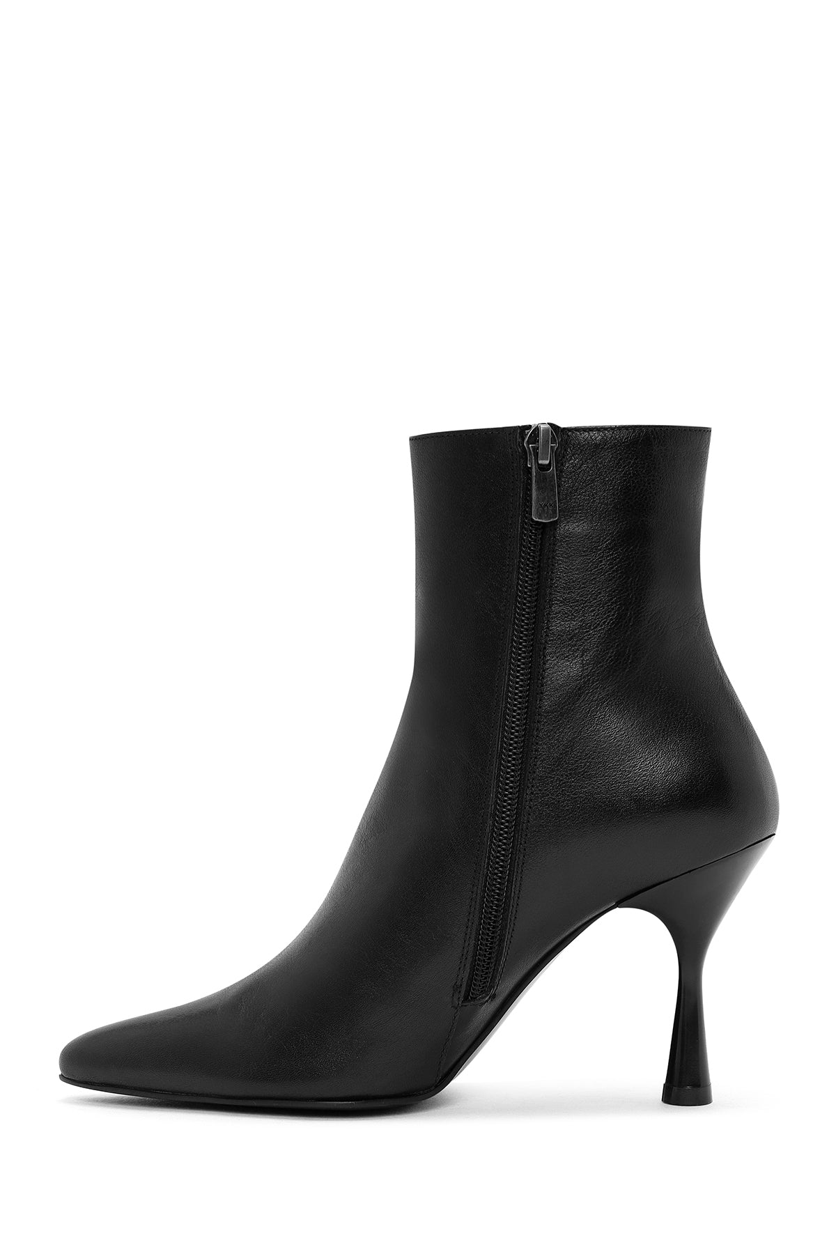 Kadın Siyah Fermuarlı İnce Topuklu Deri Bot