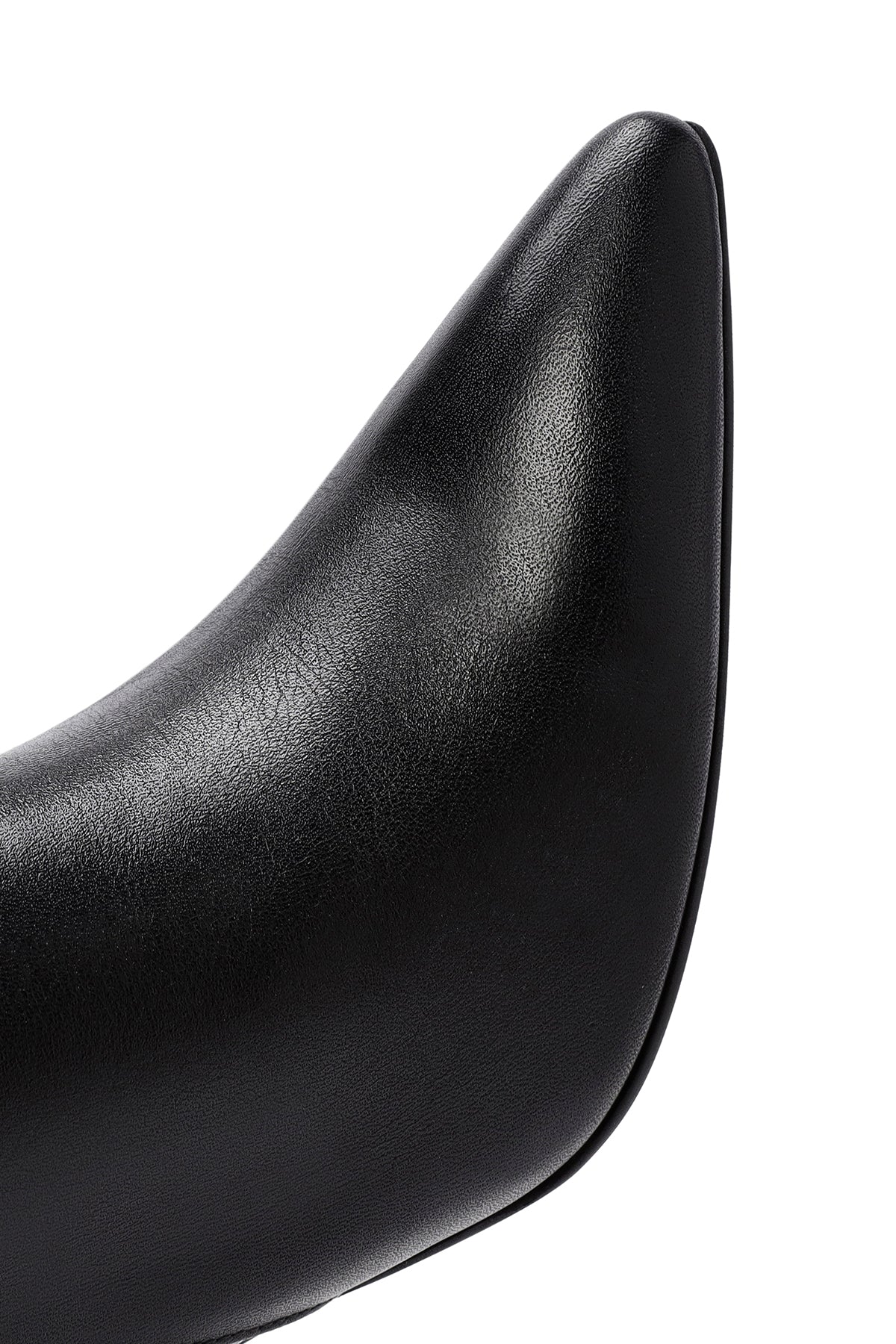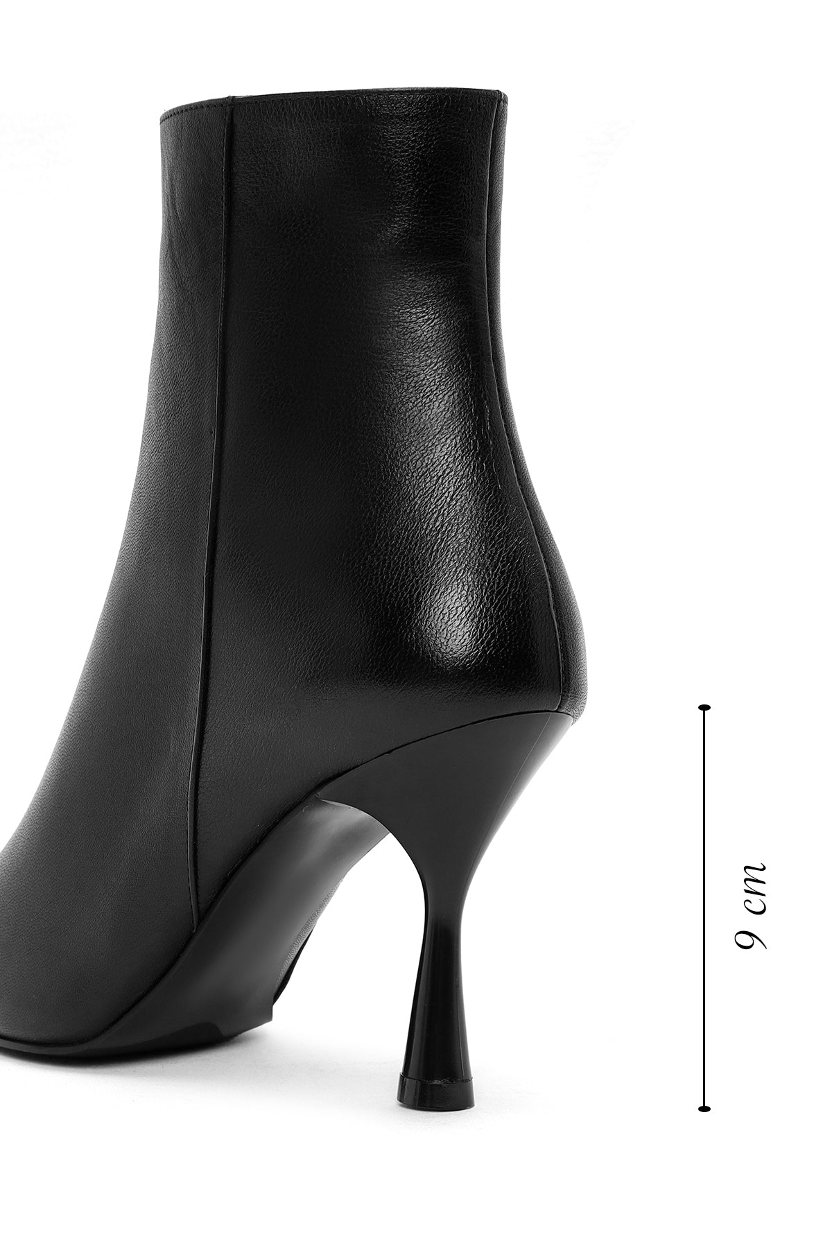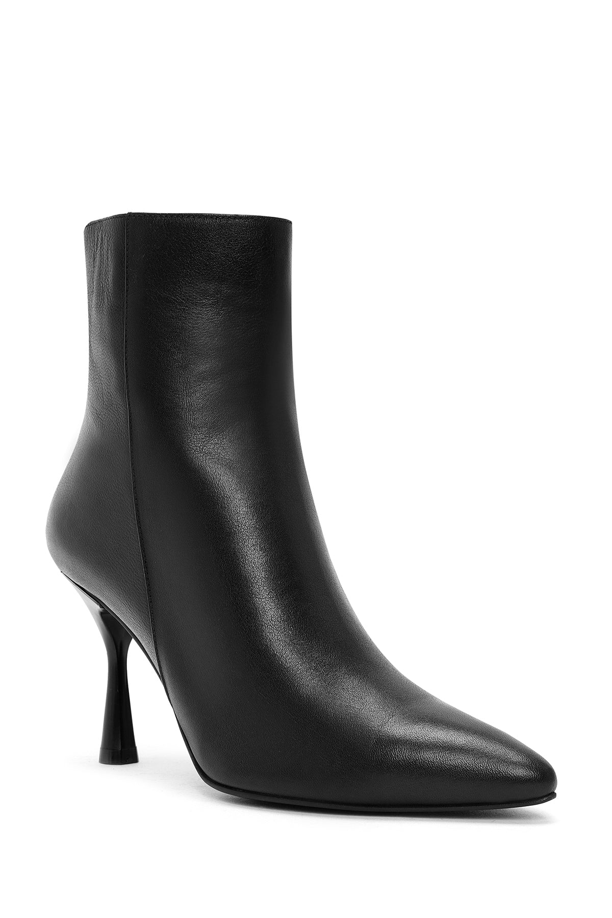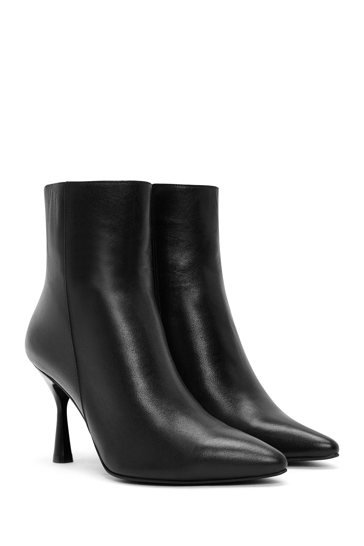 Kadın Siyah Fermuarlı İnce Topuklu Deri Bot