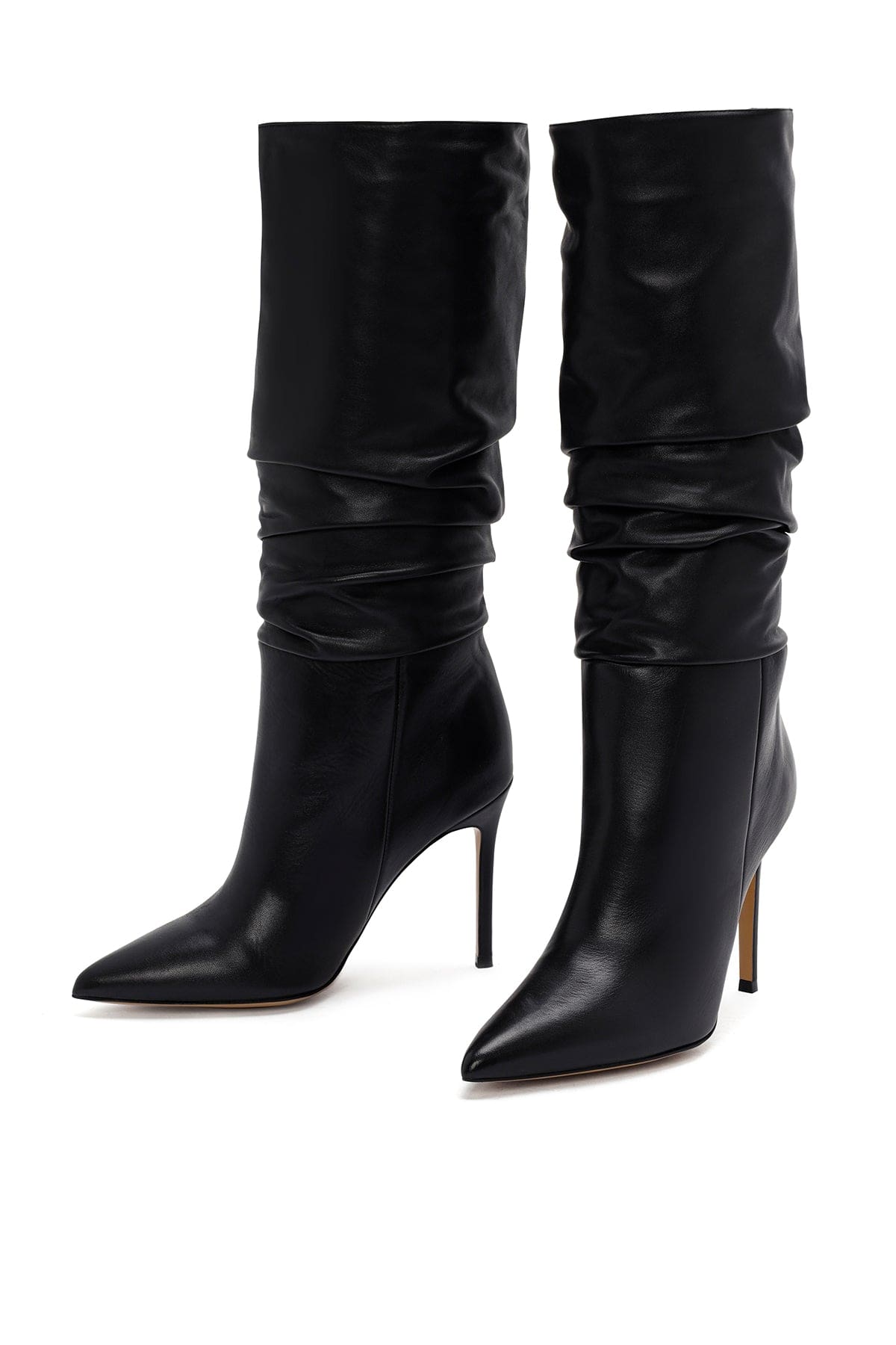 چکمه زنانه مشکی چرمی پاشنه باریک بلند دری مد