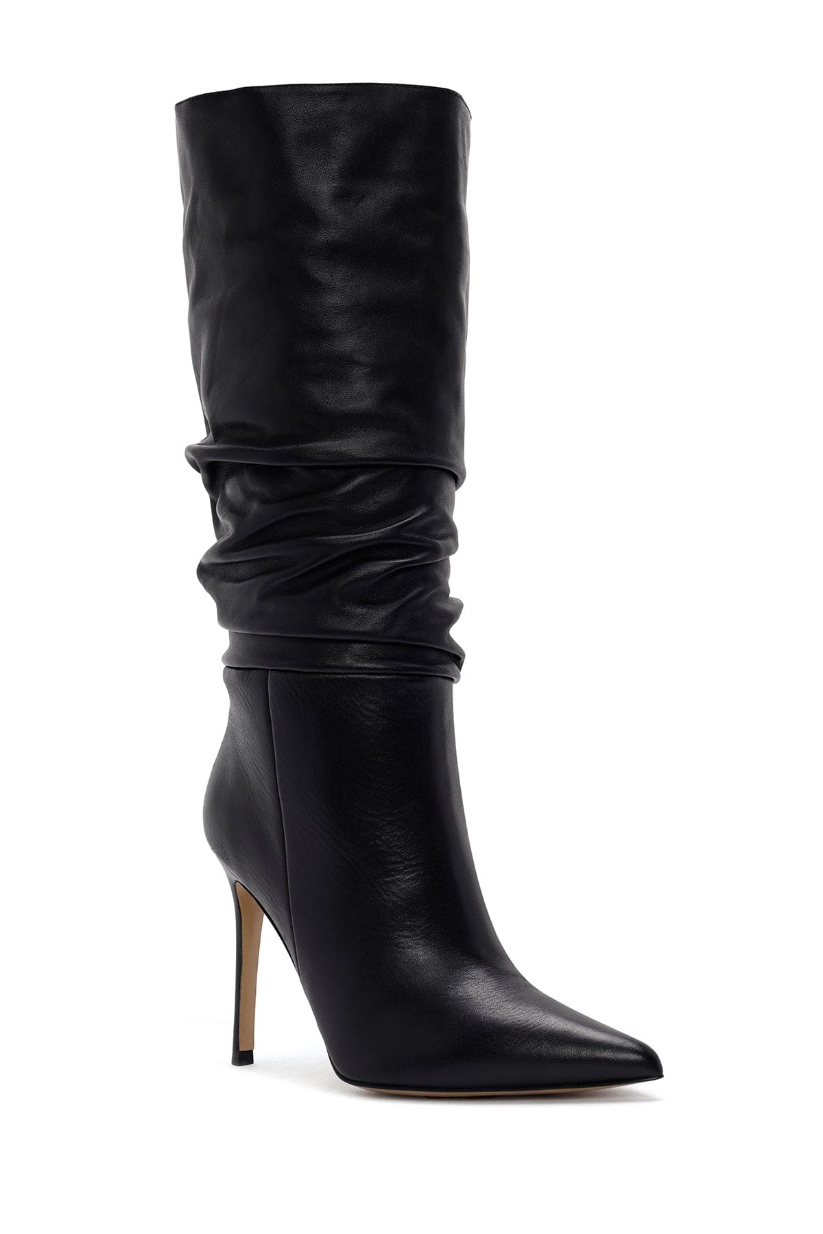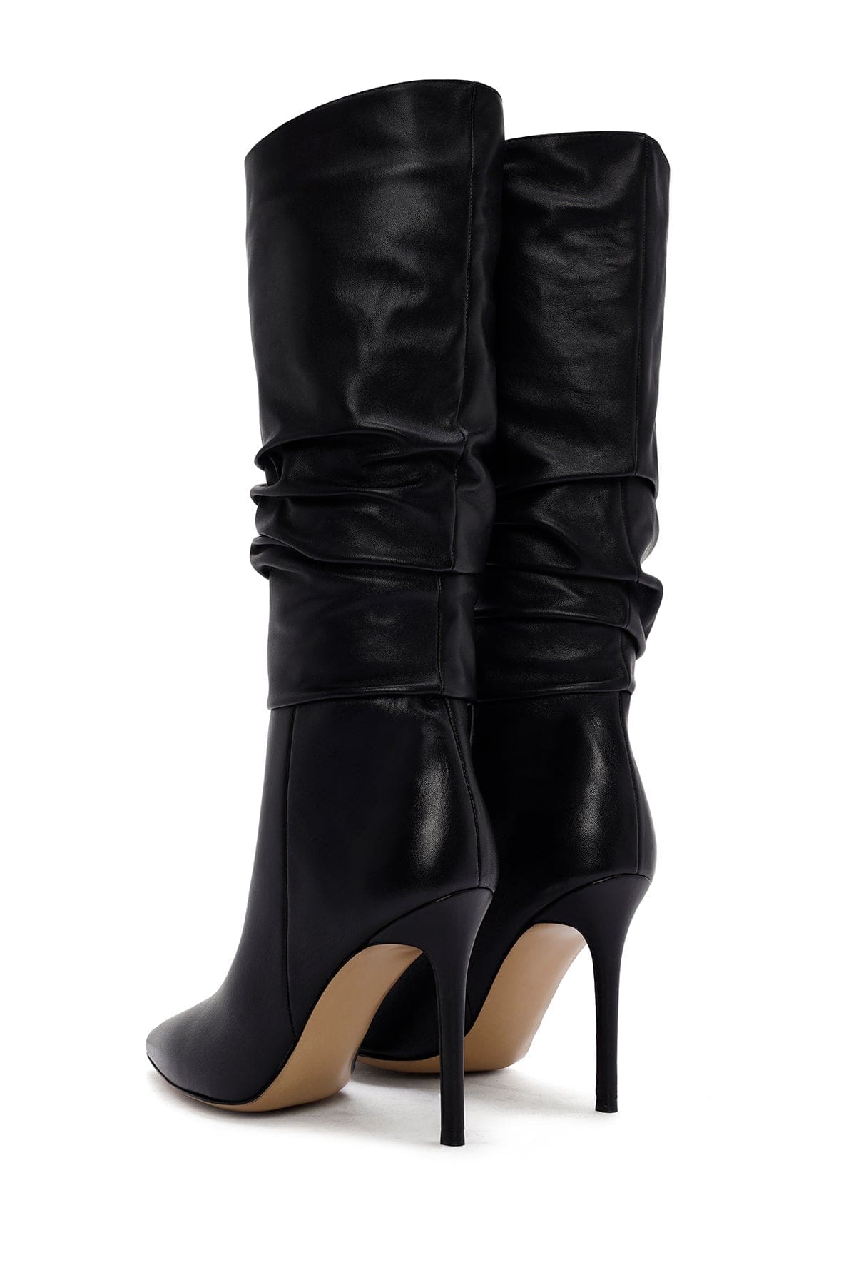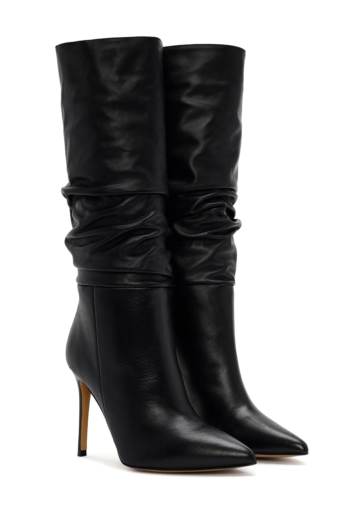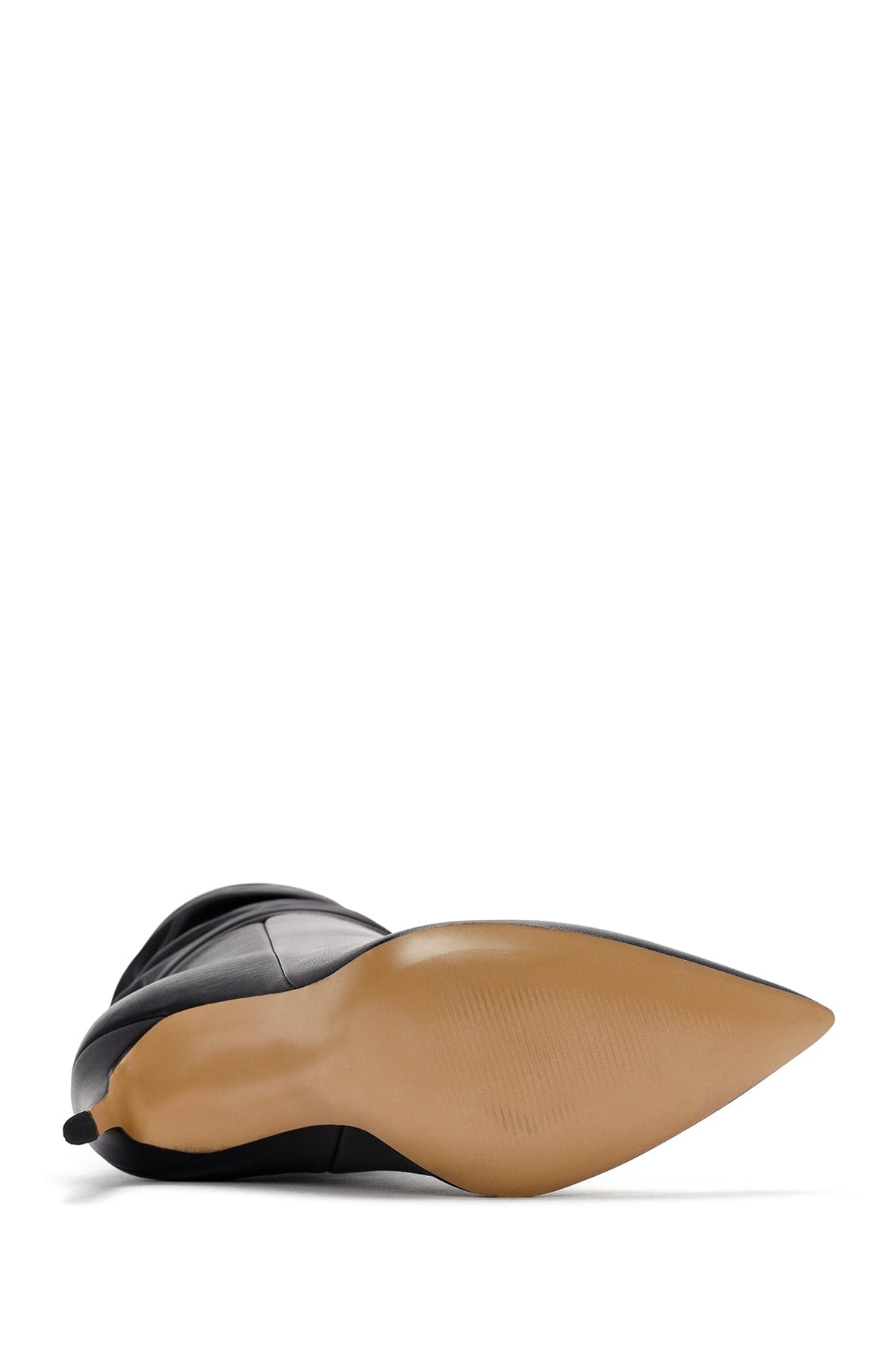Kadın Siyah Yüksek İnce Topuklu Deri Çizme