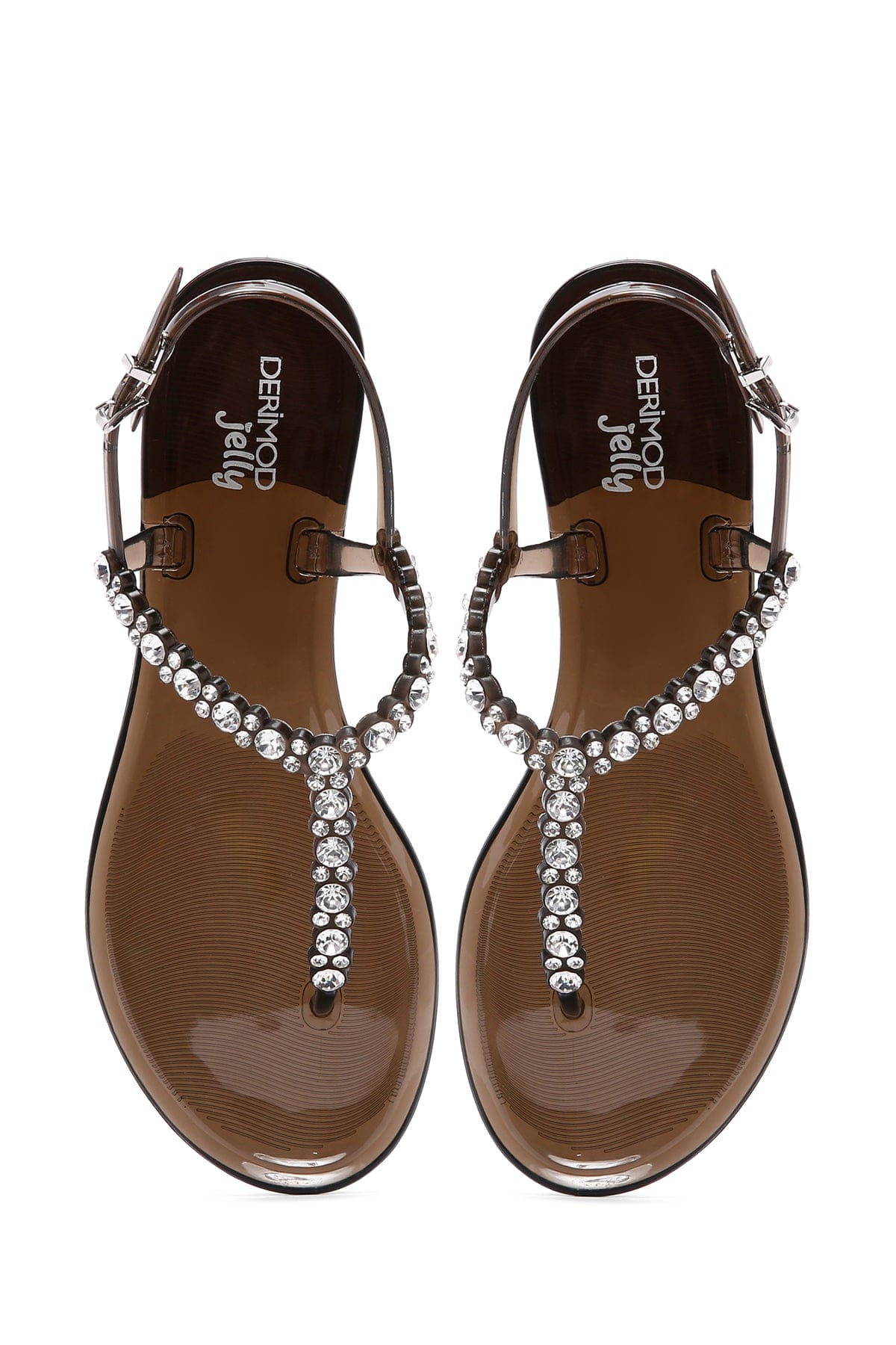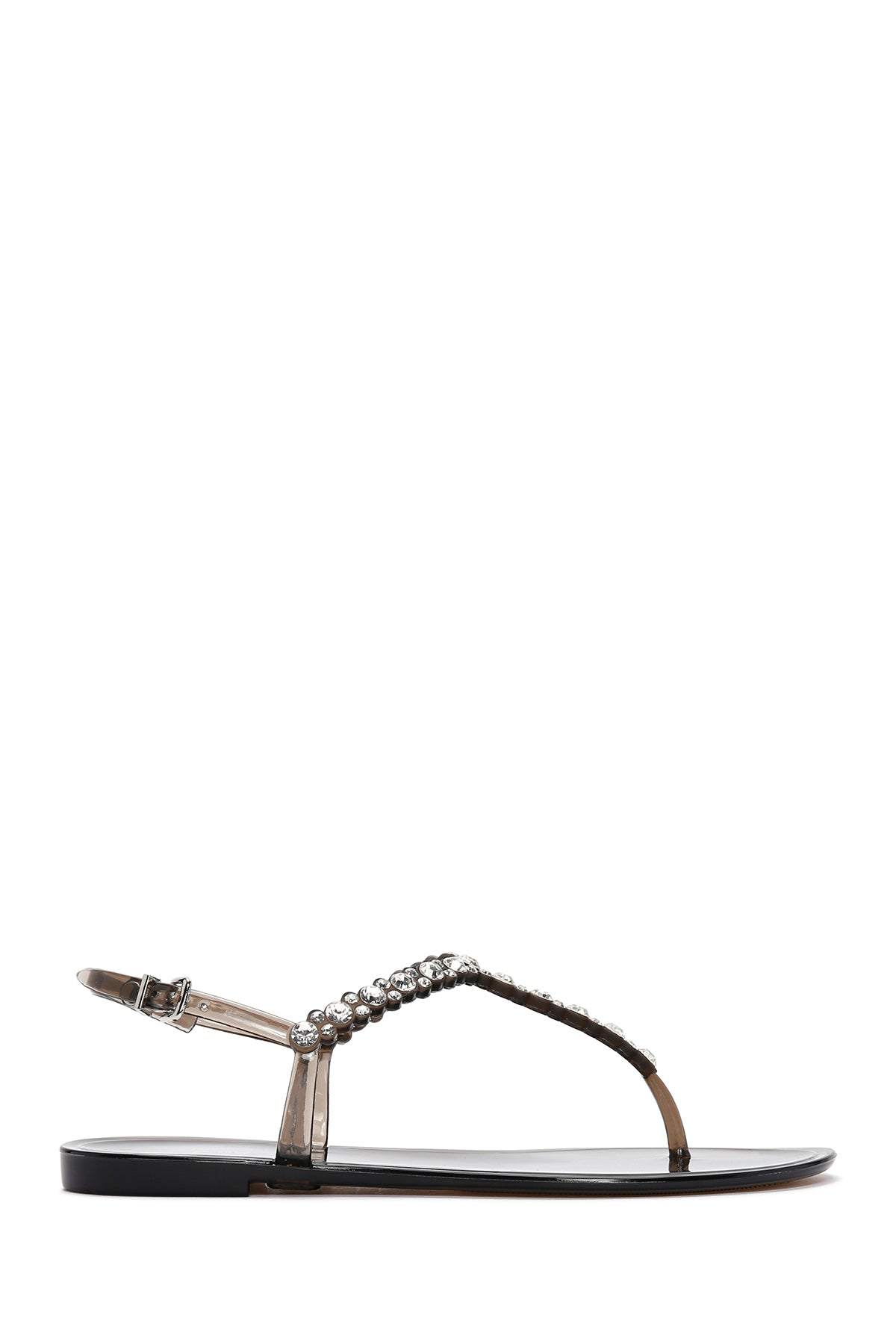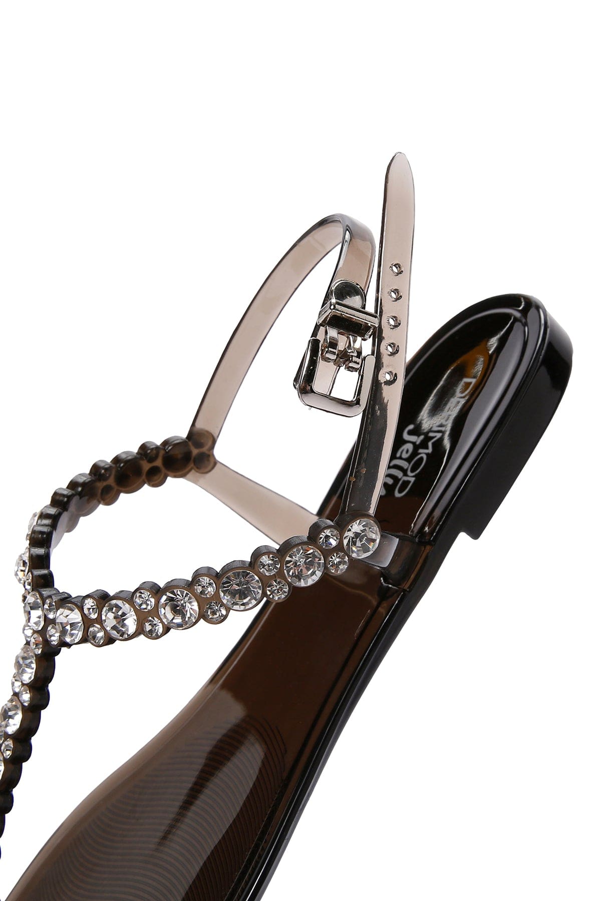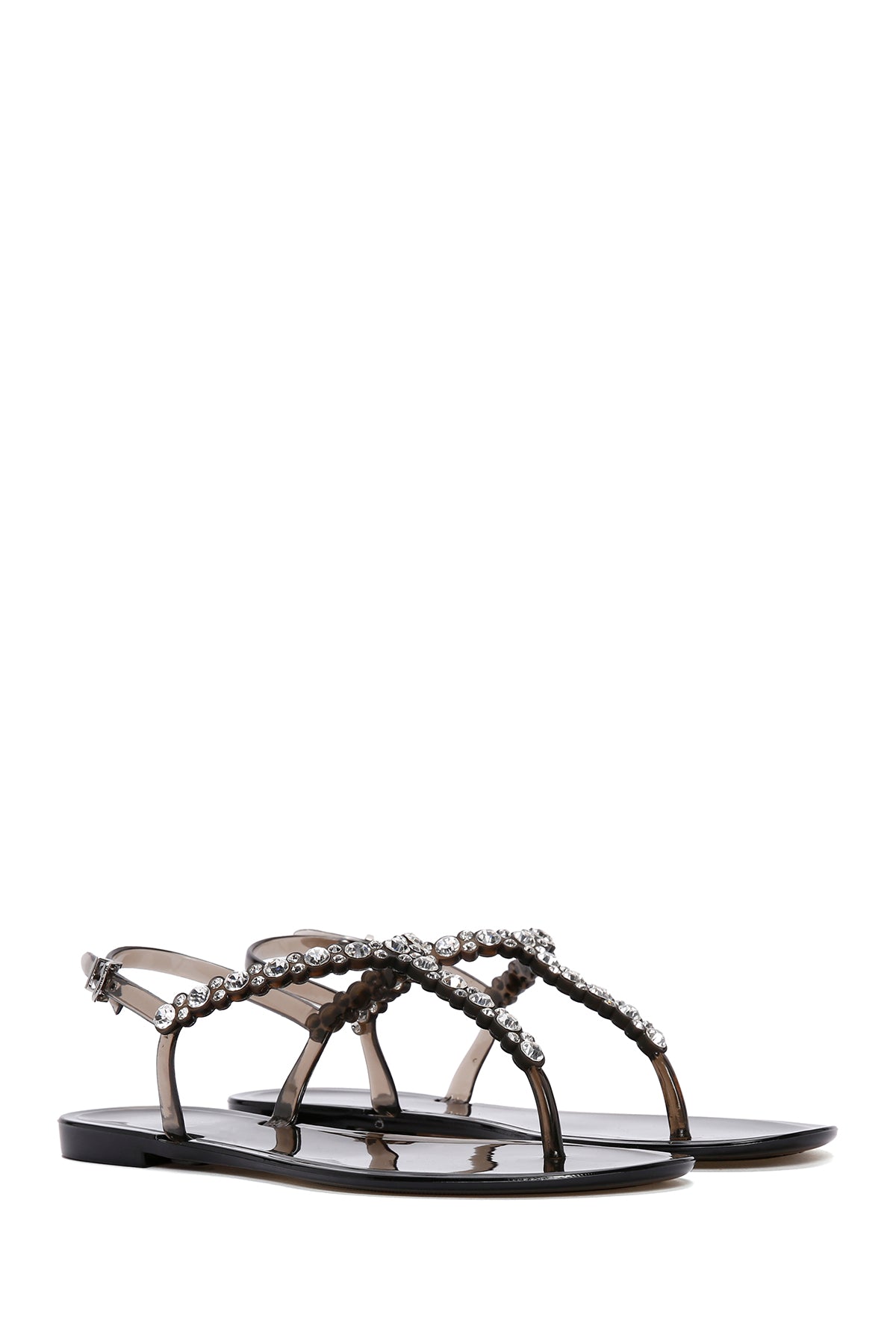 Kadın Siyah Parmak Arası Taşlı Jelly Sandalet