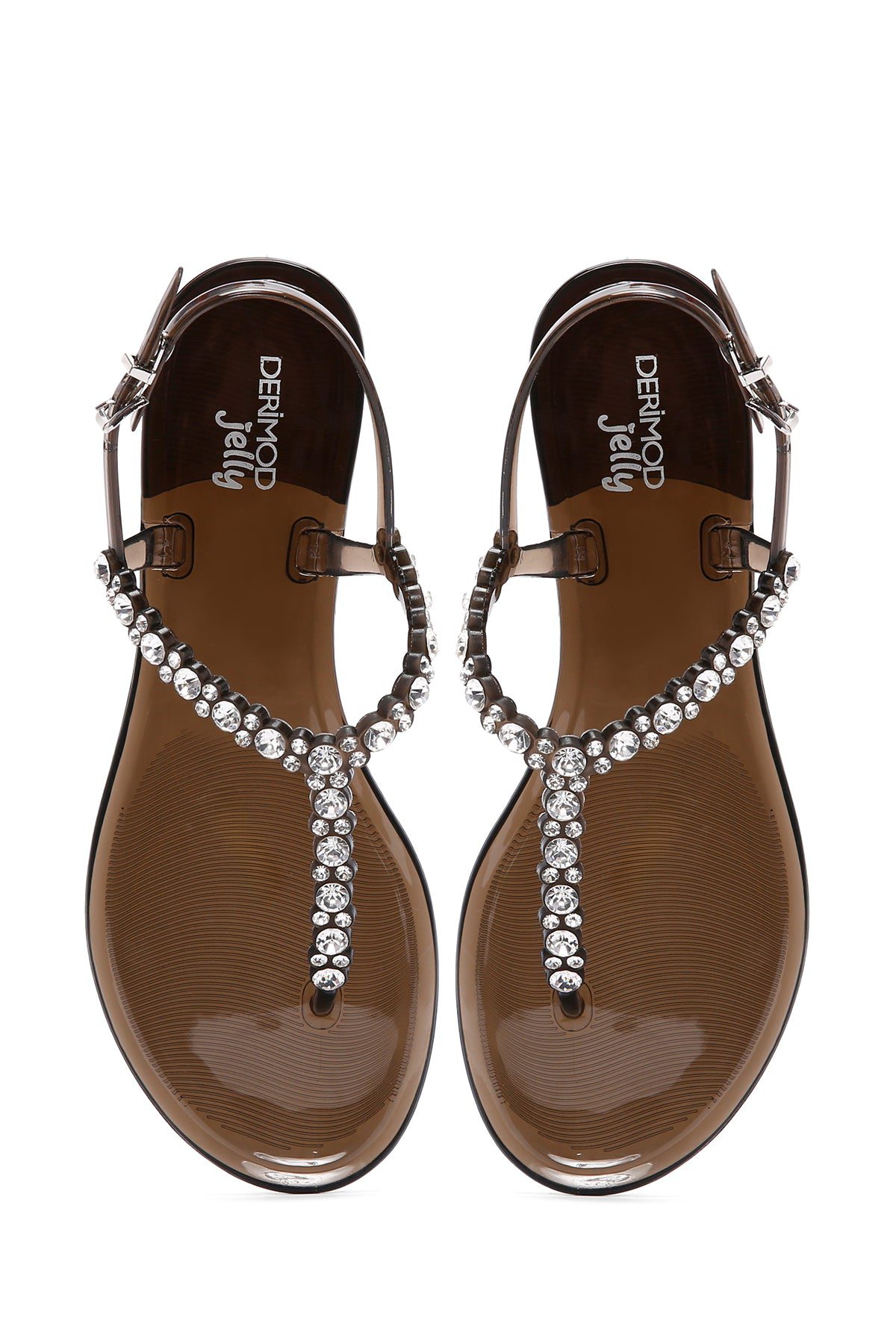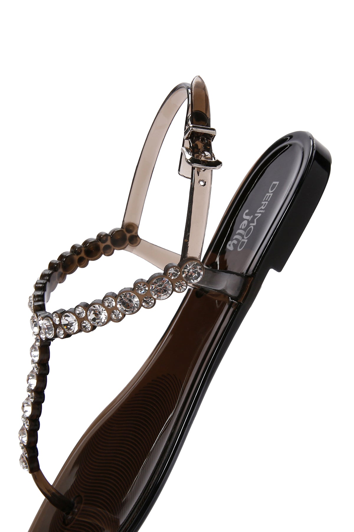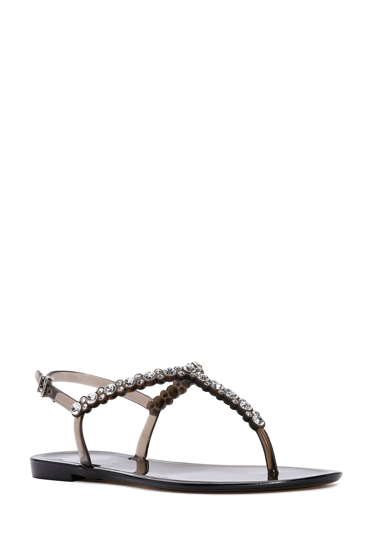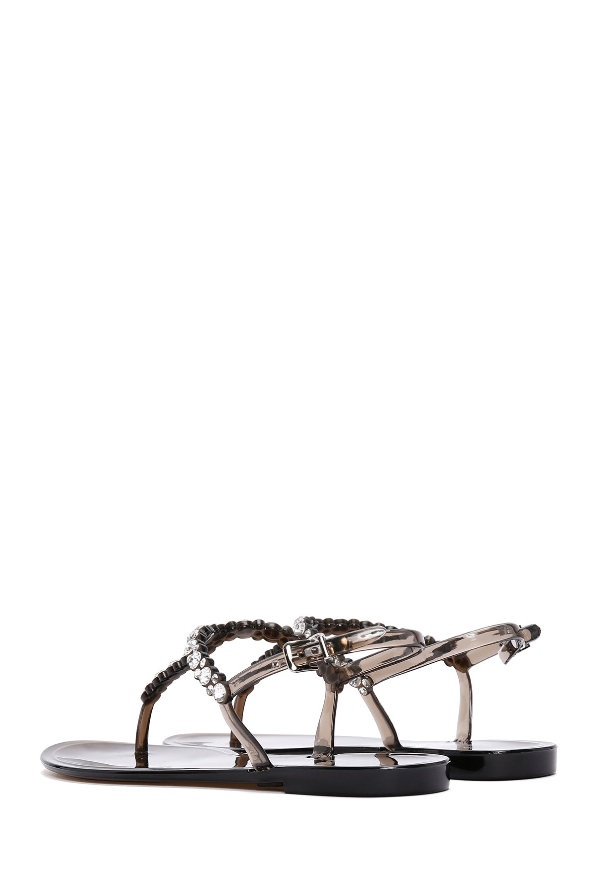Kadın Siyah Parmak Arası Taşlı Jelly Sandalet