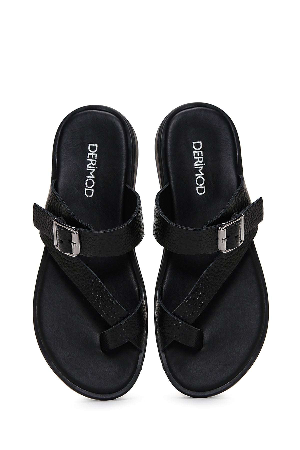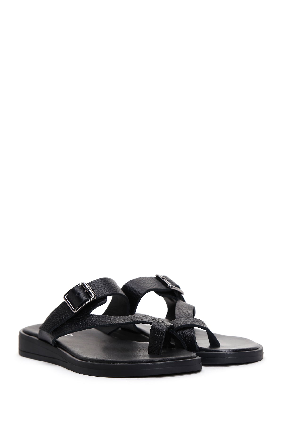 دمپایی زنانه چرمی مشکی لاانگشتی دری مد