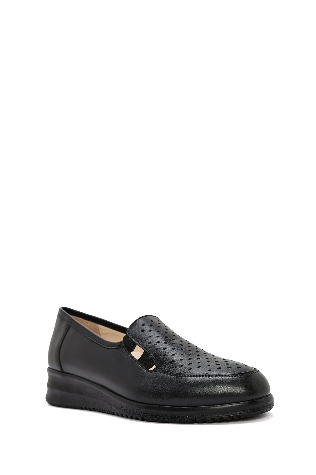 Kadın Siyah Dolgu Topuklu Deri Comfort Loafer