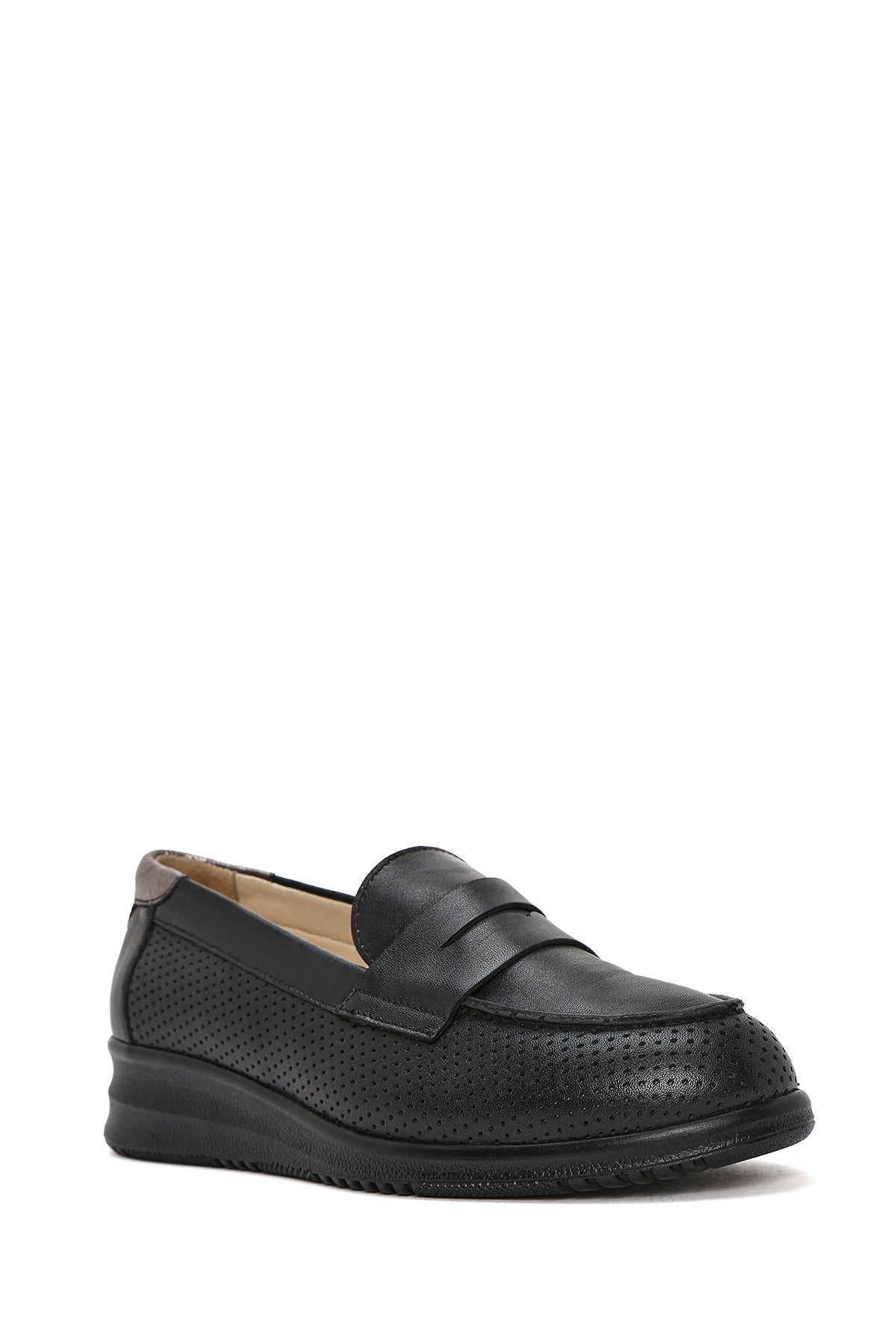 Kadın Siyah Dolgu Topuklu Deri Comfort Loafer