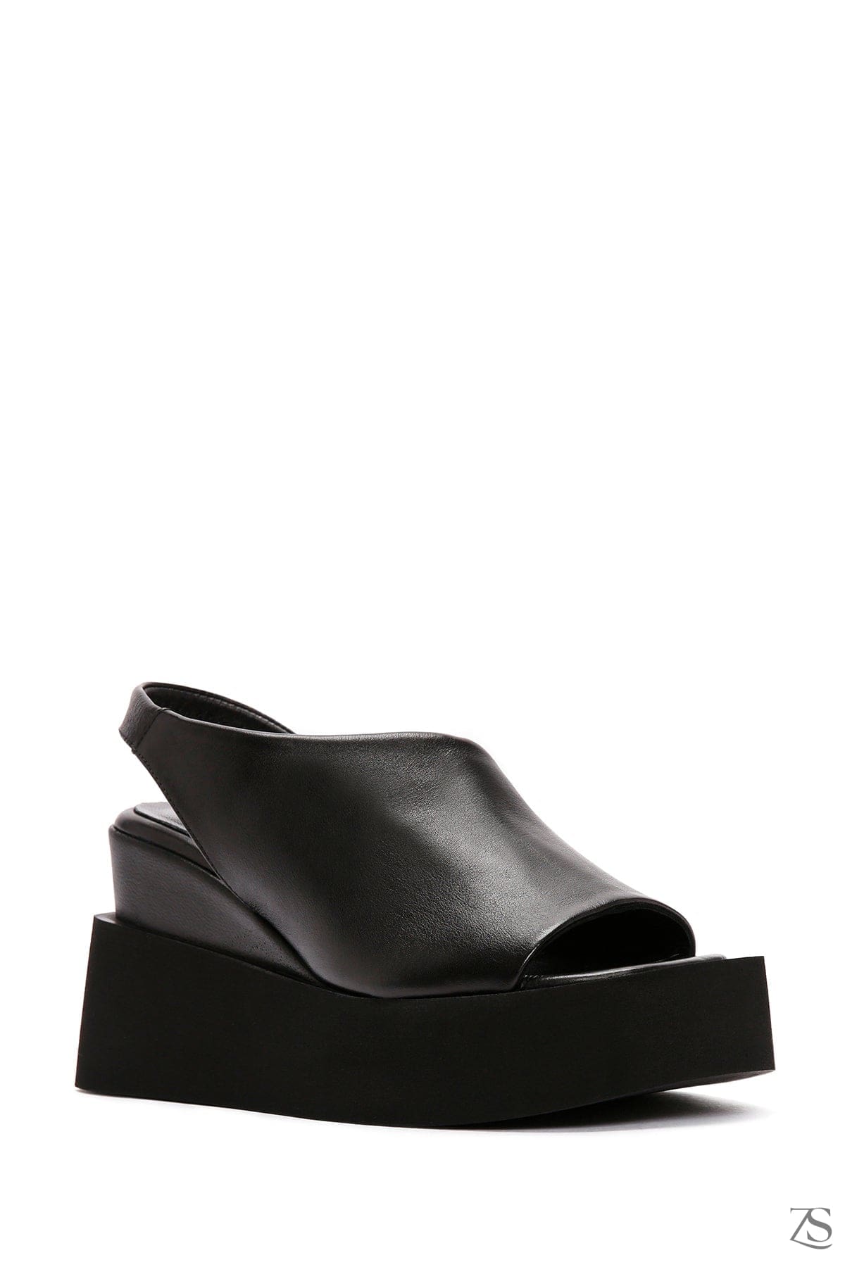 Kadın Siyah Dolgu Topuklu Deri Sandalet