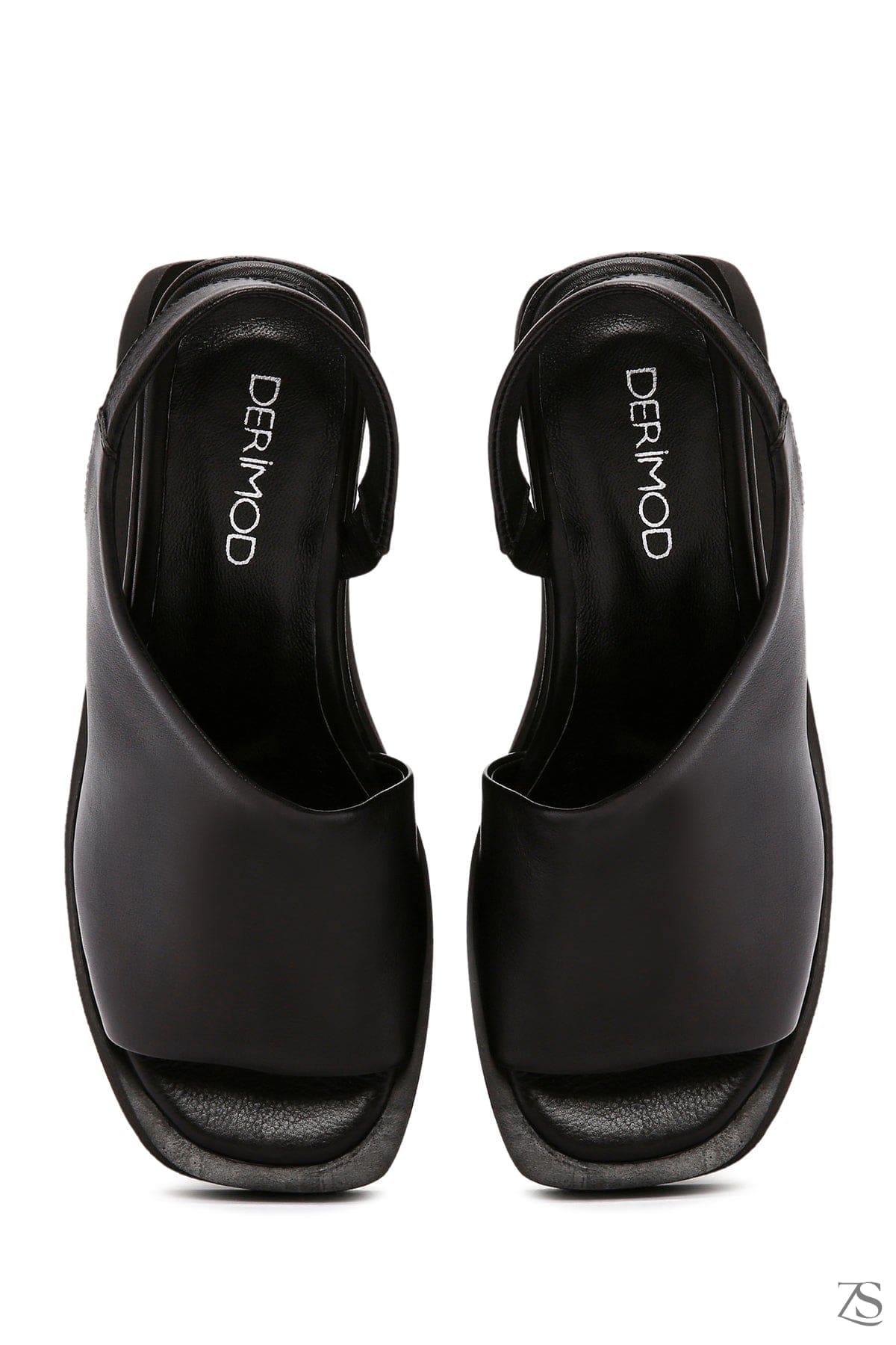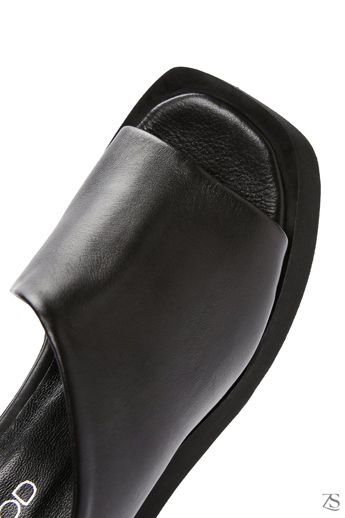 صندل زنانه مشکی پاشنه یکسره چرمی دری مد