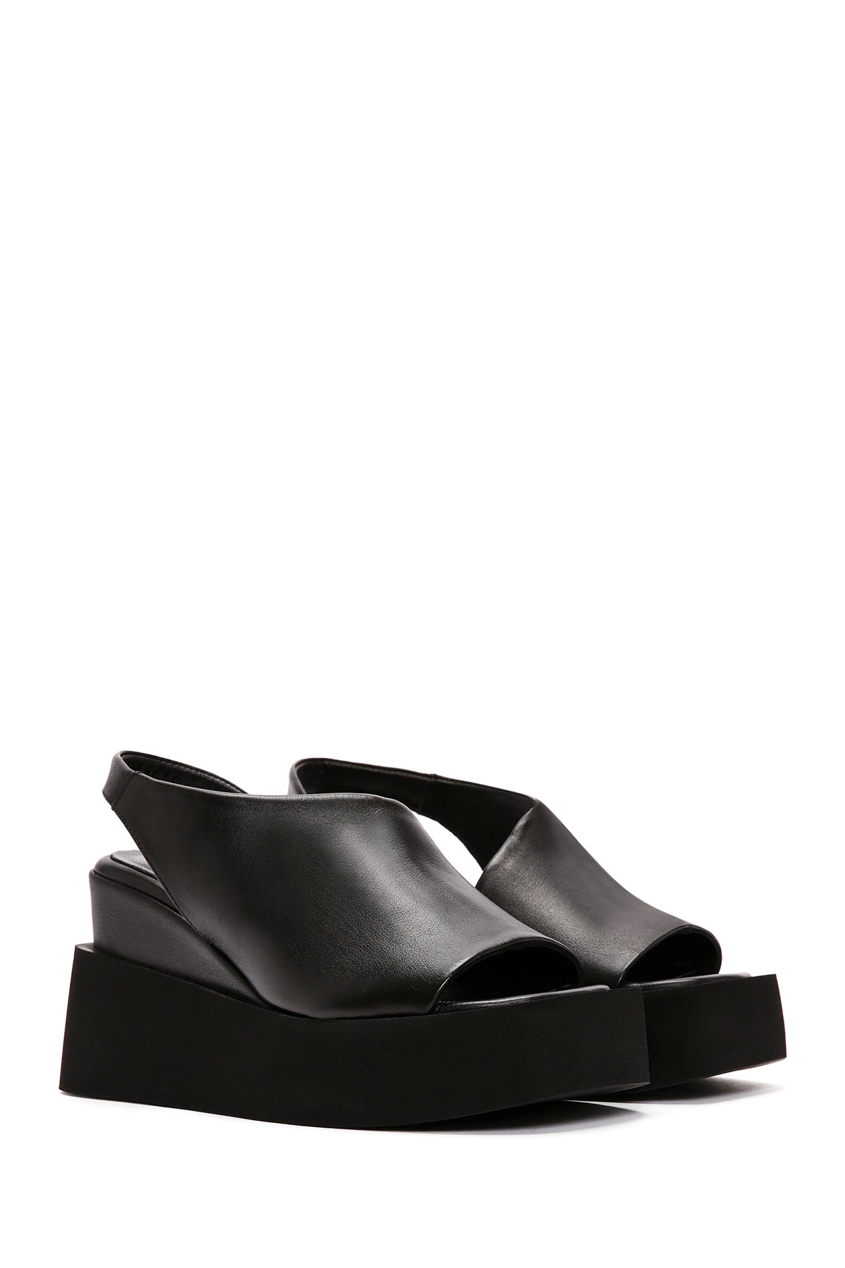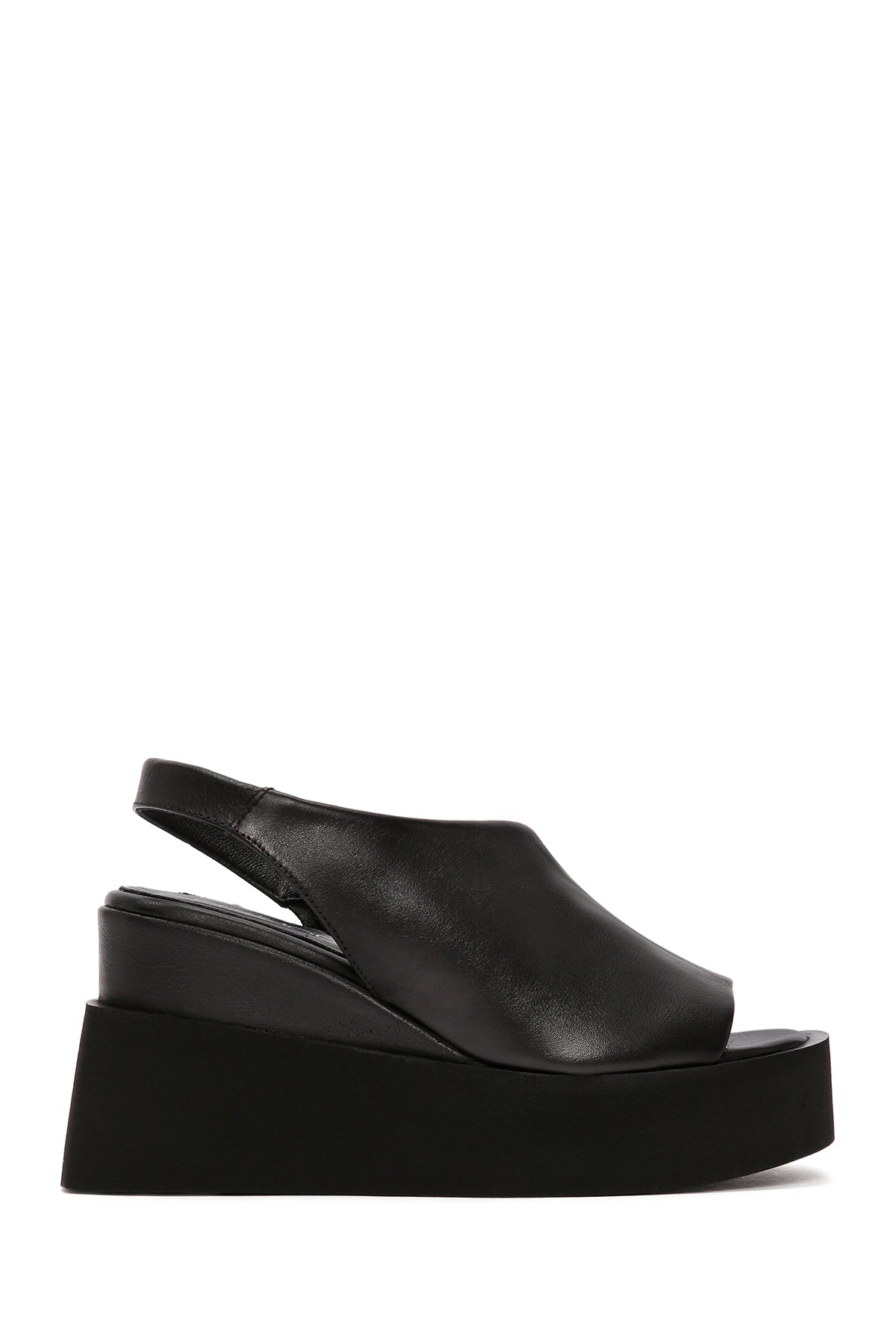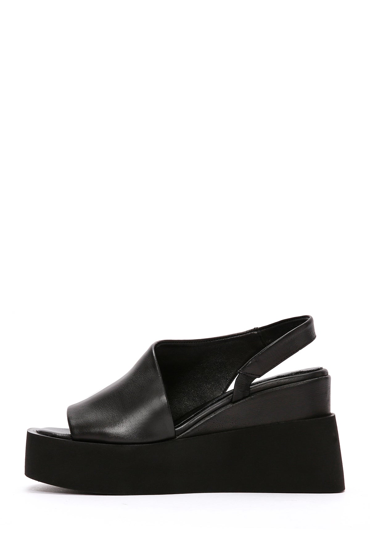 Kadın Siyah Dolgu Topuklu Deri Sandalet