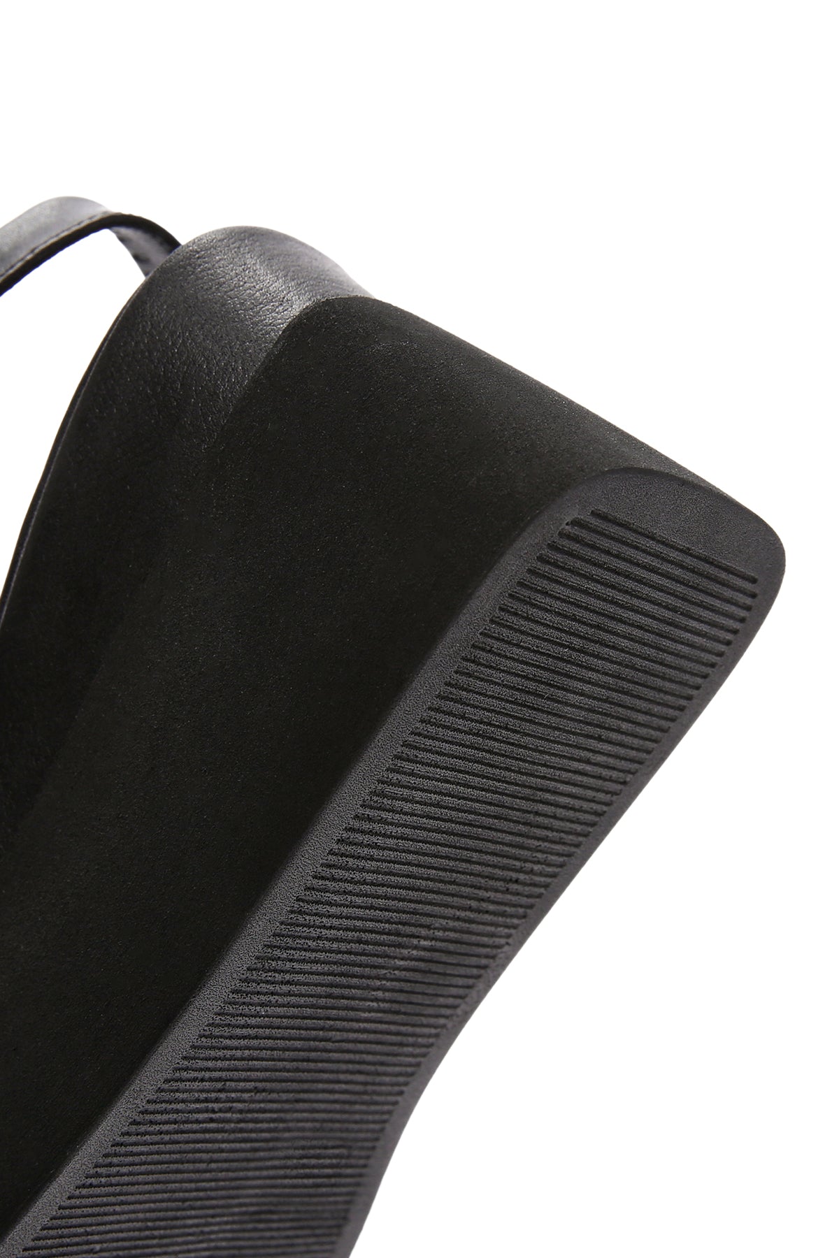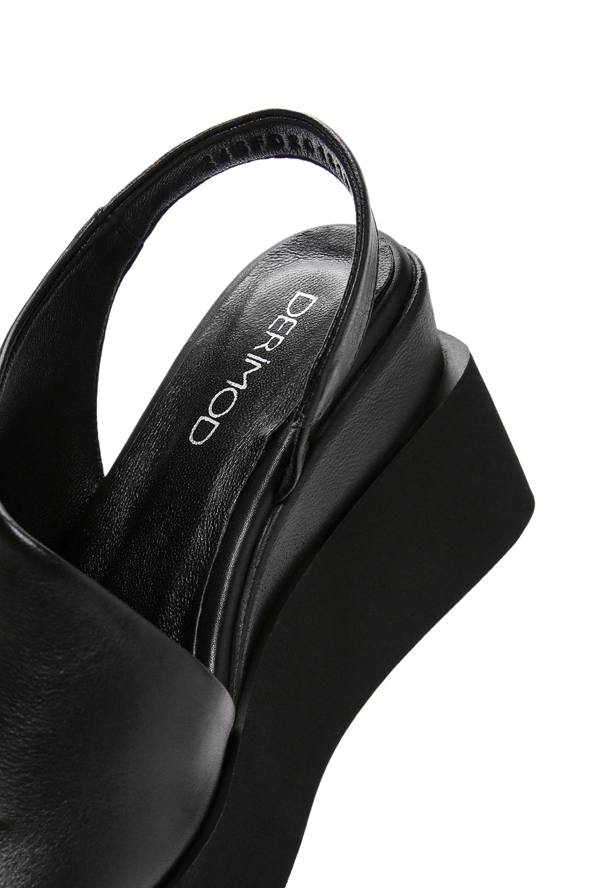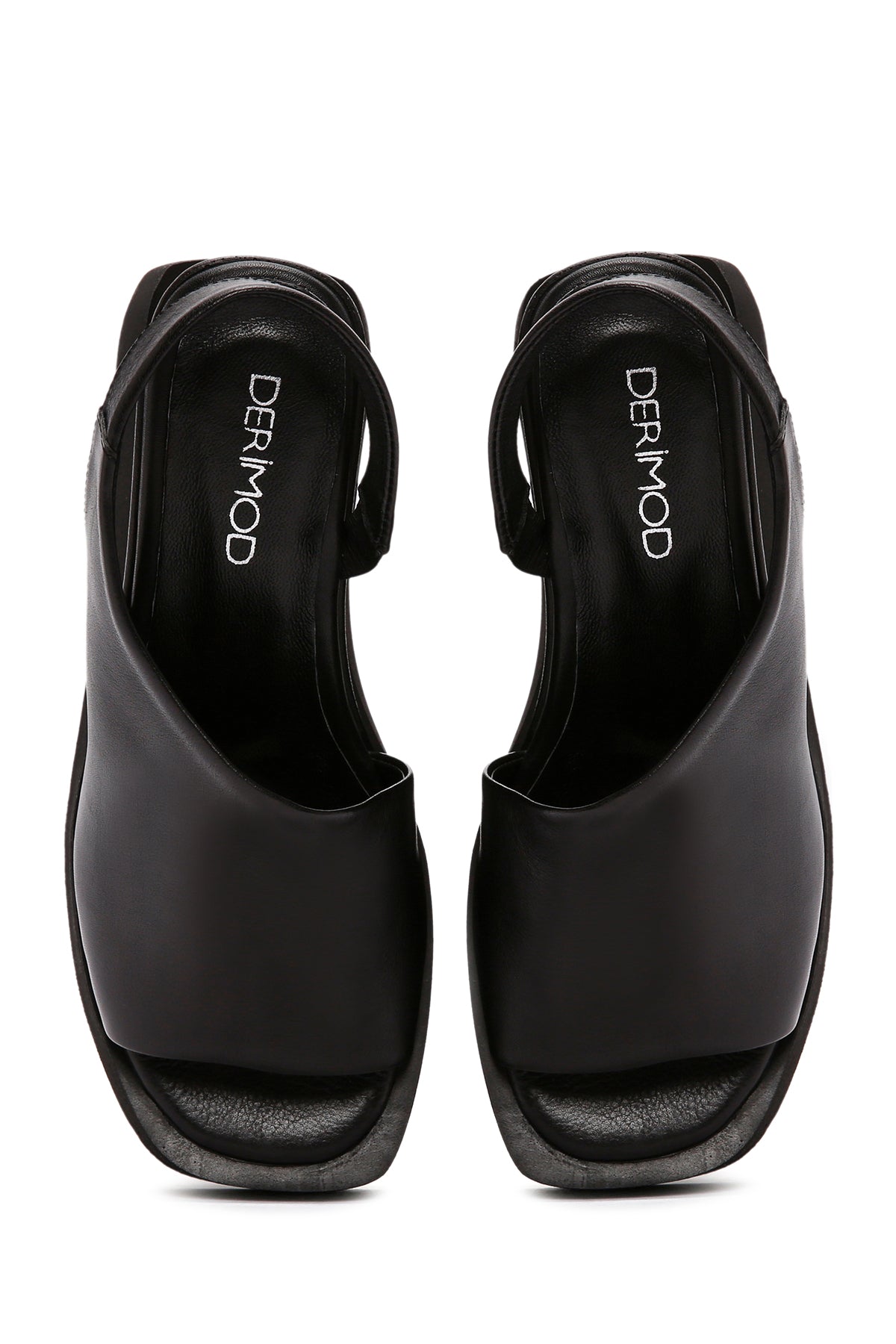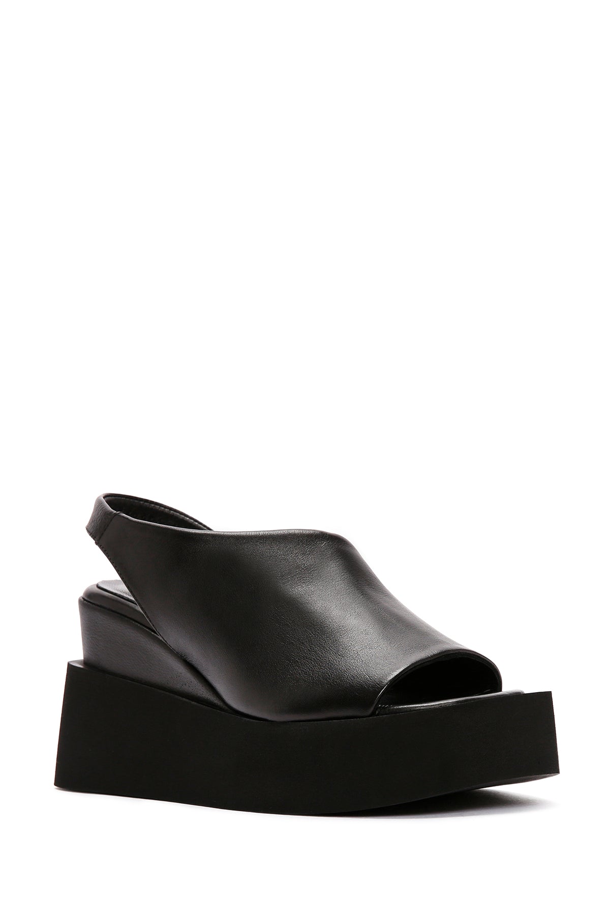 Kadın Siyah Dolgu Topuklu Deri Sandalet