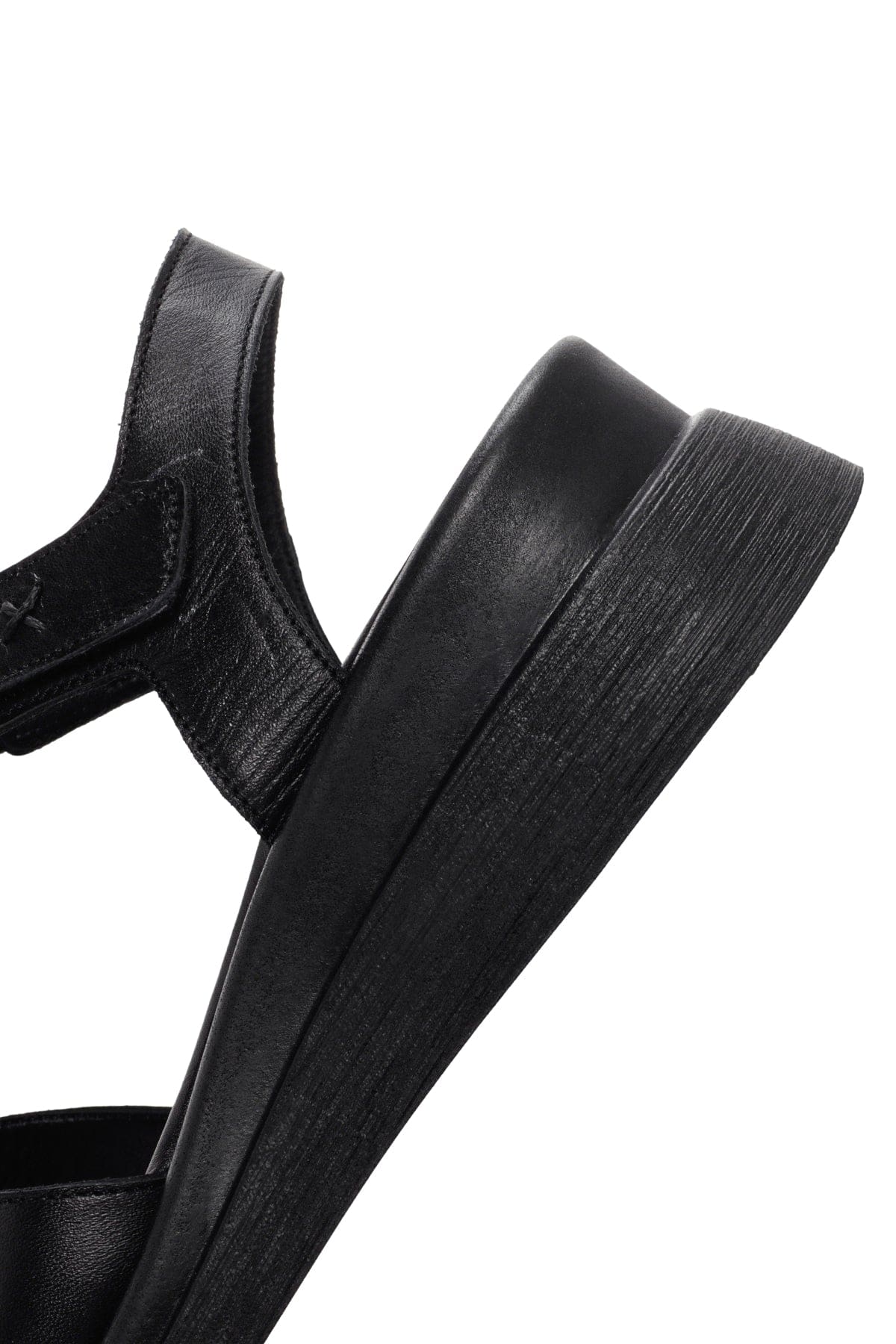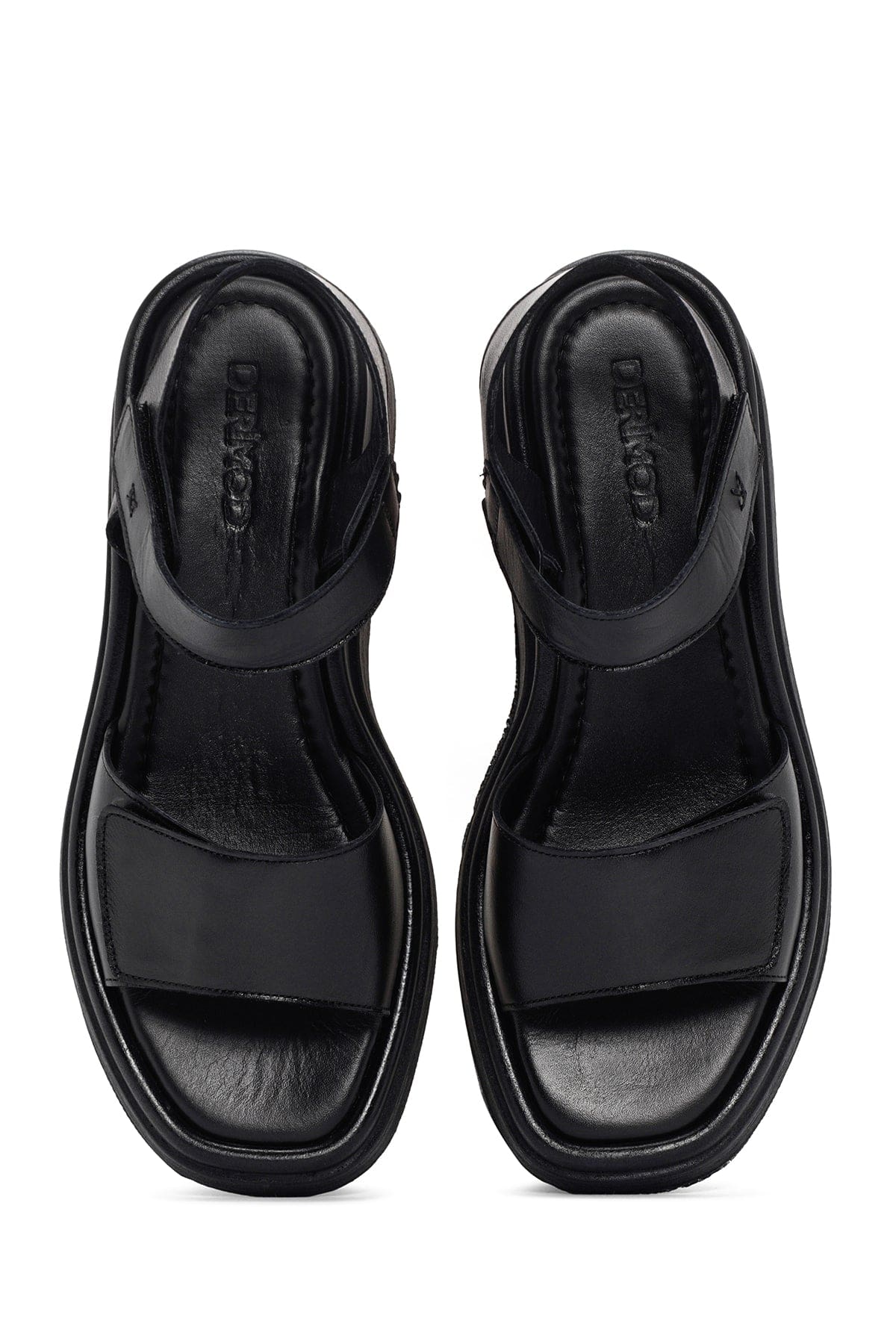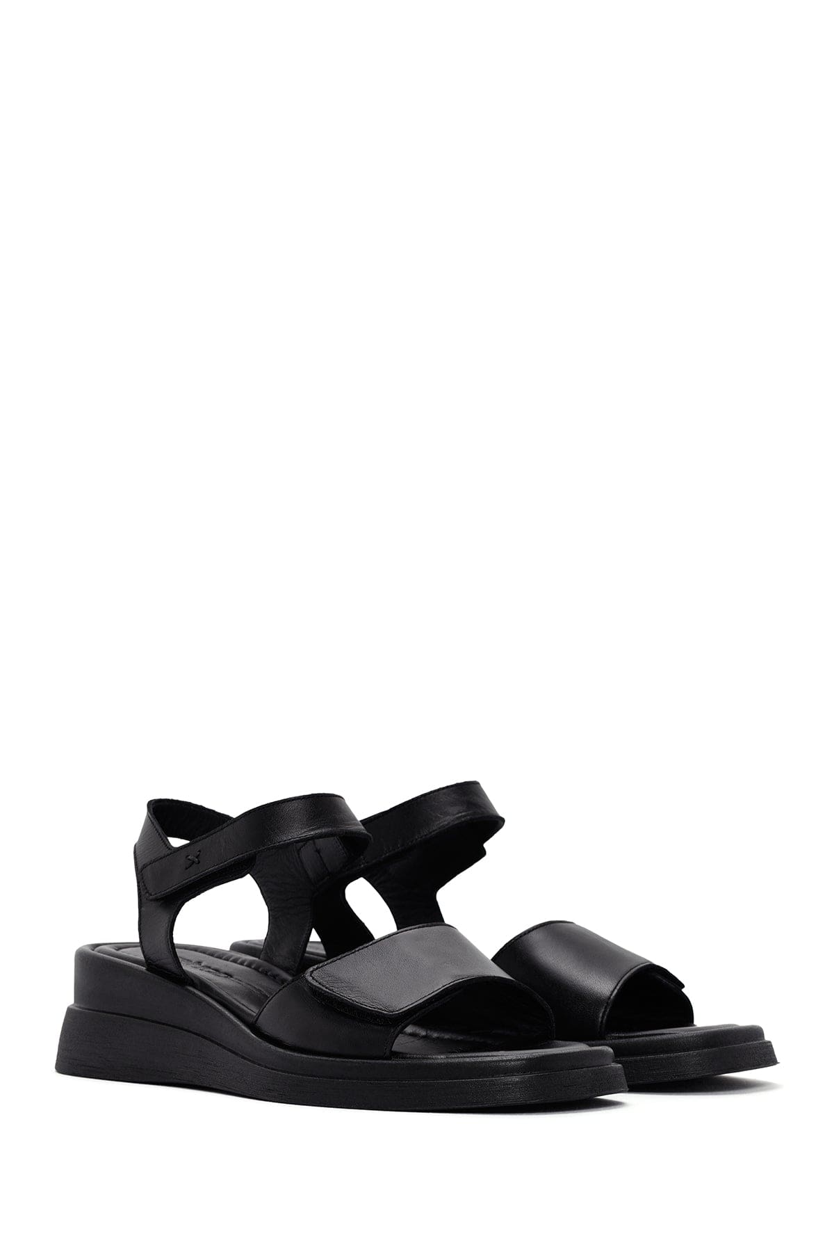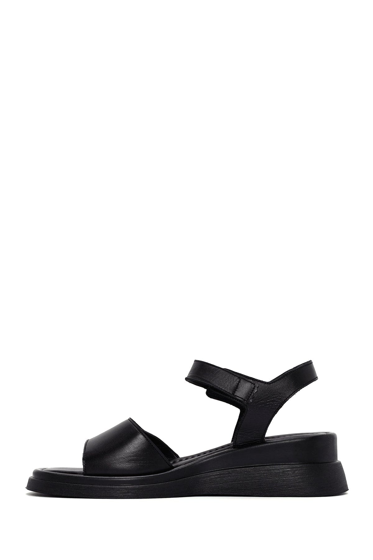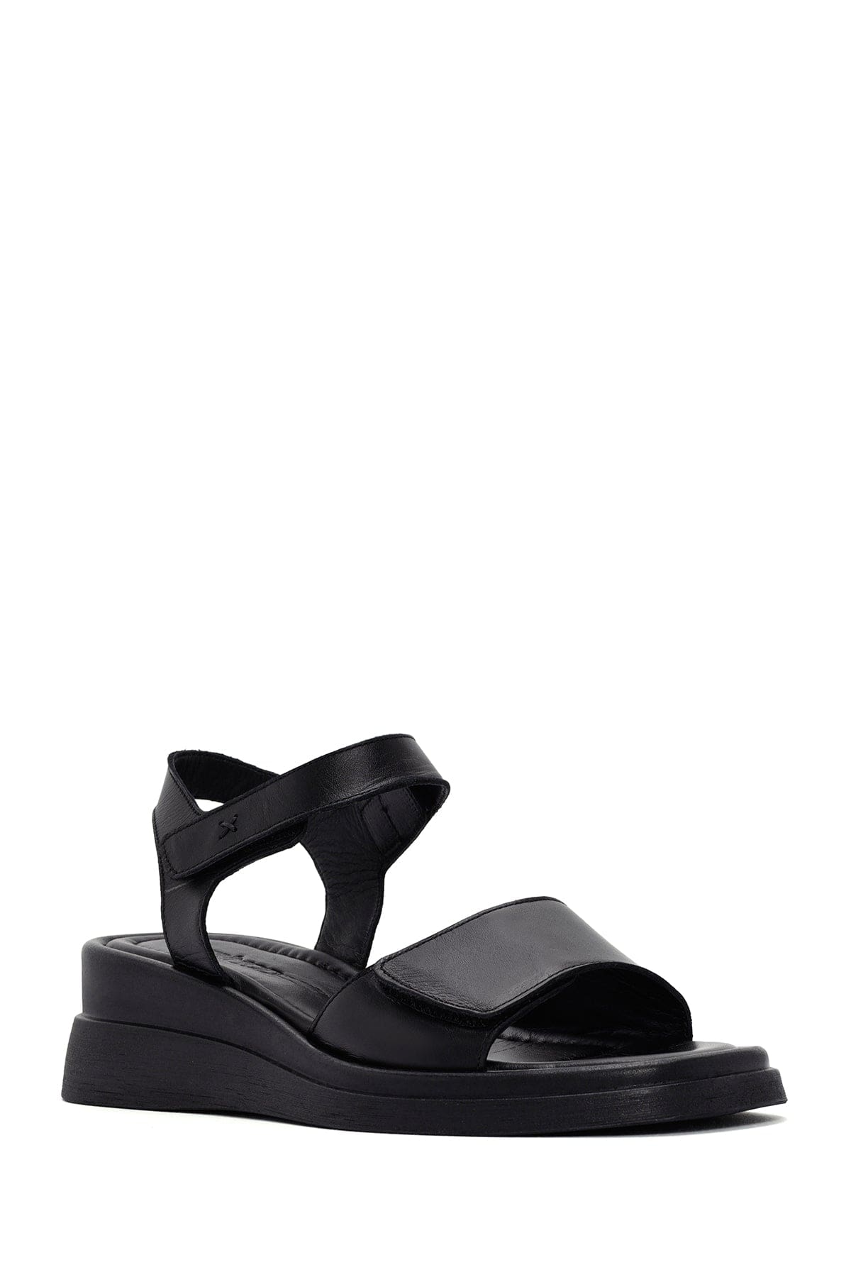 Kadın Siyah Dolgu Topuklu Deri Sandalet
