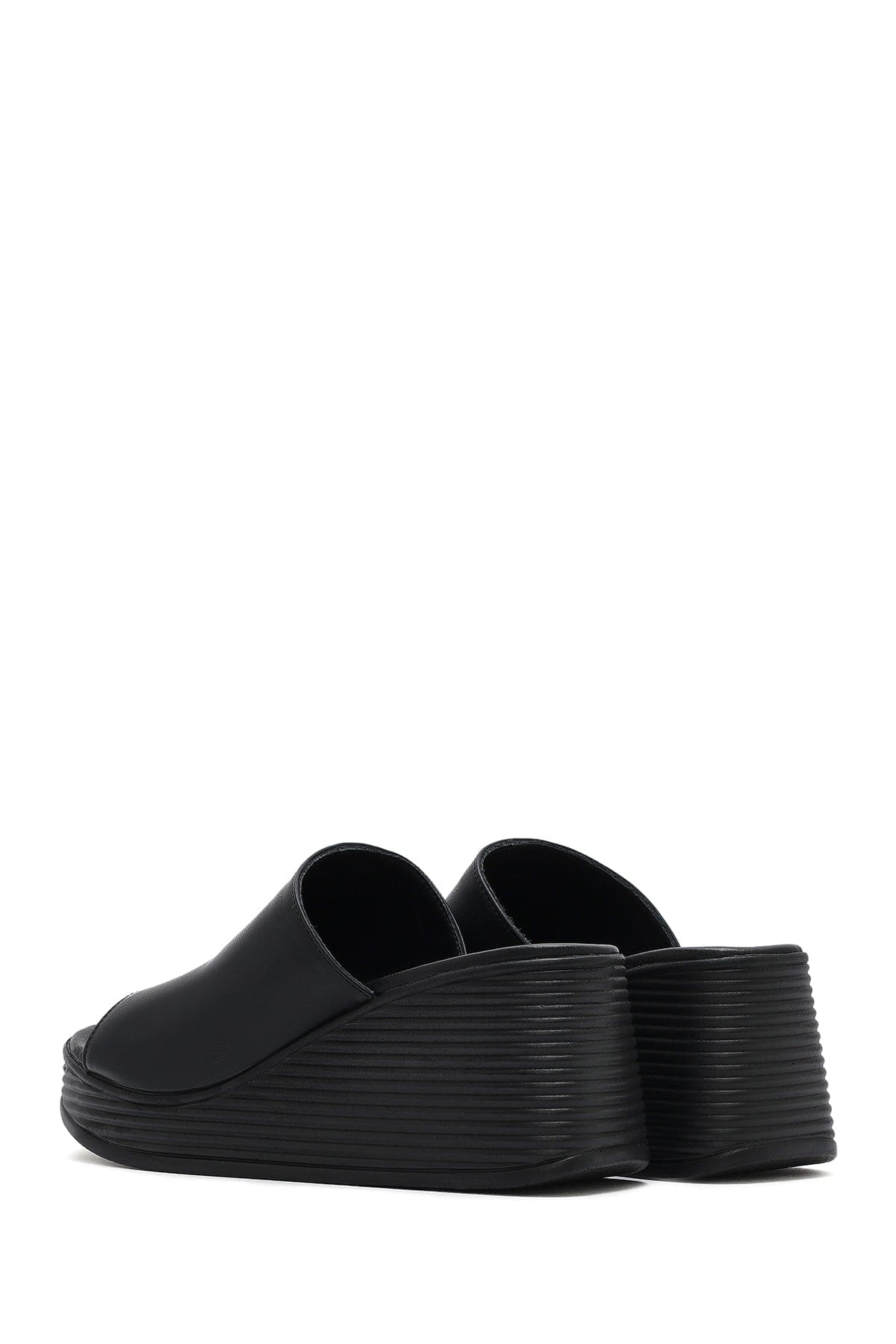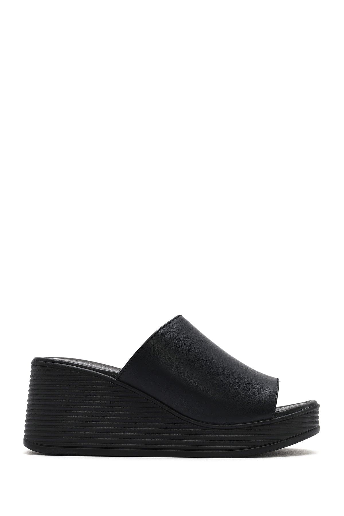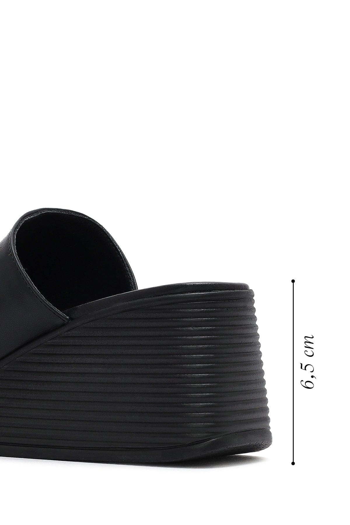 Kadın Siyah Dolgu Topuklu Deri Terlik