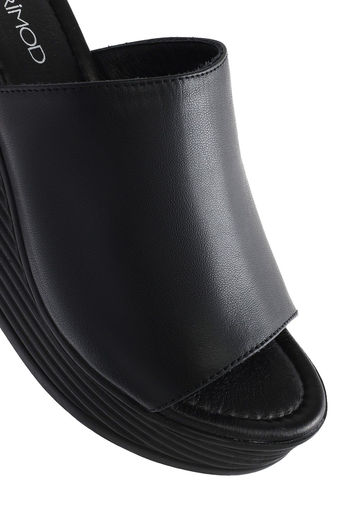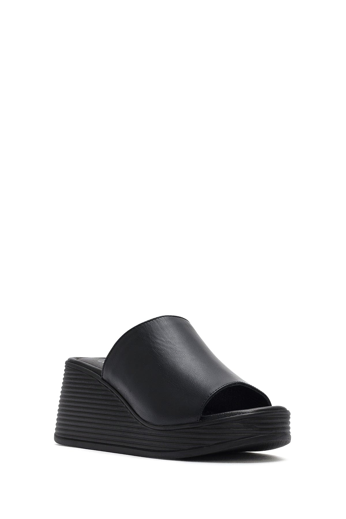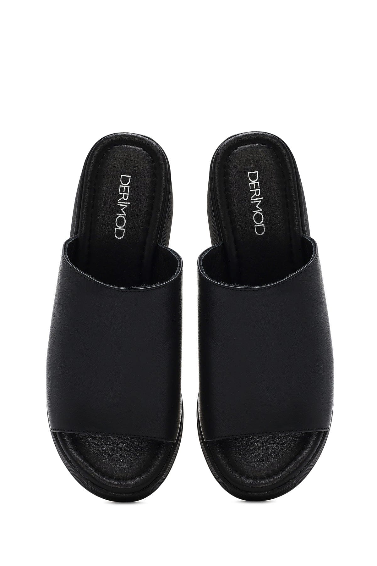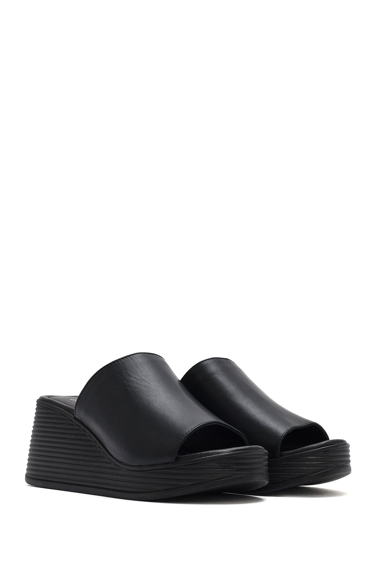 Kadın Siyah Dolgu Topuklu Deri Terlik