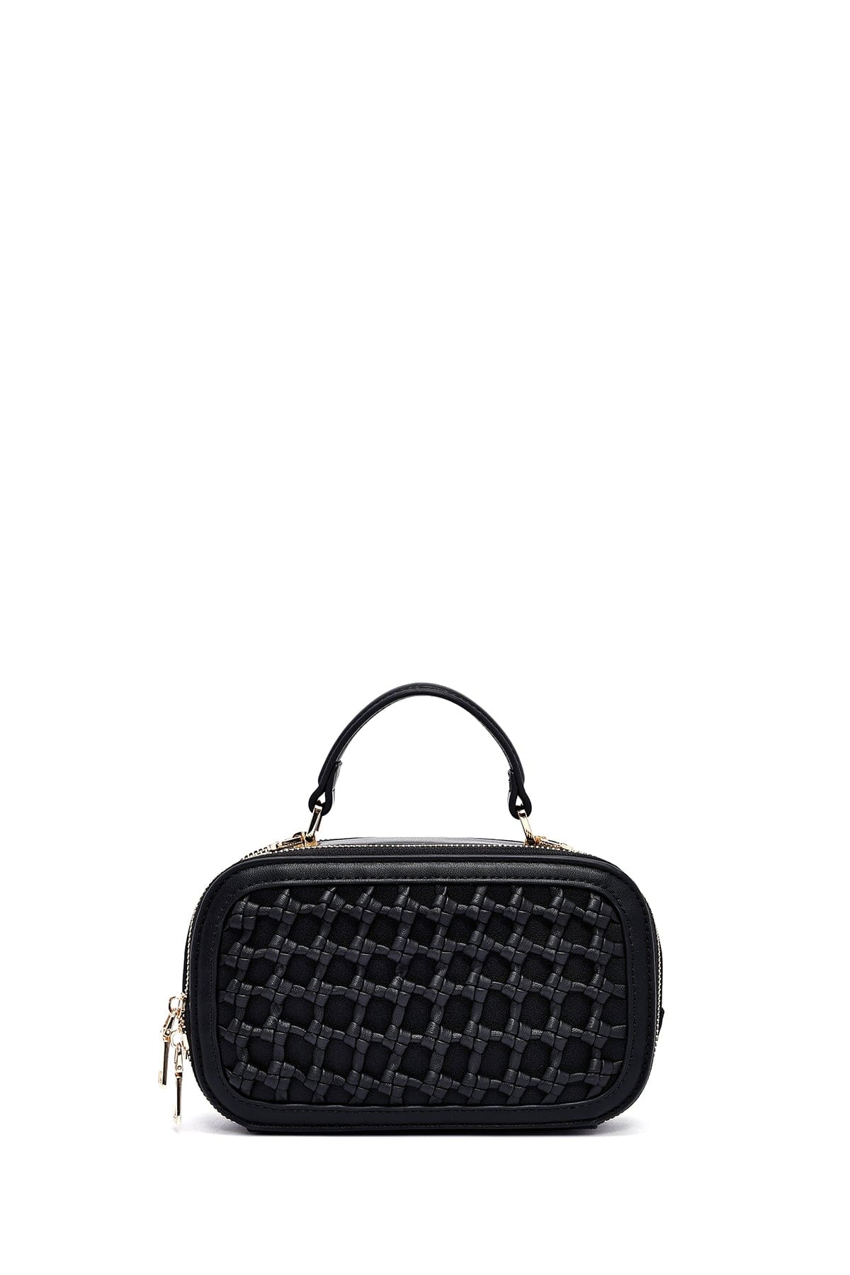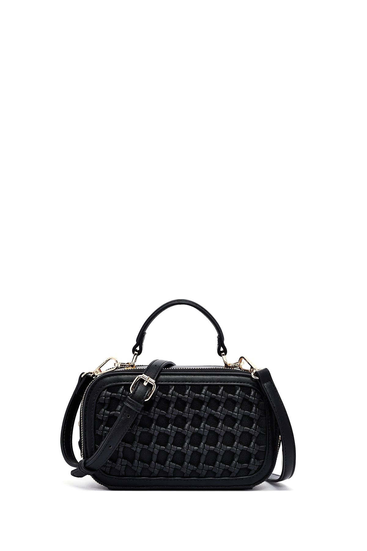 Kadın Siyah Uzun Askılı Örgülü Çapraz Çanta