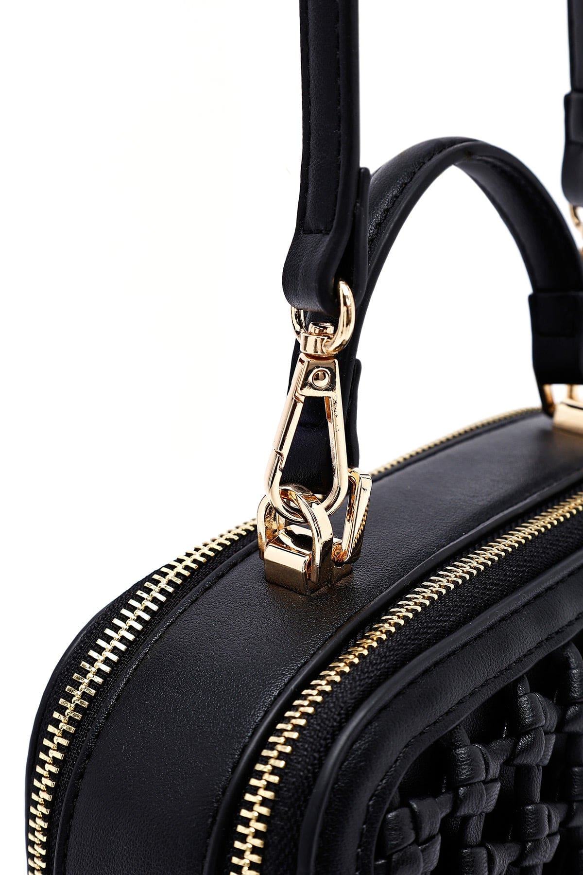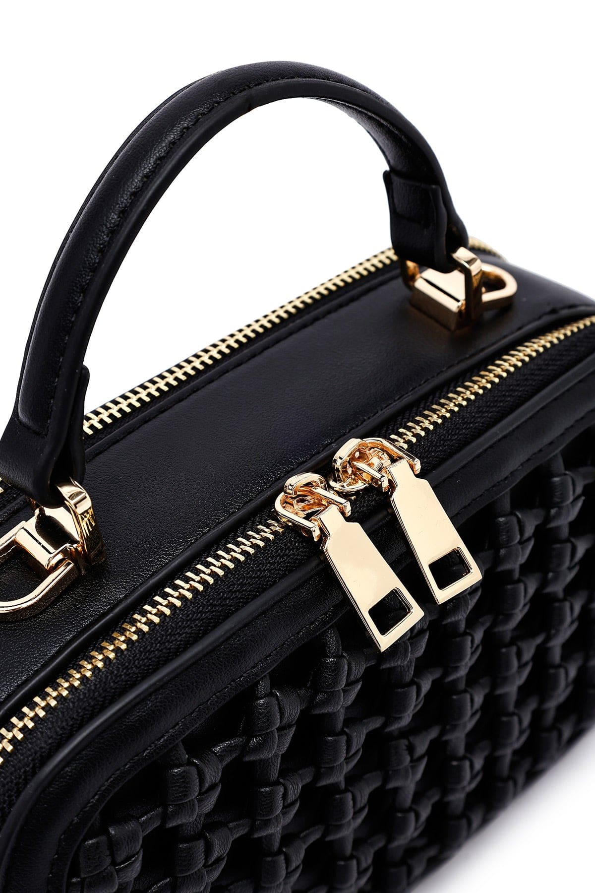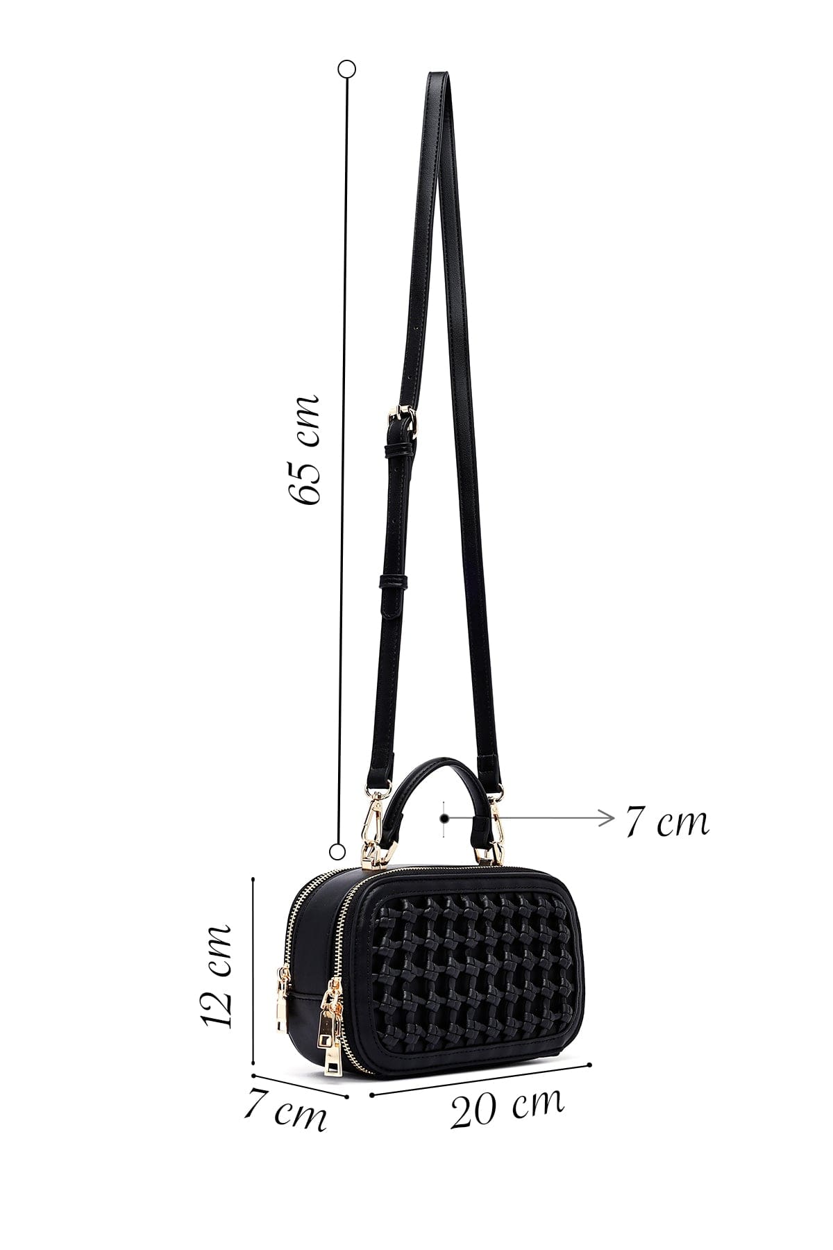 کیف زنانه کراس بادی مشکی بافتدار دوشی بلند دری مد