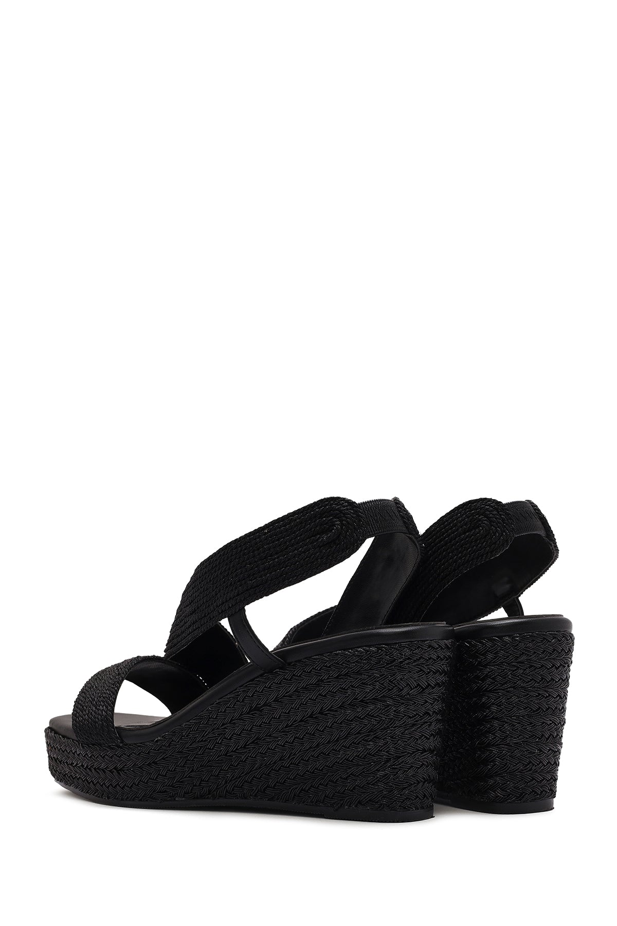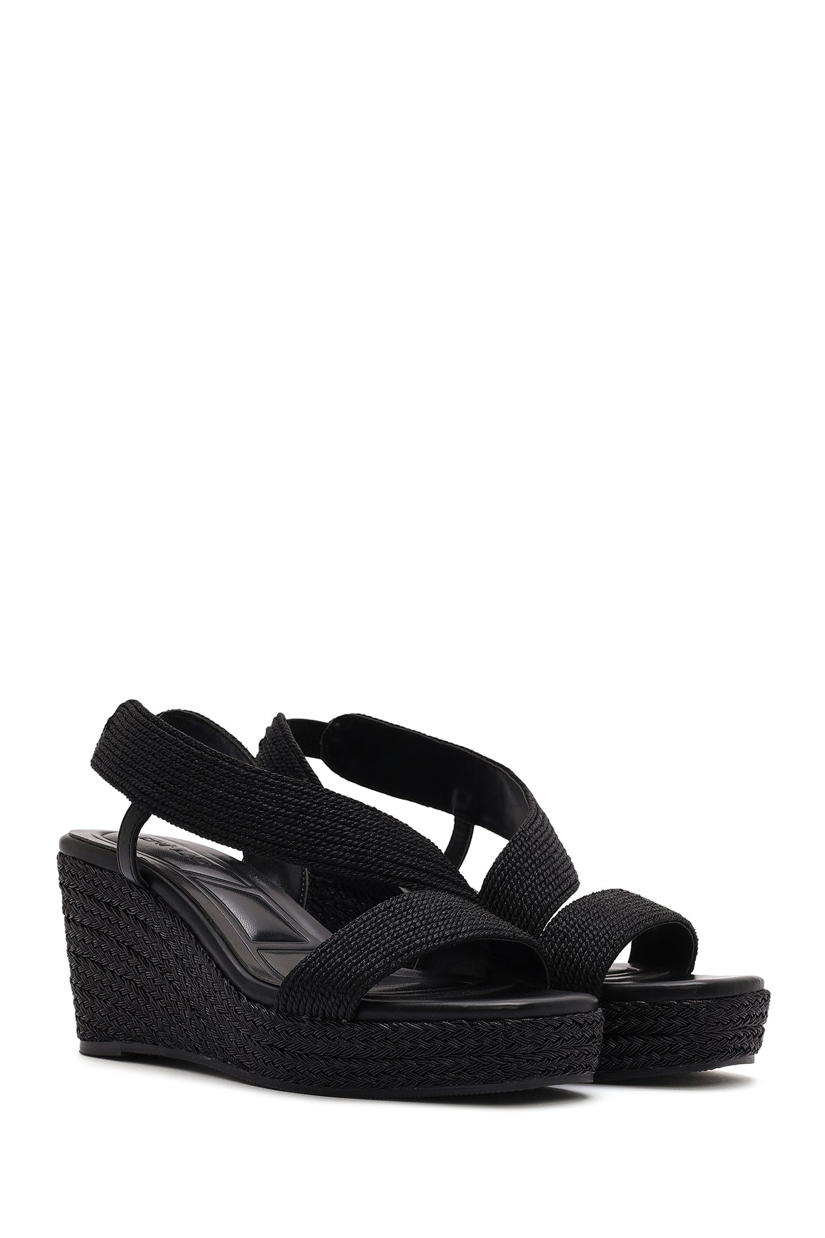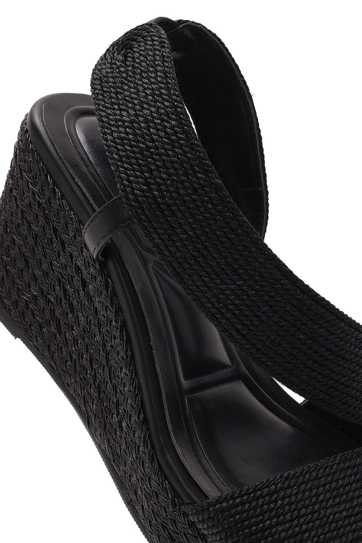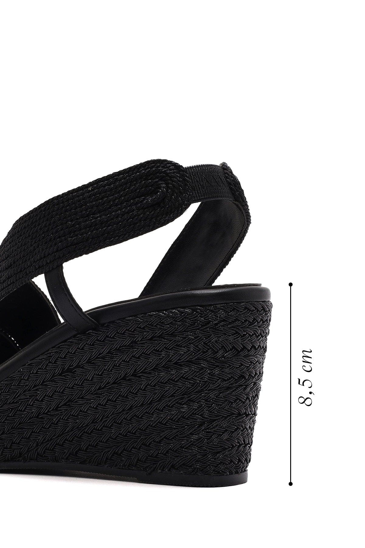 Kadın Siyah Dolgu Topuklu Örgü Espadril Sandalet