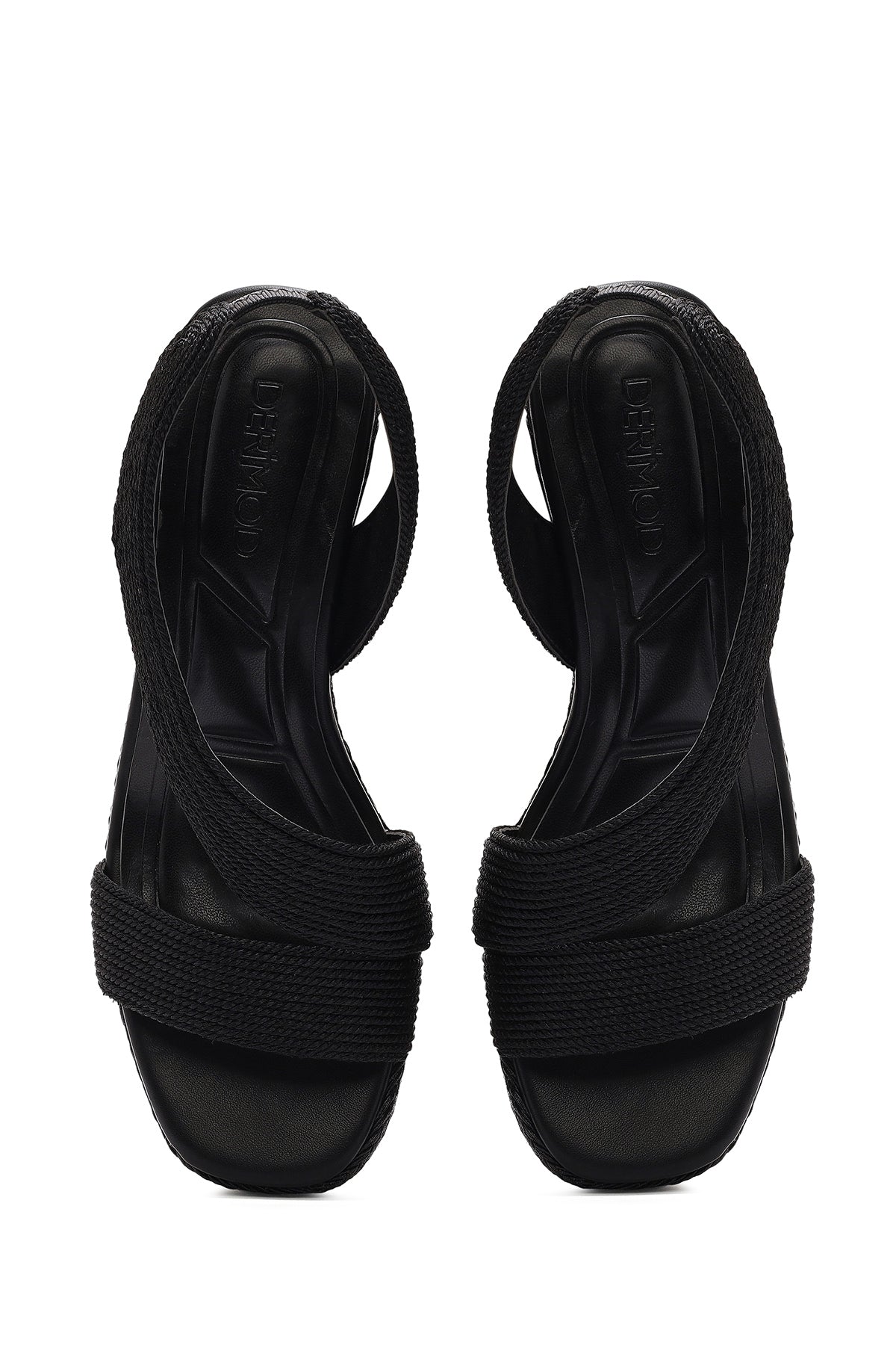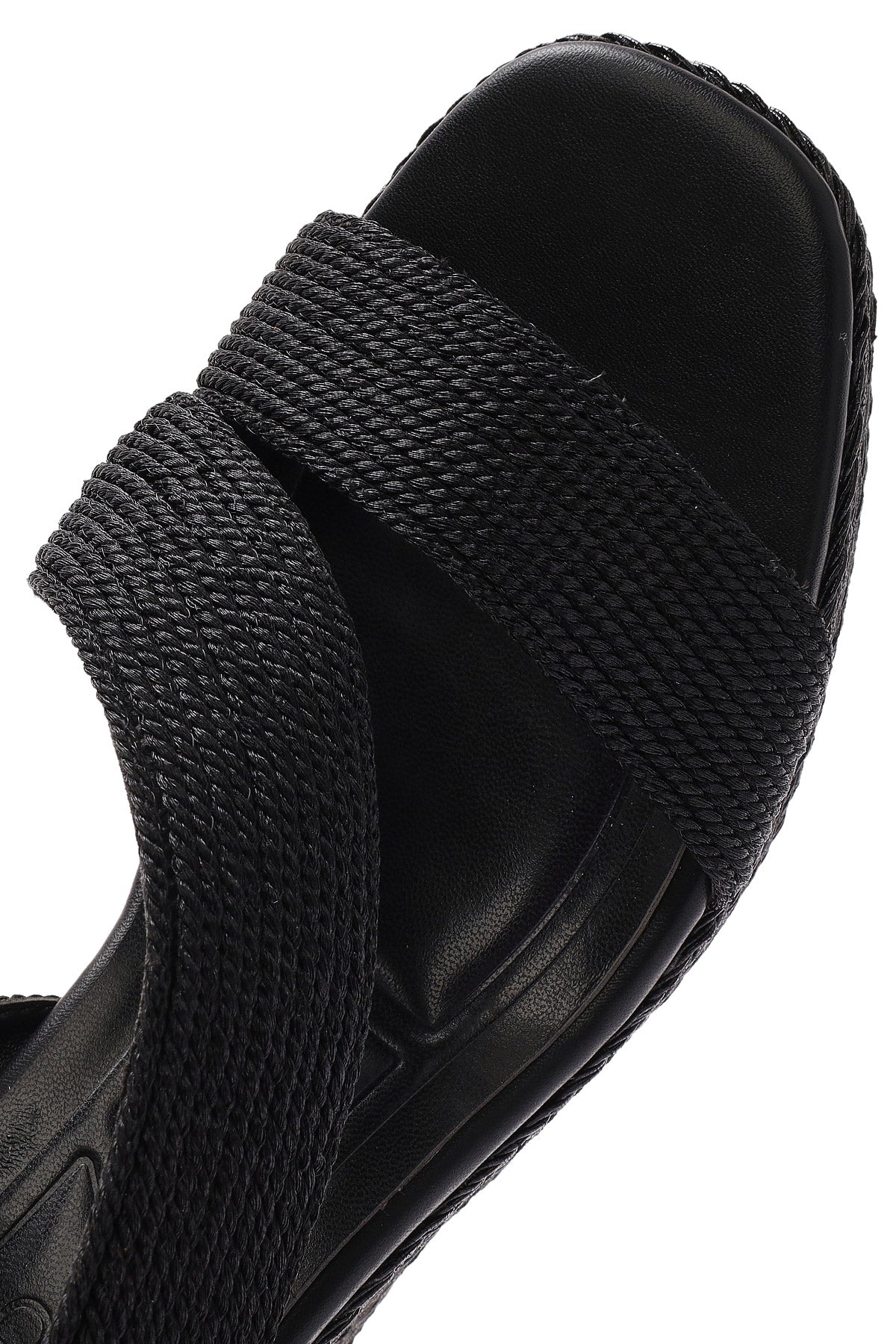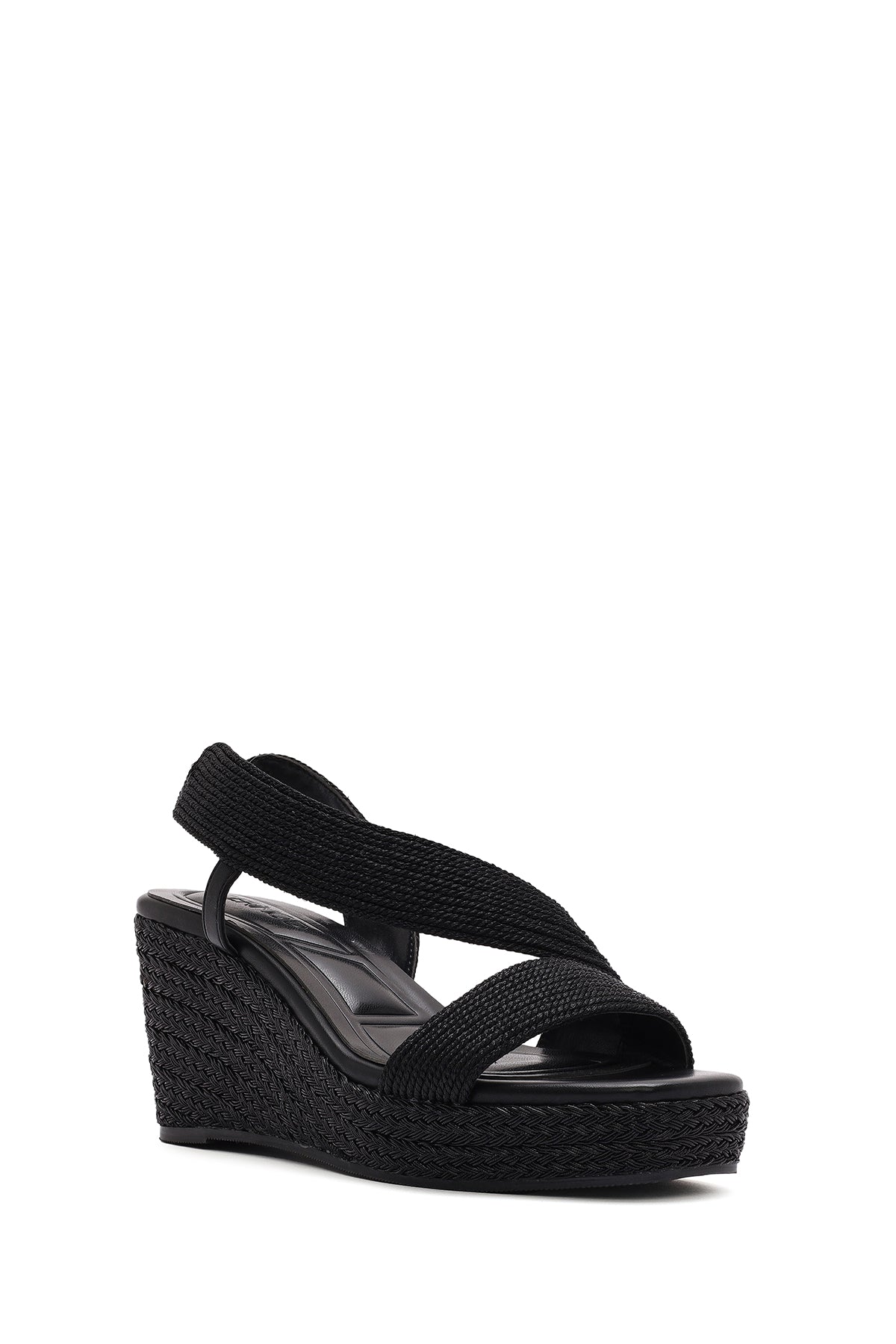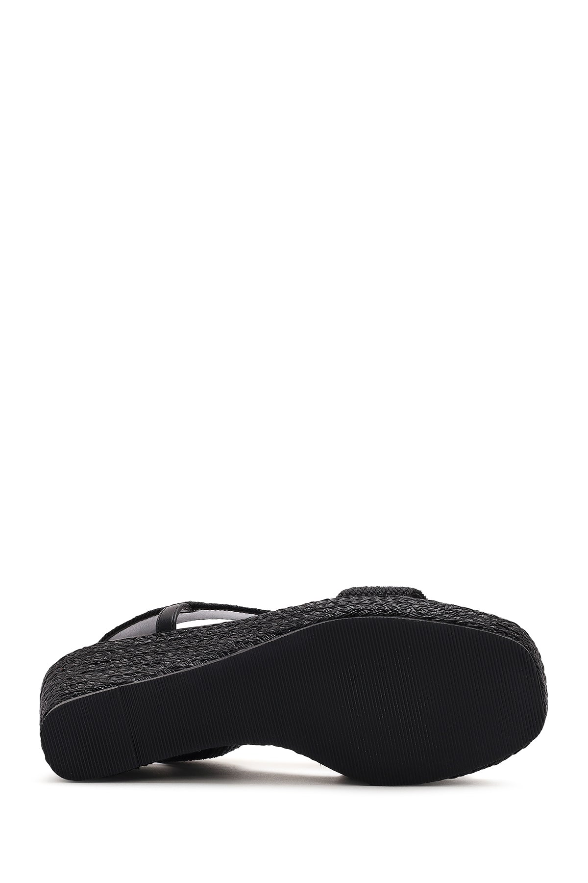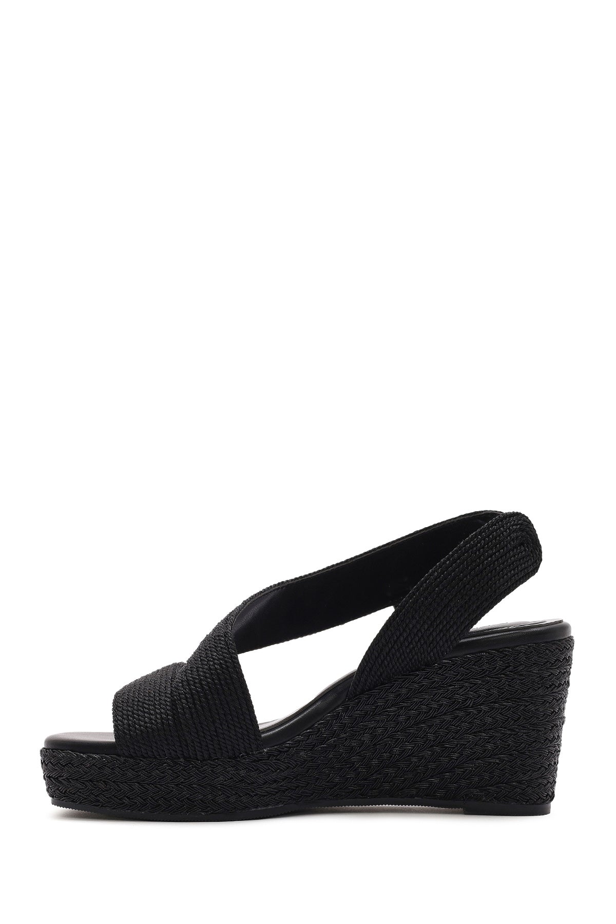 Kadın Siyah Dolgu Topuklu Örgü Espadril Sandalet