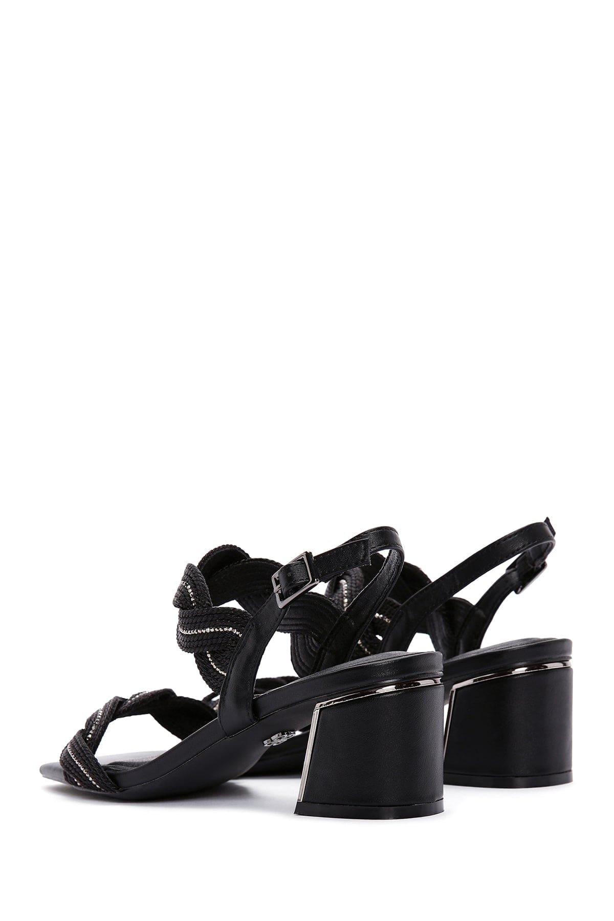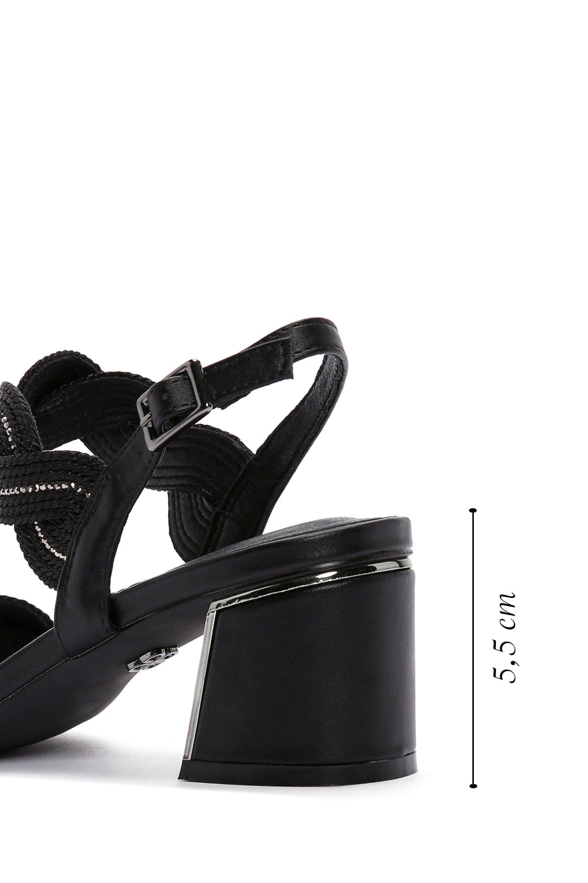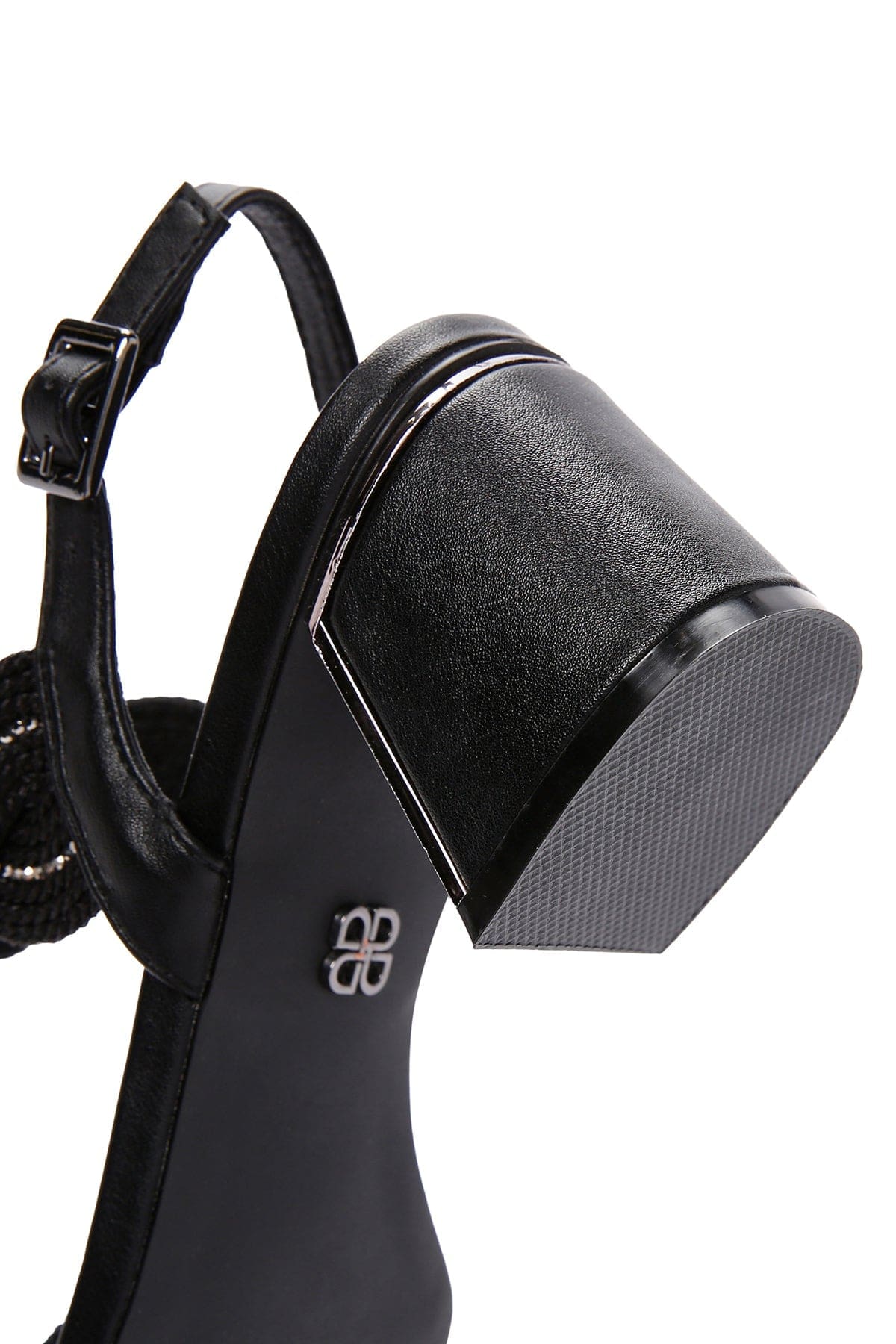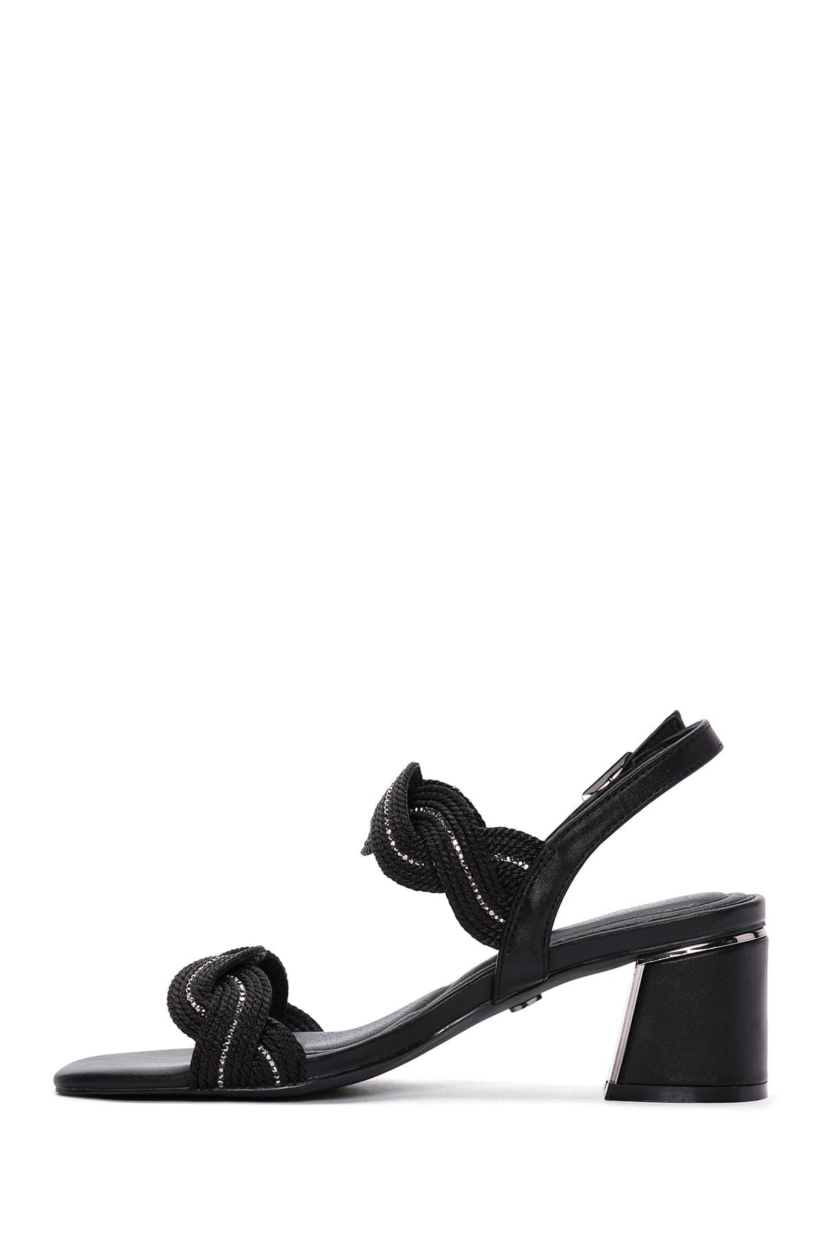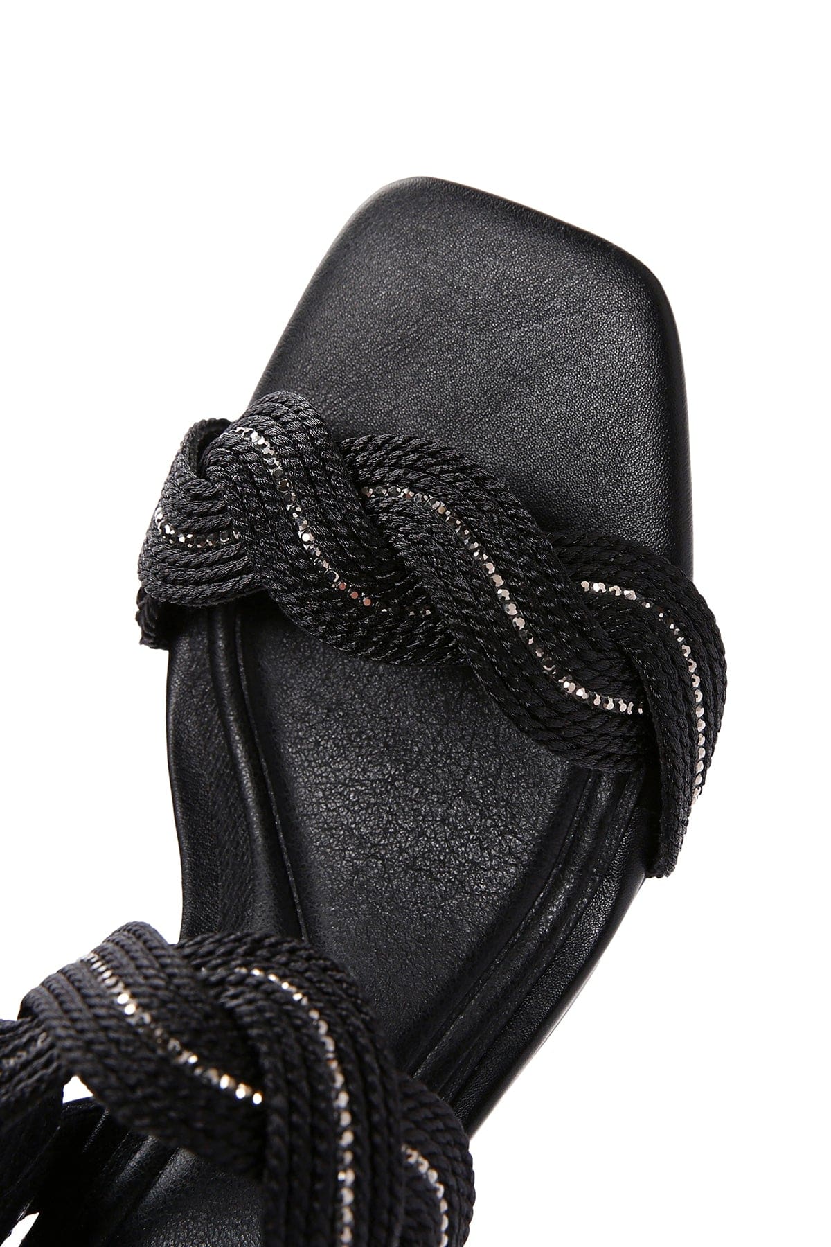 Kadın Siyah Örgülü Kalın Kısa Topuklu Sandalet