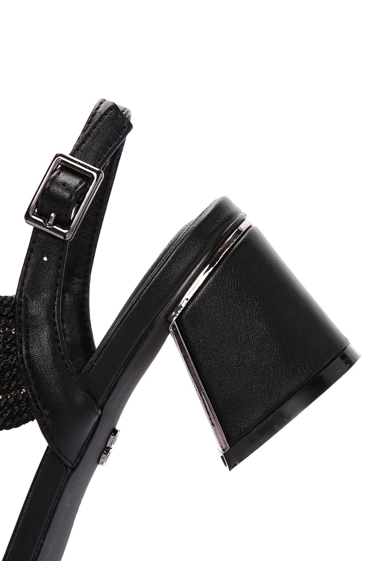 صندل زنانه مشکی بافتدار پاشنه کوتاه ضخیم دری مد