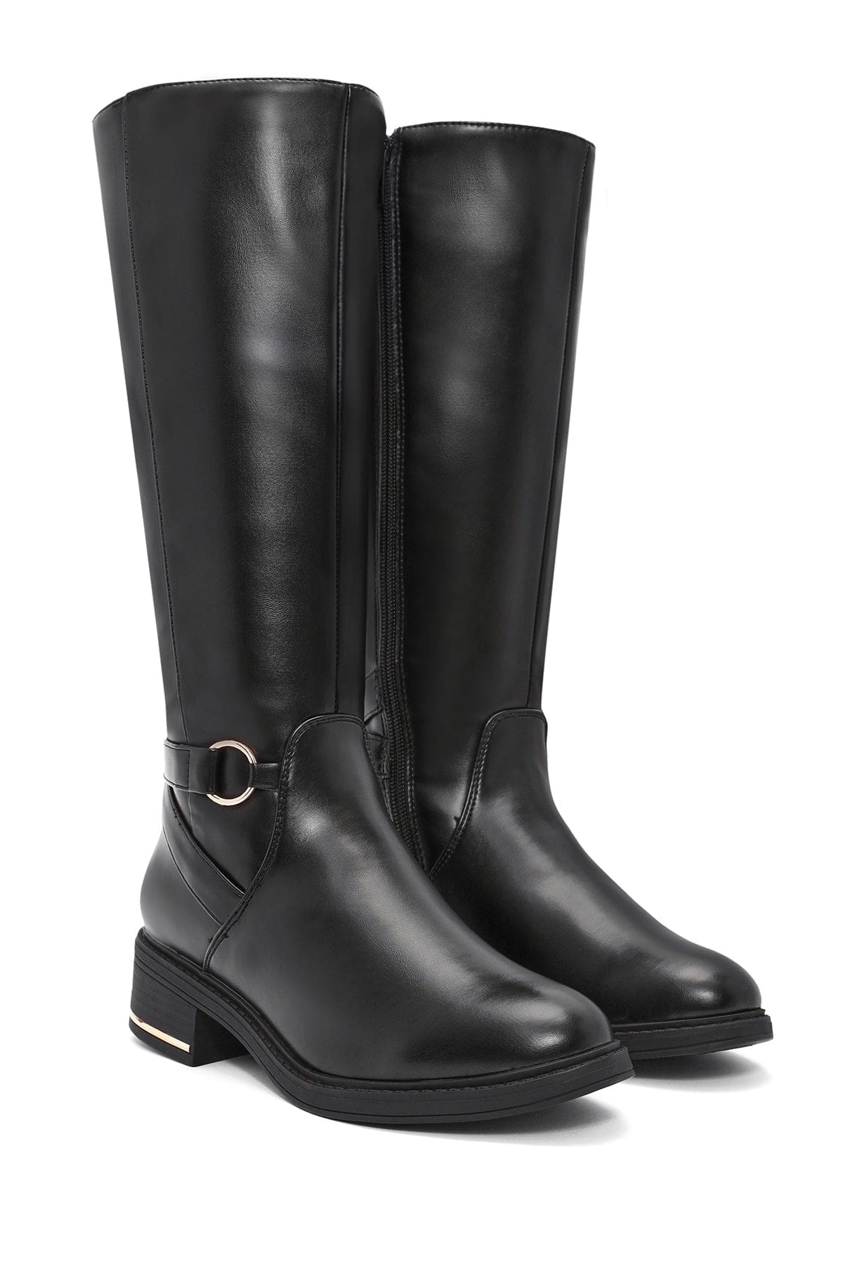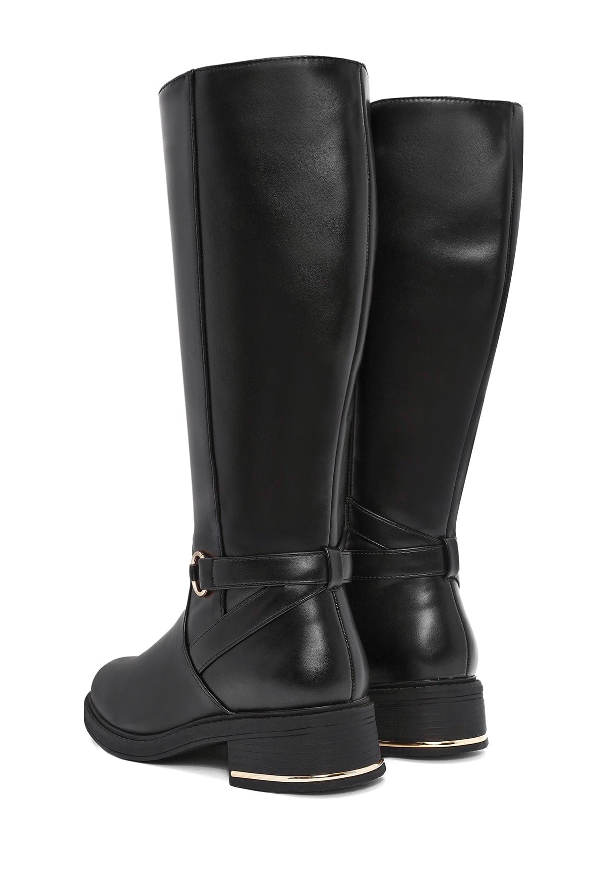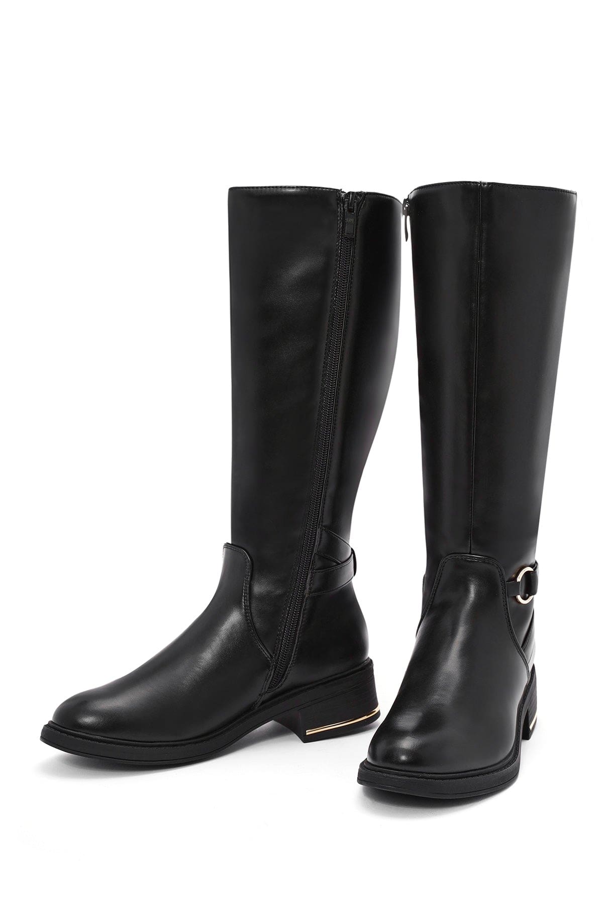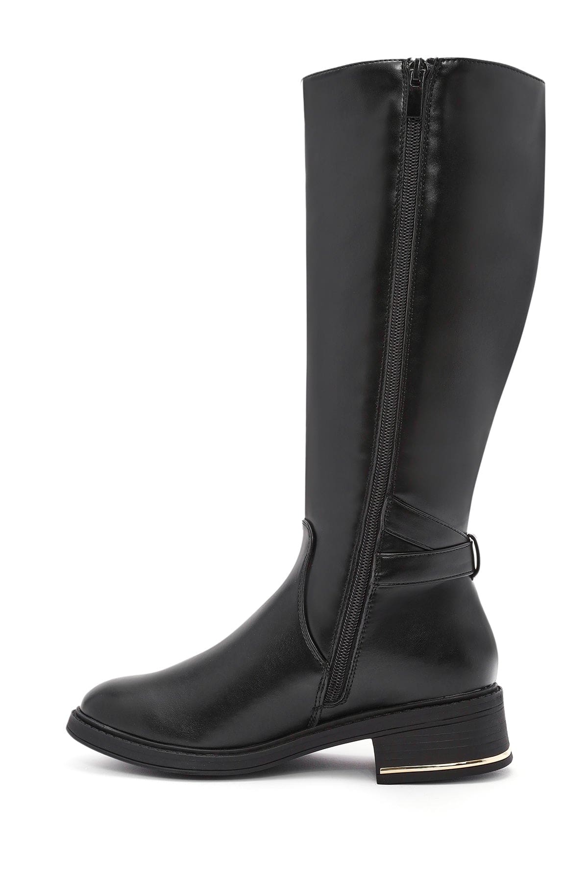 Kadın Siyah Fermuarlı Toka Detaylı Çizme