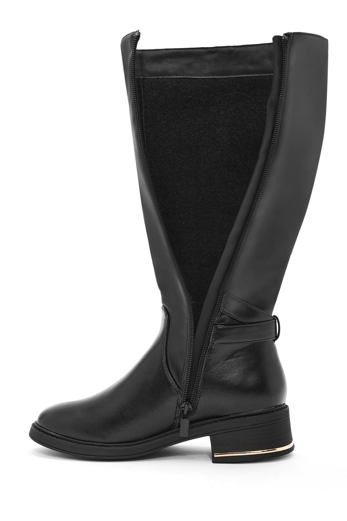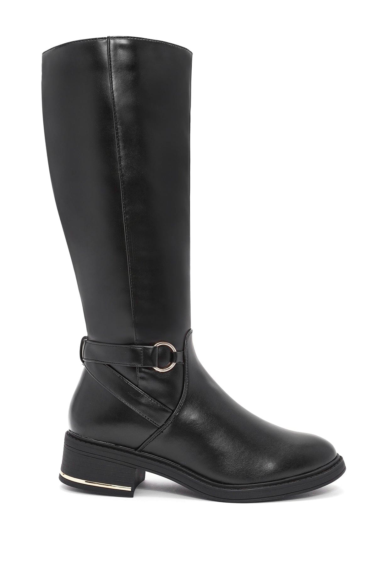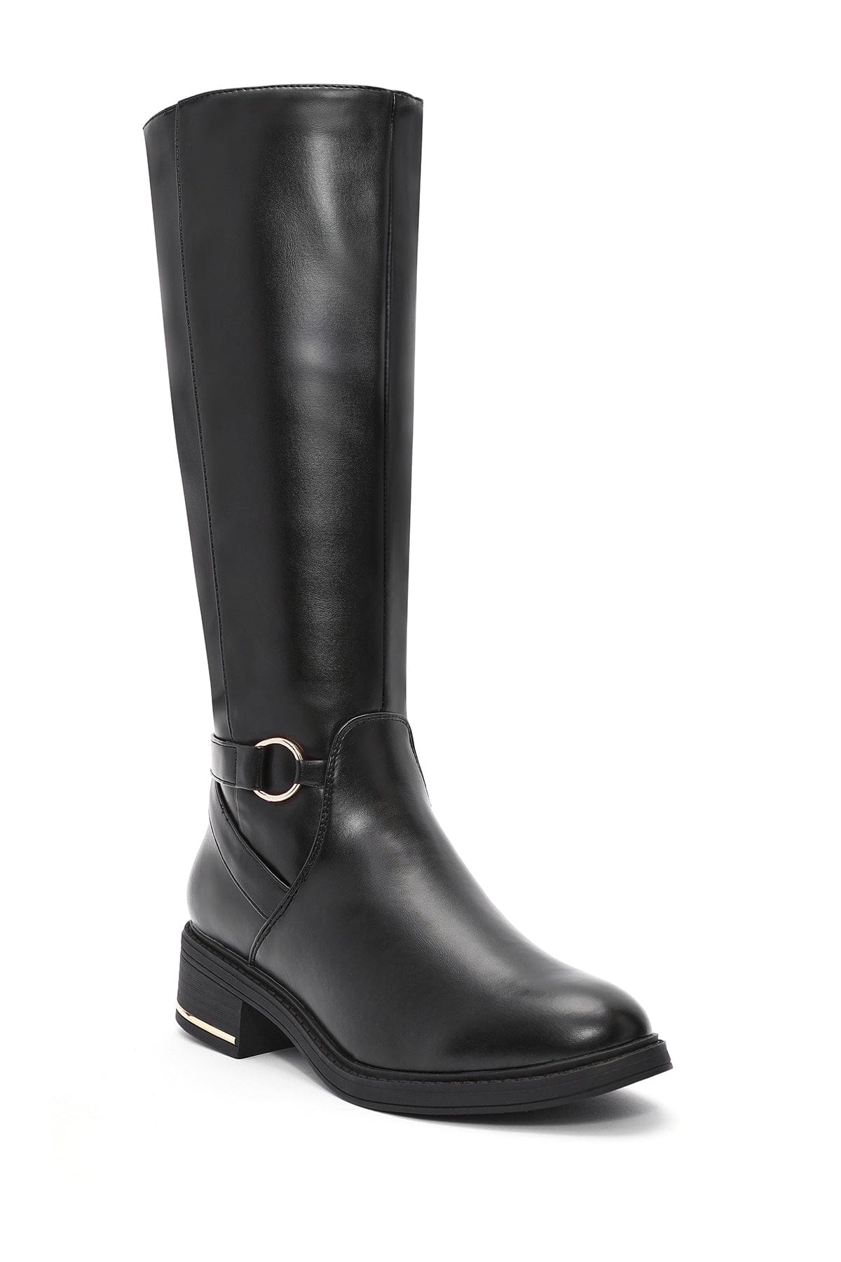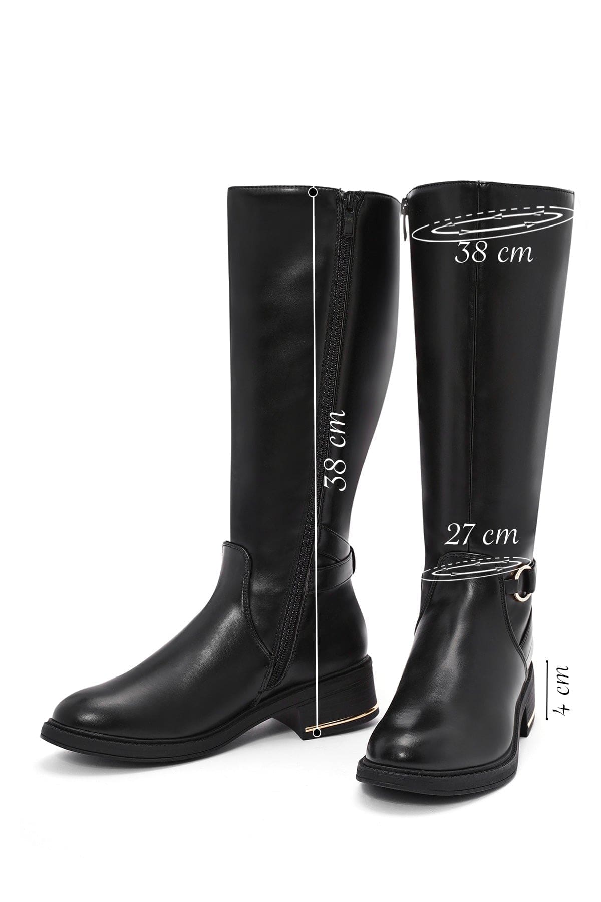 Kadın Siyah Fermuarlı Toka Detaylı Çizme