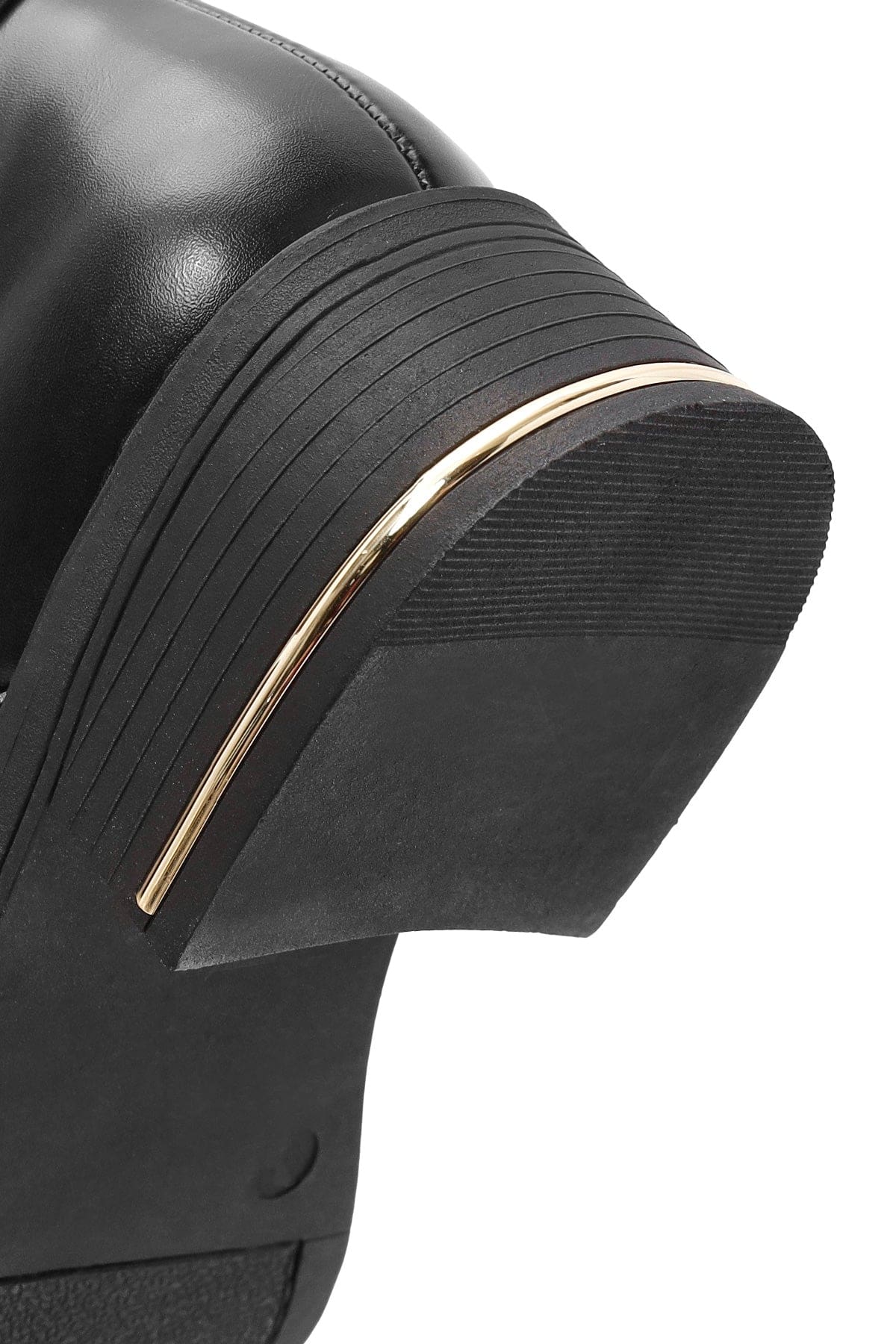 چکمه زنانه مشکی چرمی زیپدار با تکه بند دری مد