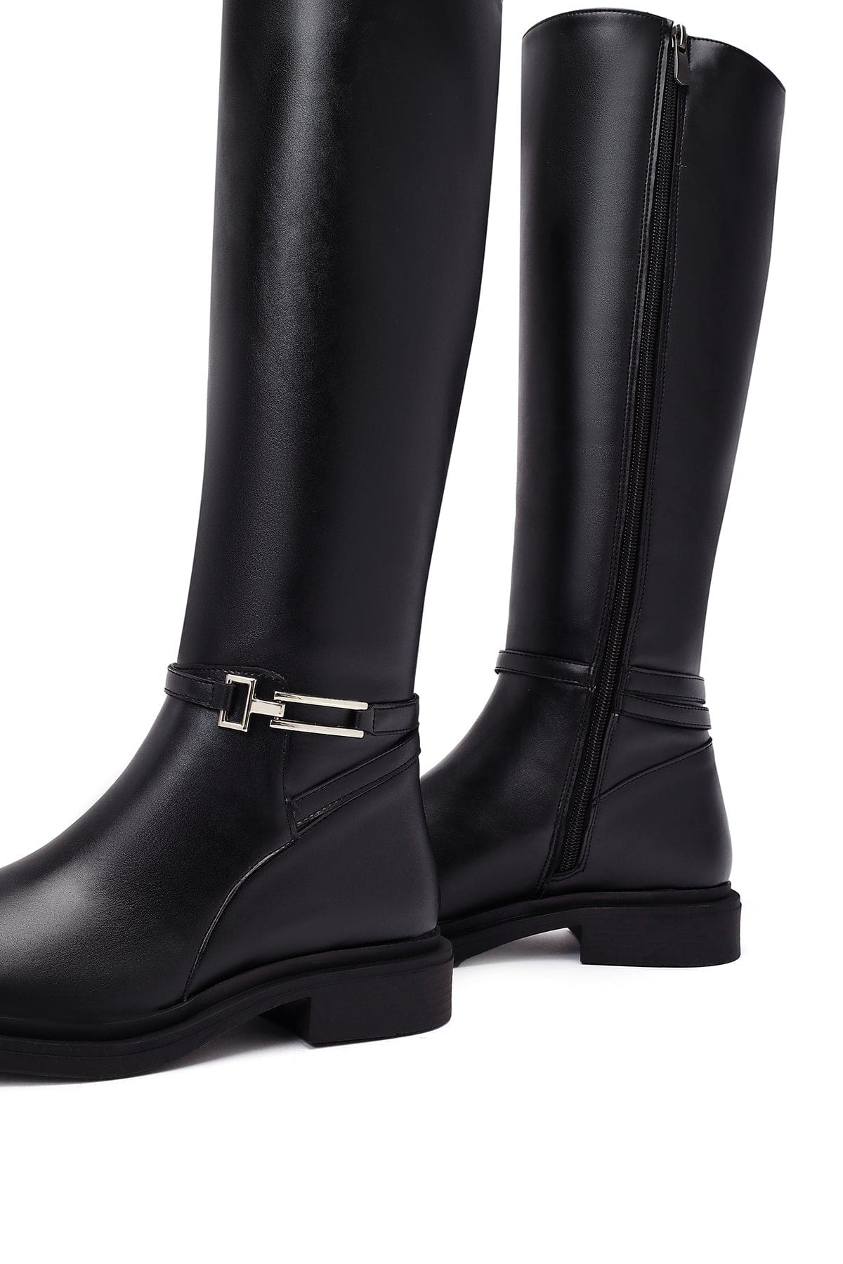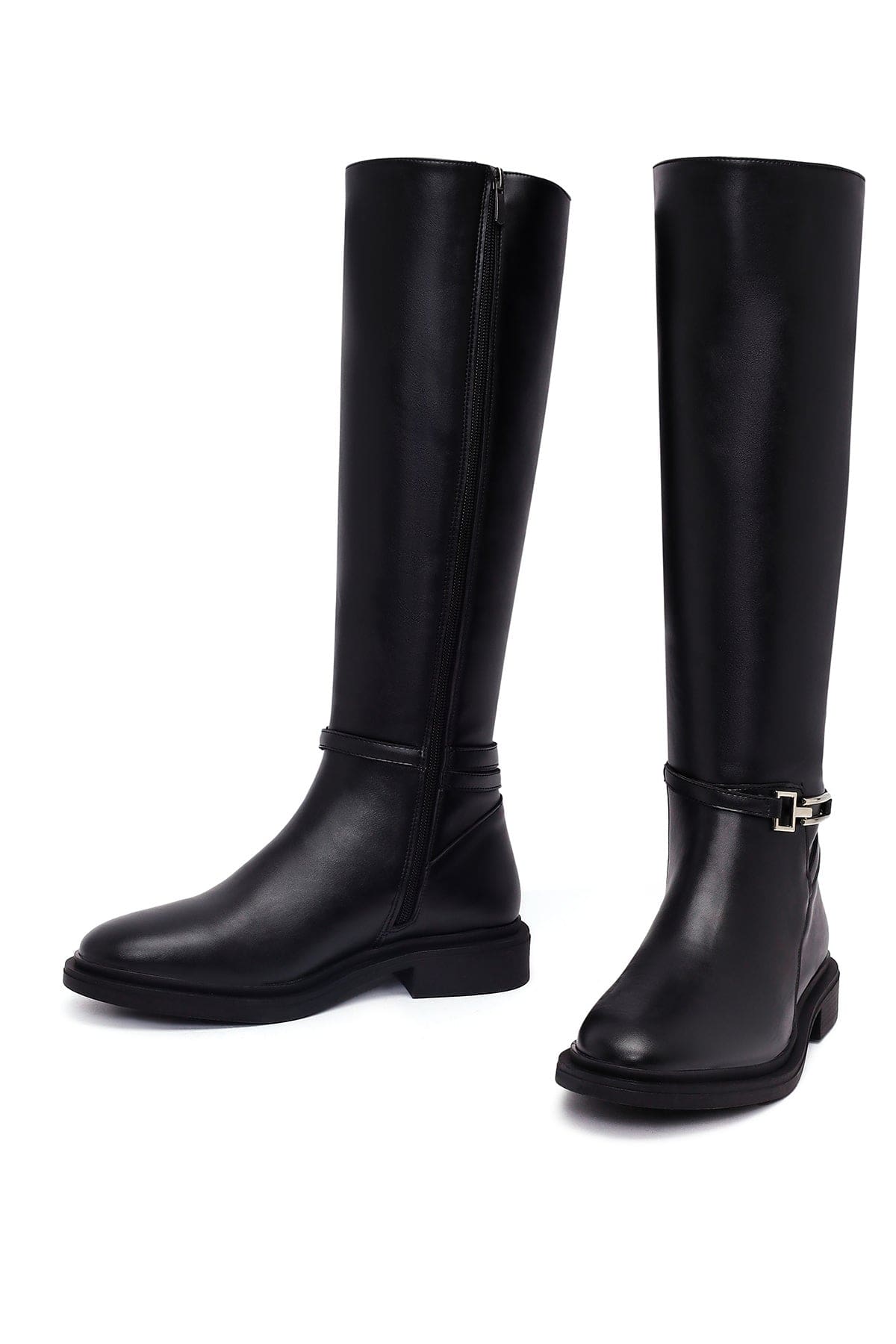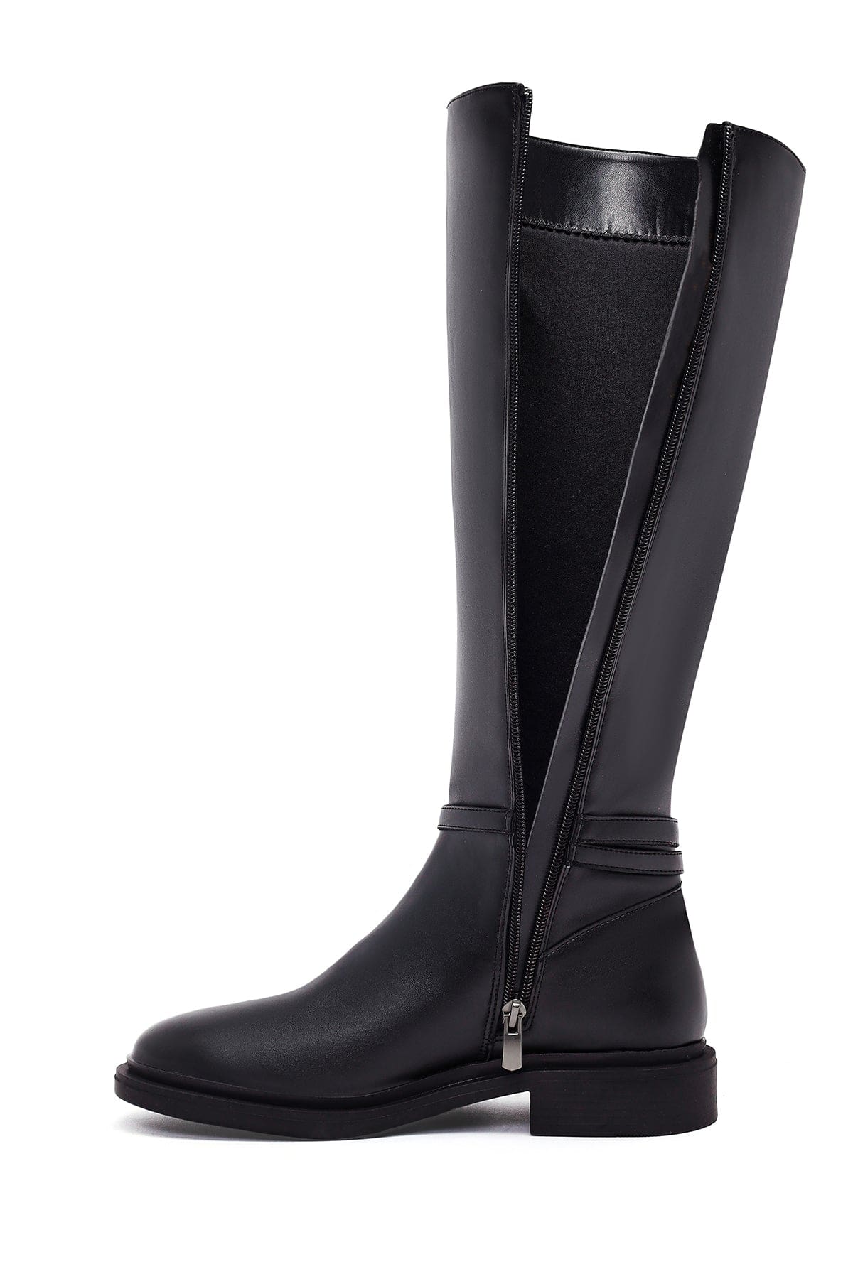 چکمه زنانه مشکی چرمی زیپدار دری مد
