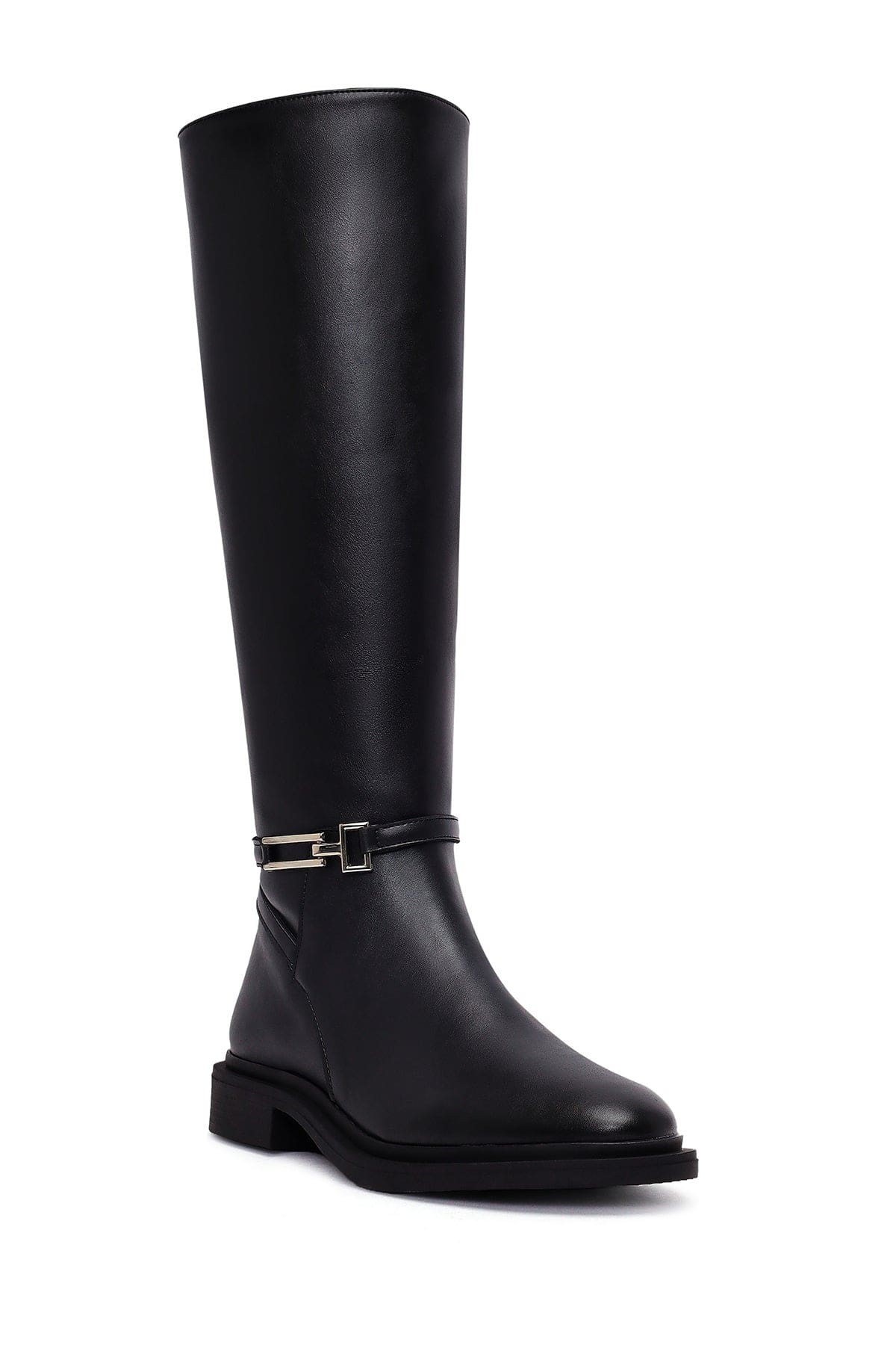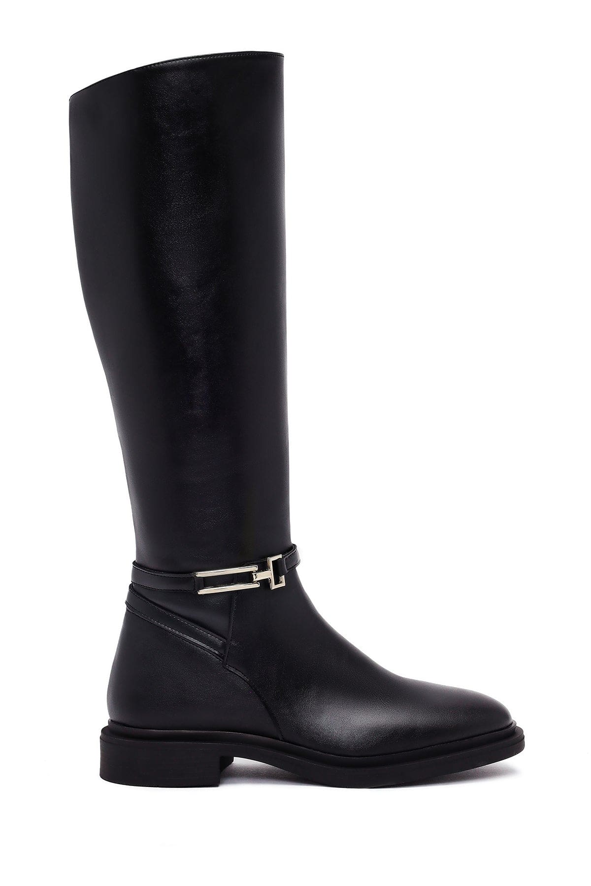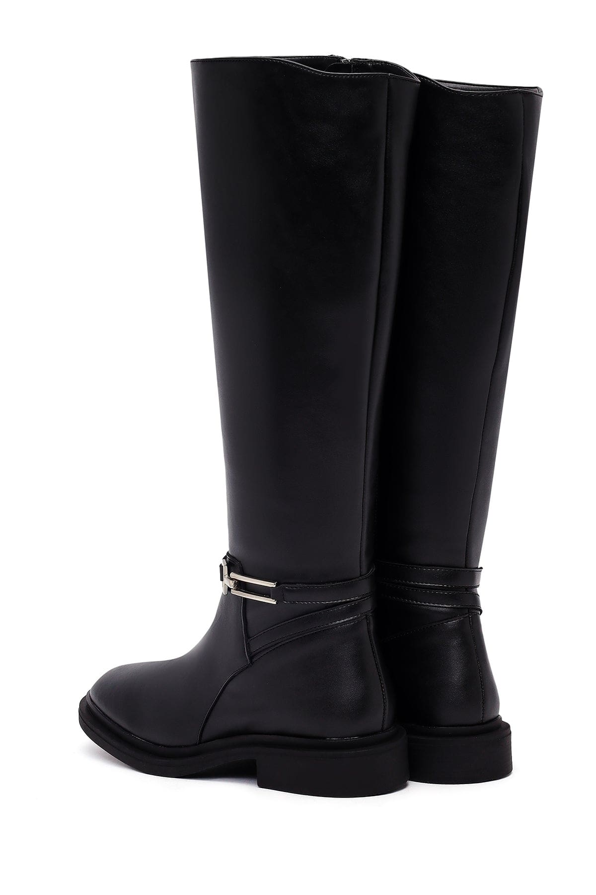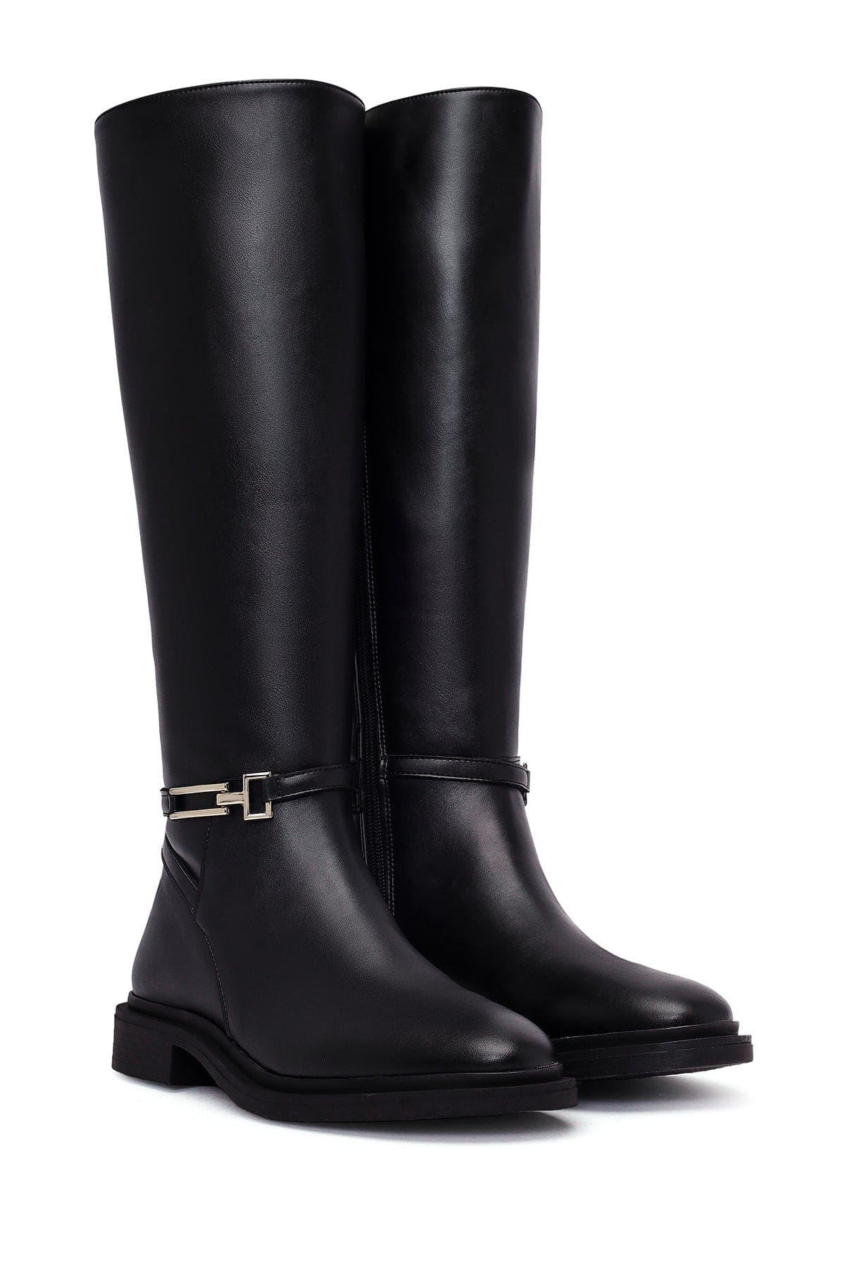 چکمه زنانه مشکی چرمی زیپدار دری مد