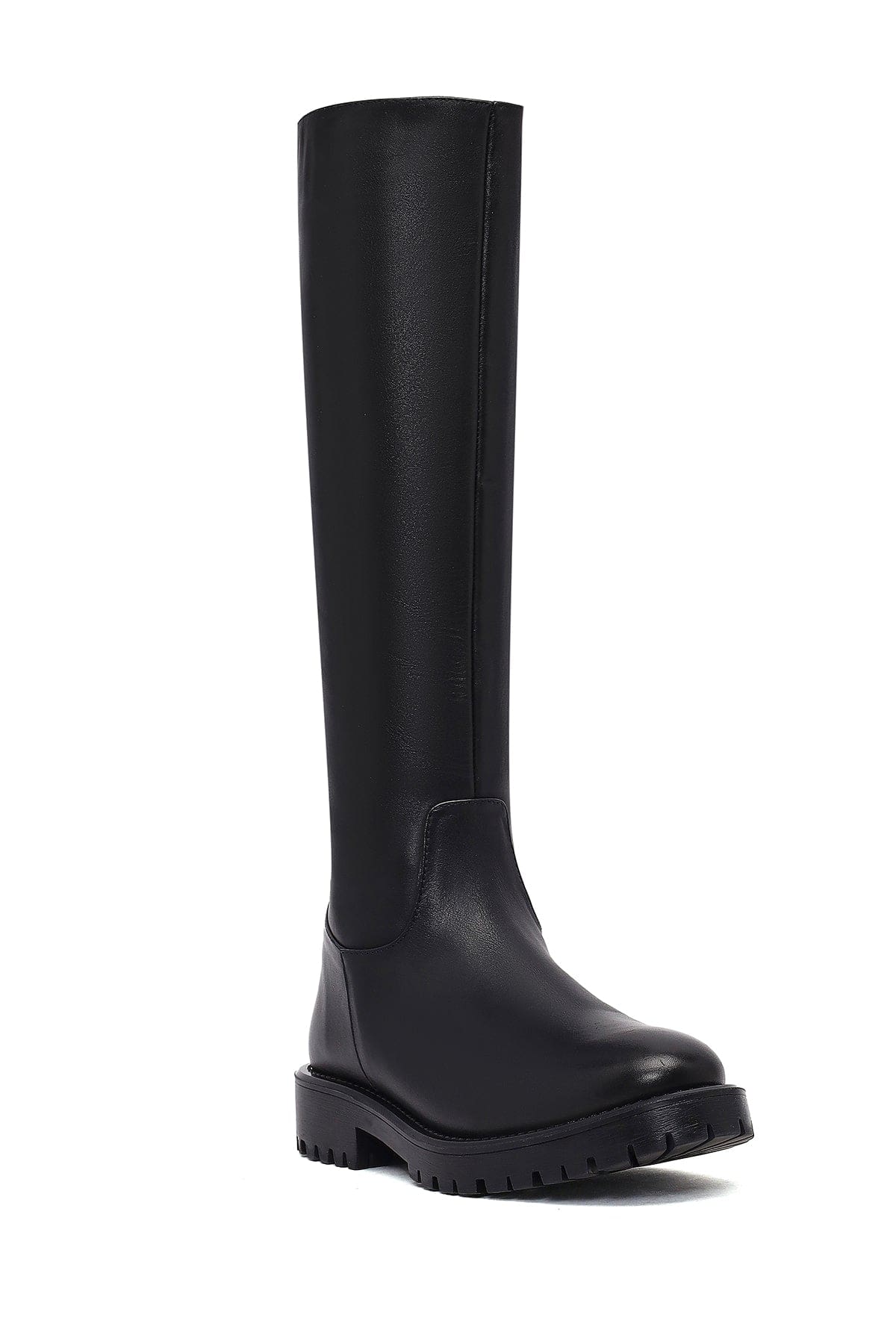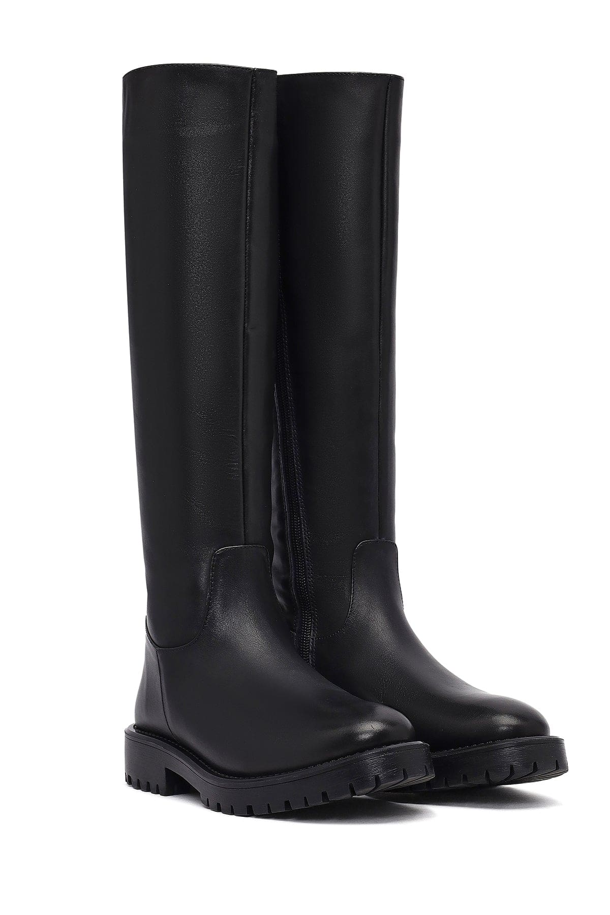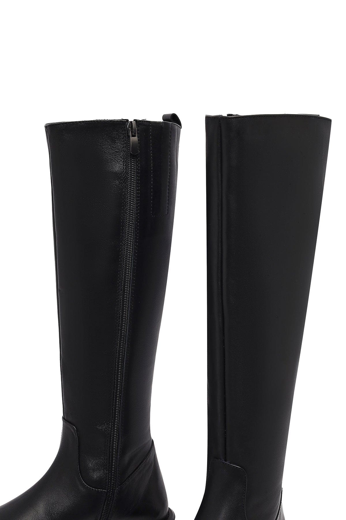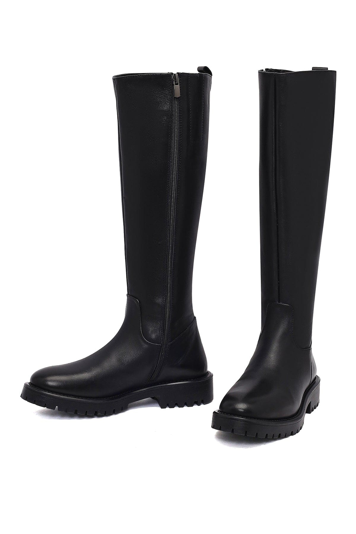 چکمه زنانه مشکی چرمی زیپدار دری مد