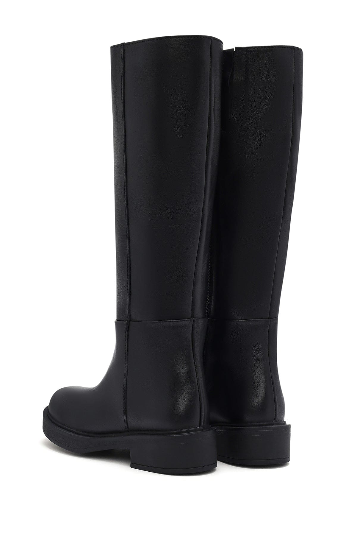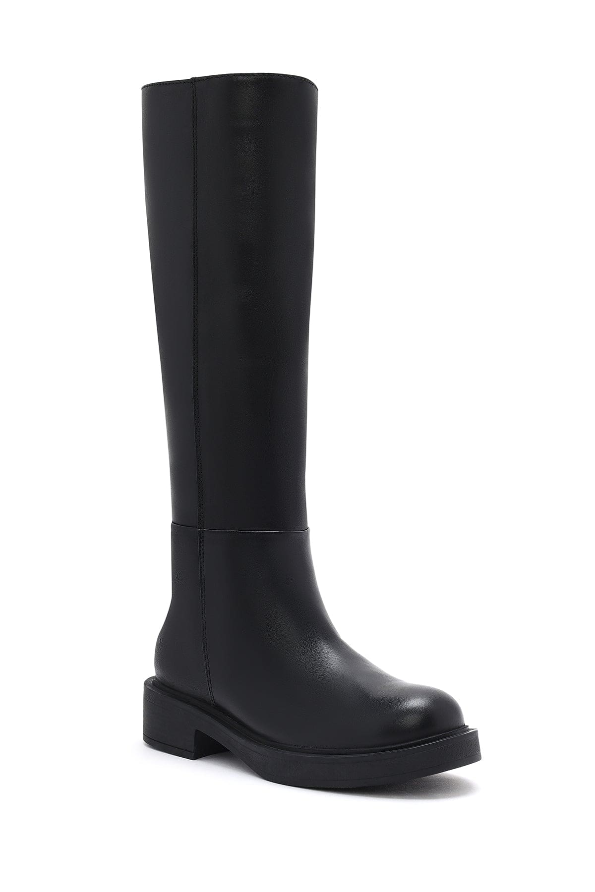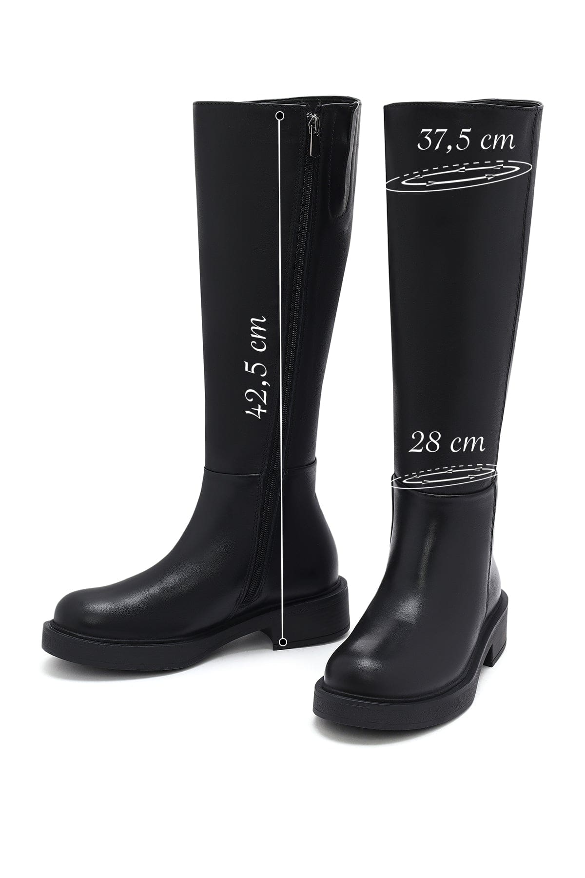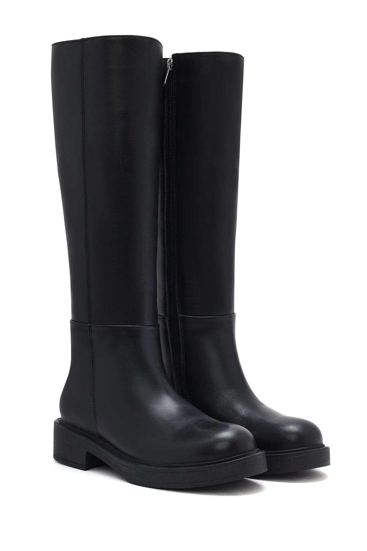 چکمه زنانه مشکی چرمی زیپدار دری مد