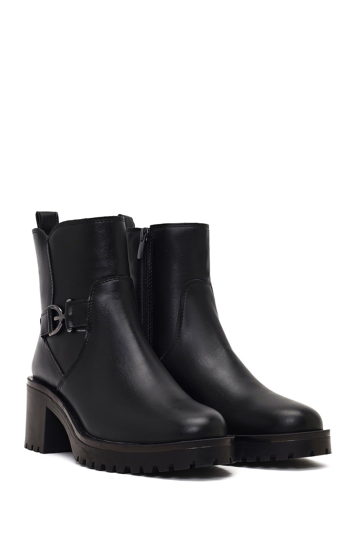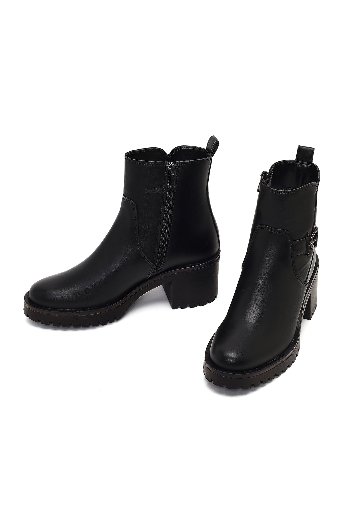 Kadın Siyah Fermuarlı Kalın Topuklu Bot