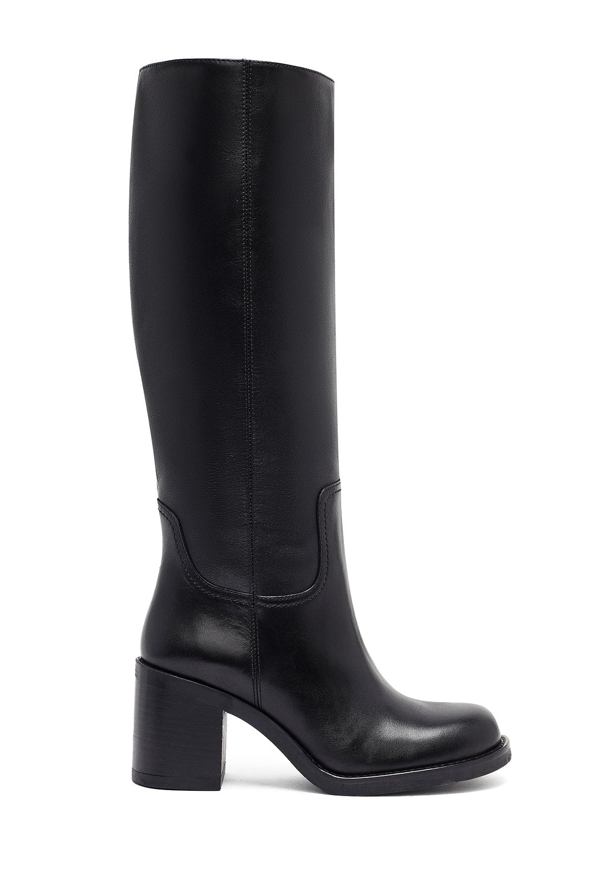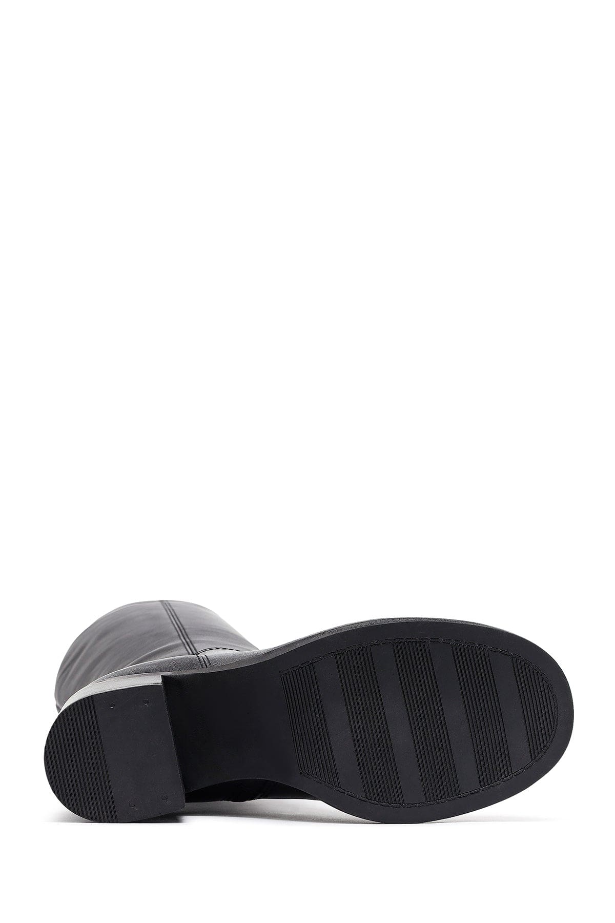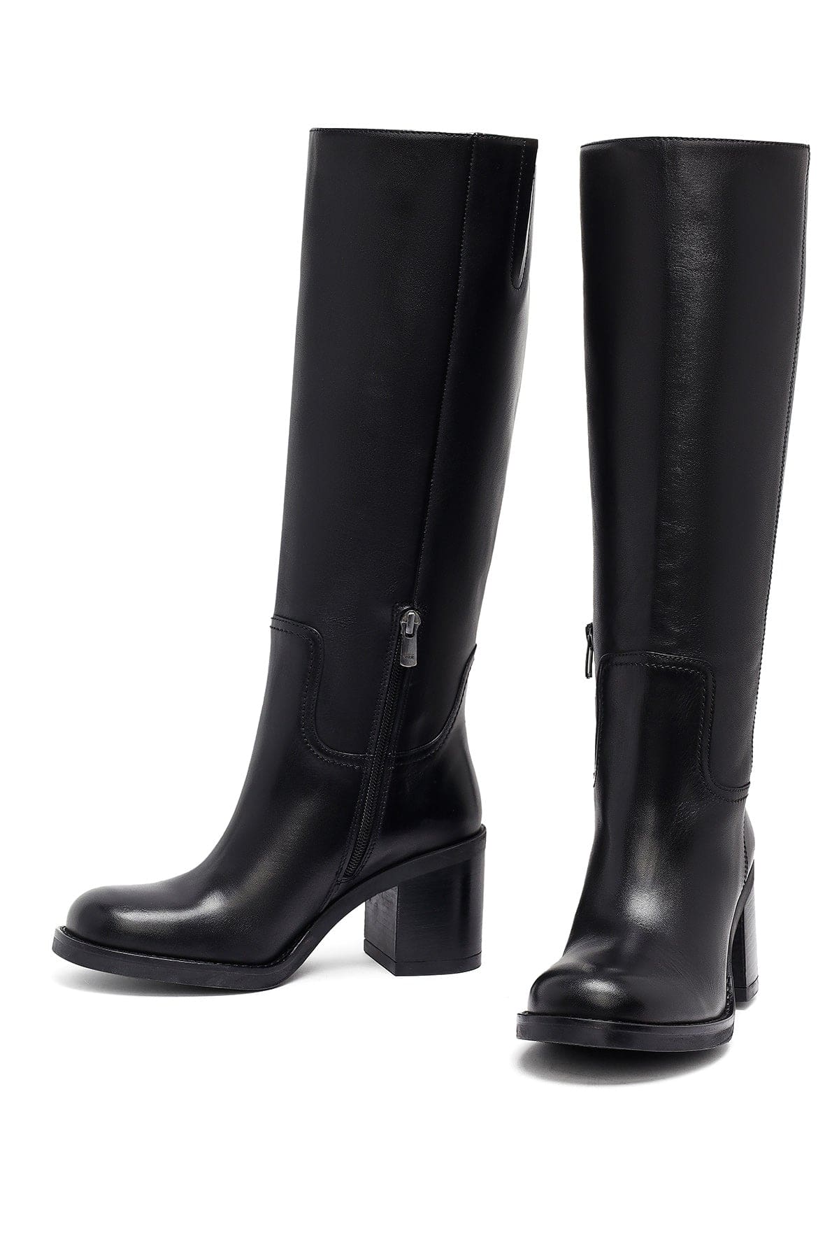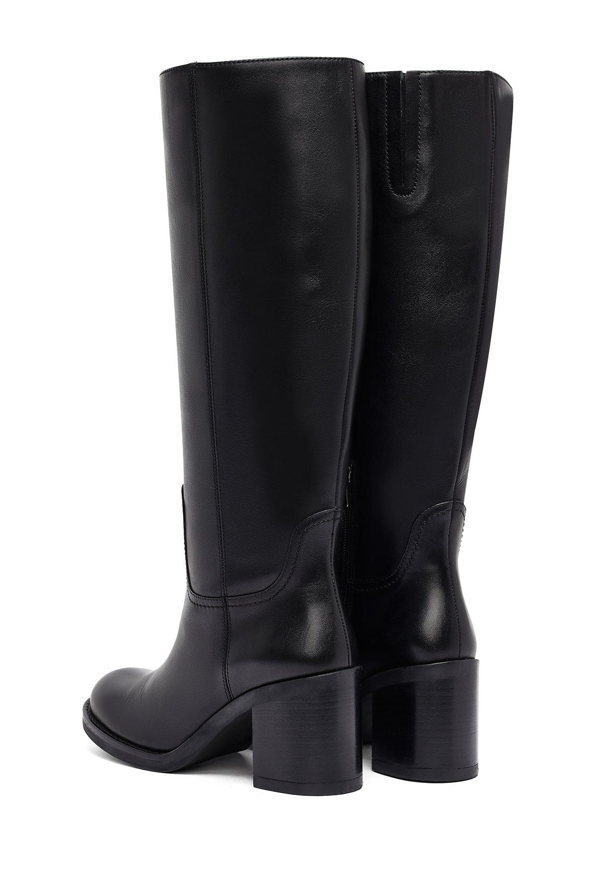Kadın Siyah Fermuarlı Kalın Topuklu Deri Çizme