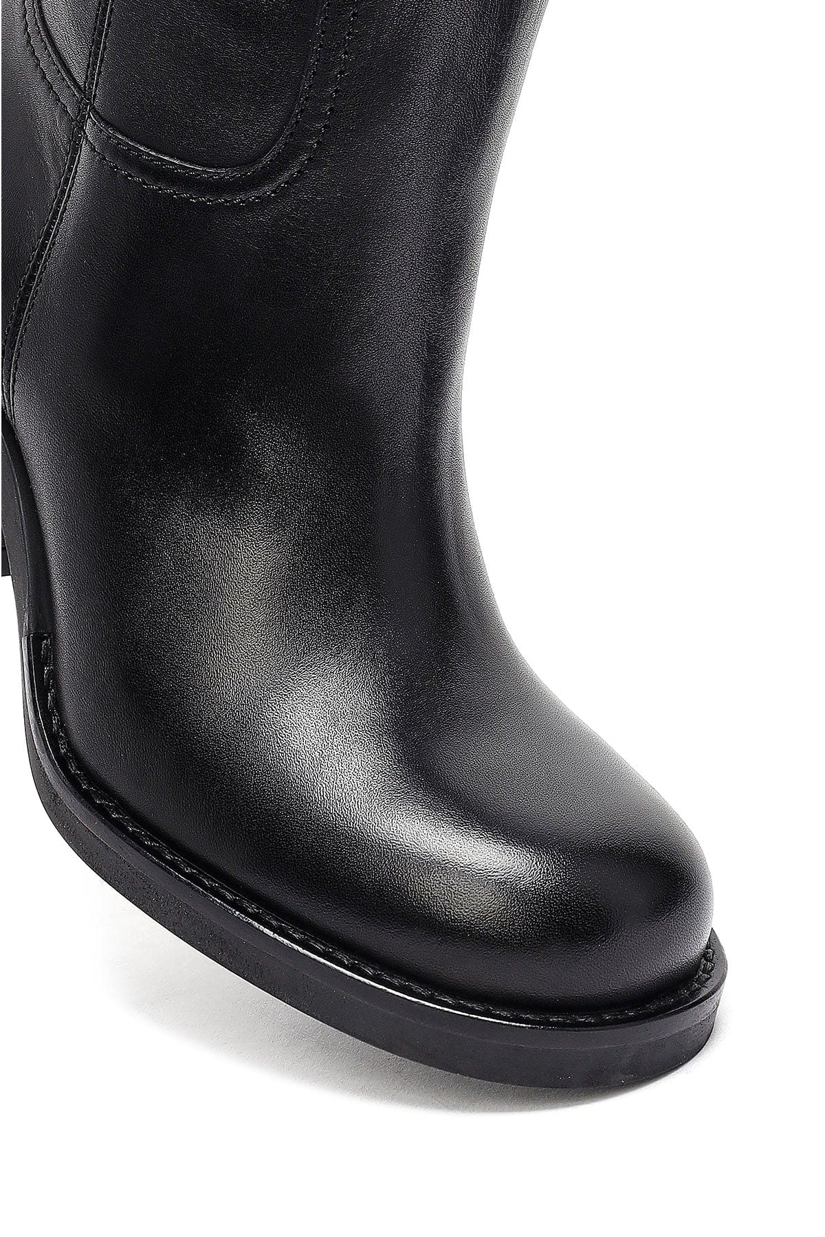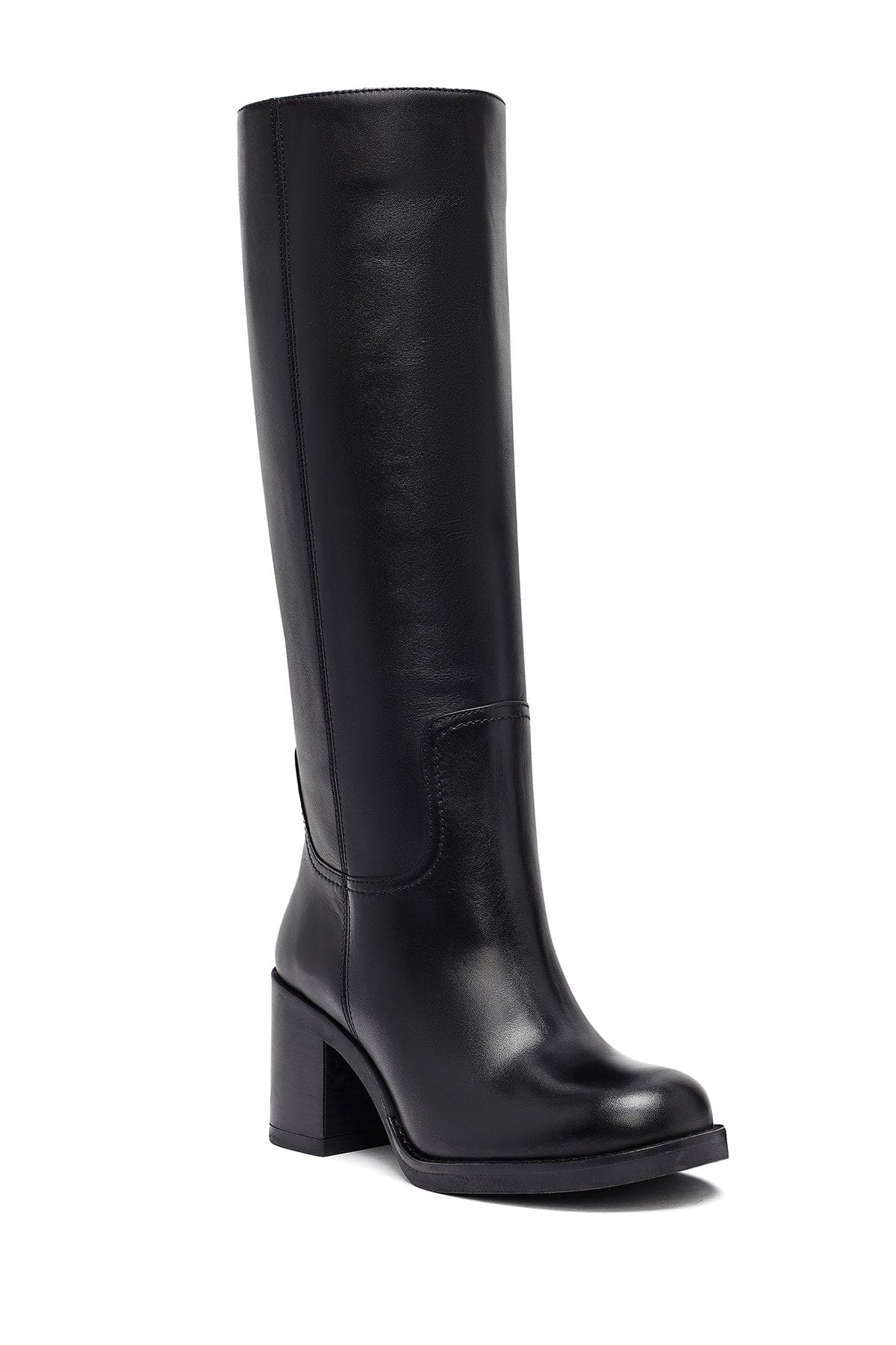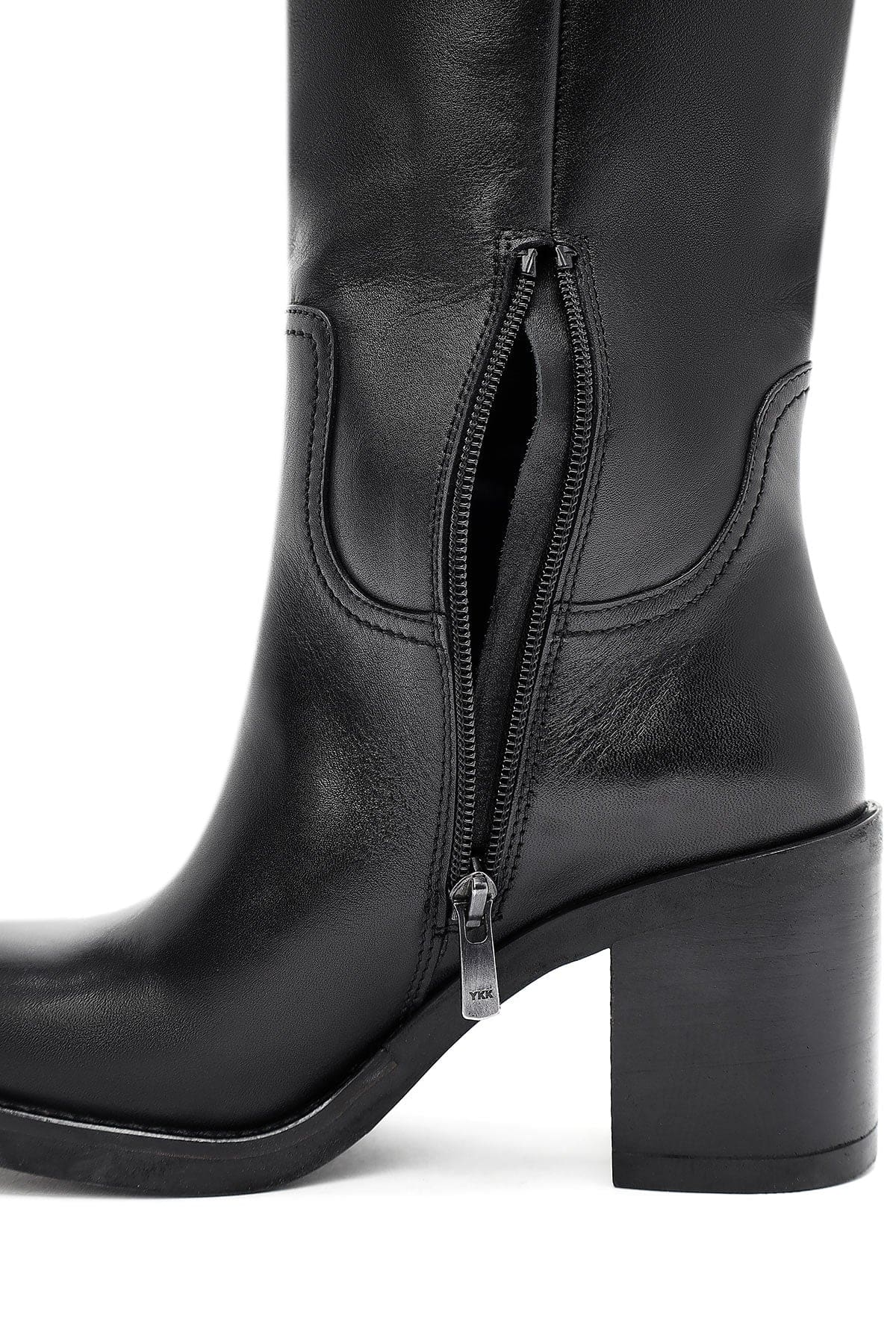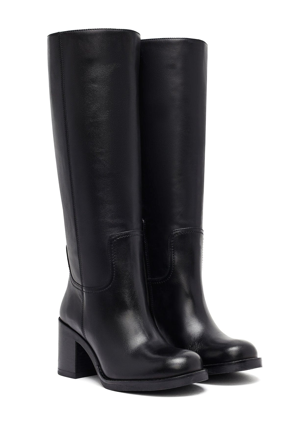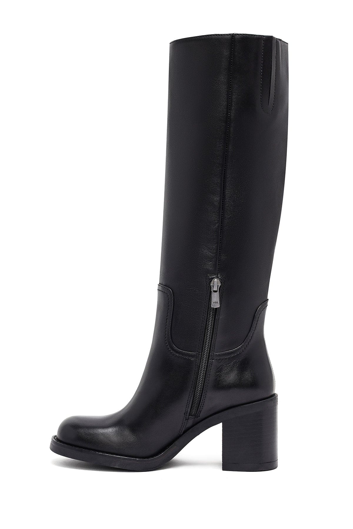 Kadın Siyah Fermuarlı Kalın Topuklu Deri Çizme