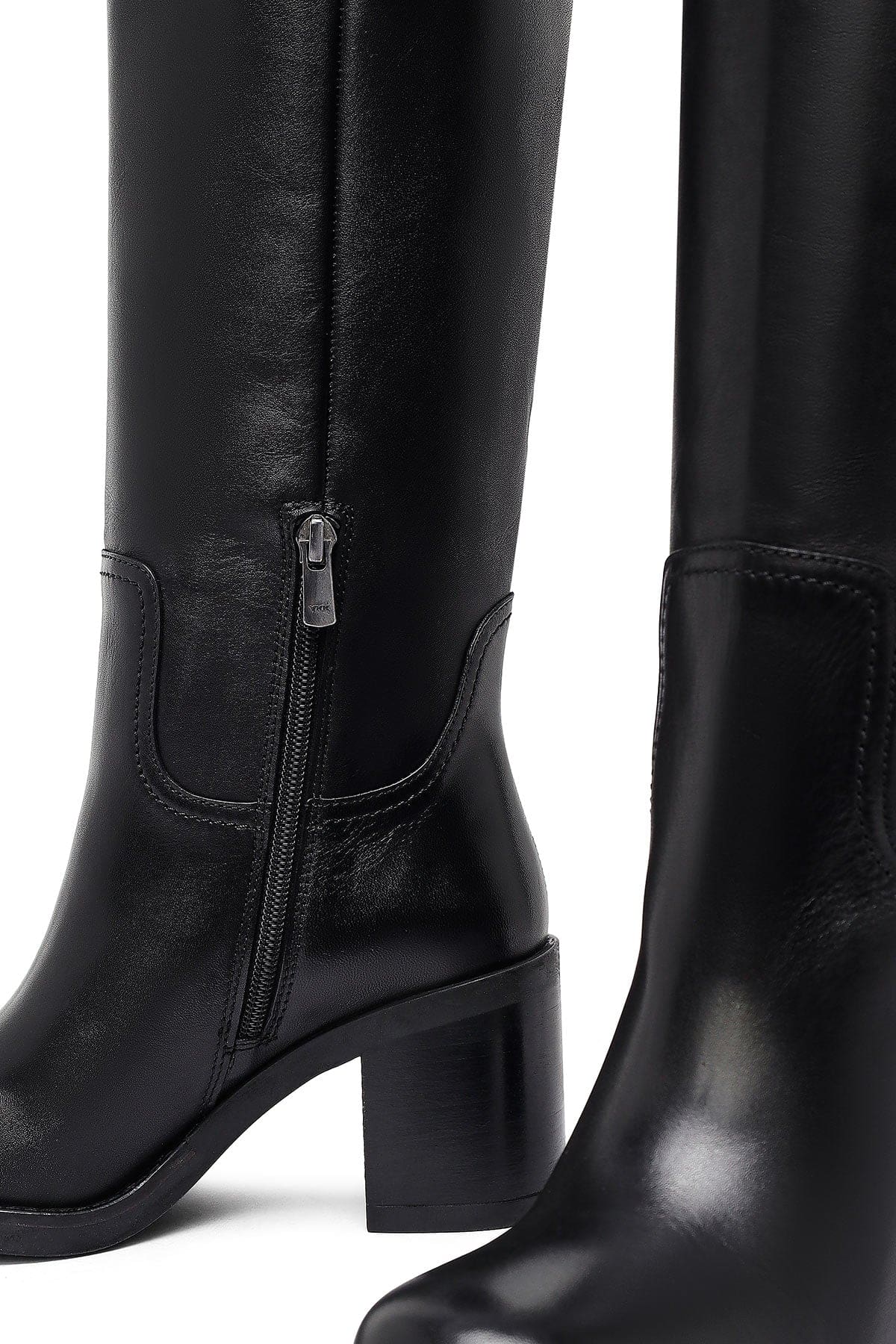 چکمه زنانه مشکی چرمی زیپدار پاشنه ضخیم دری مد