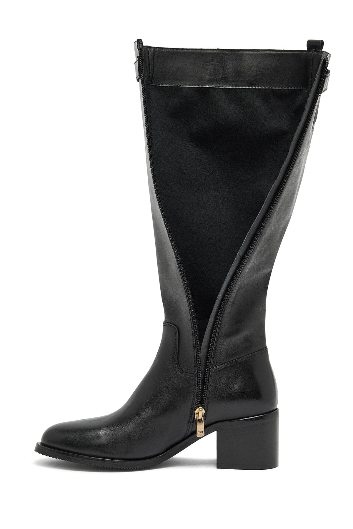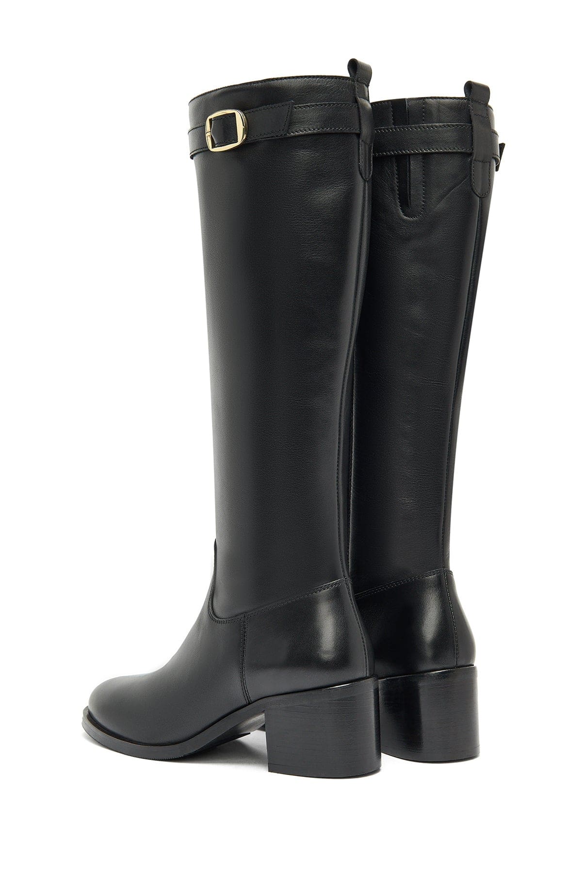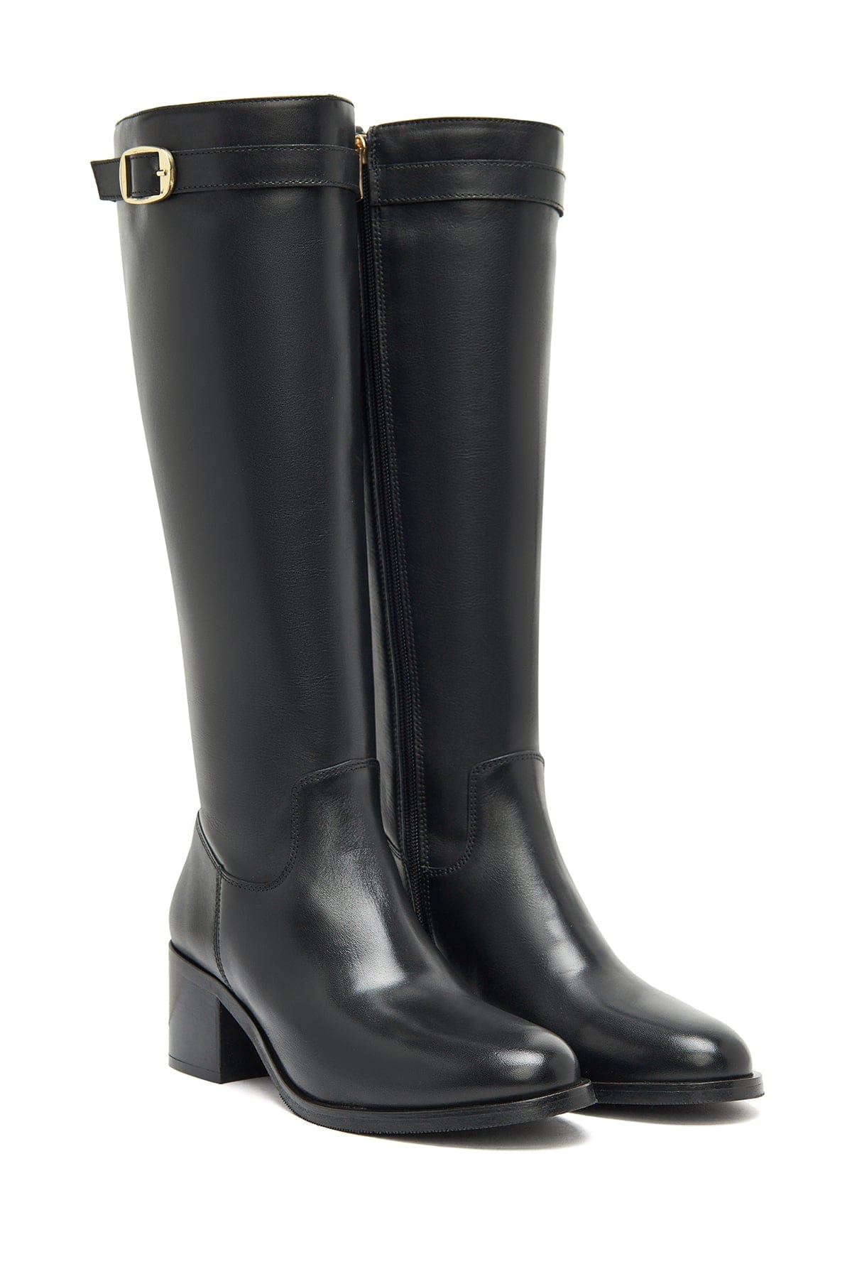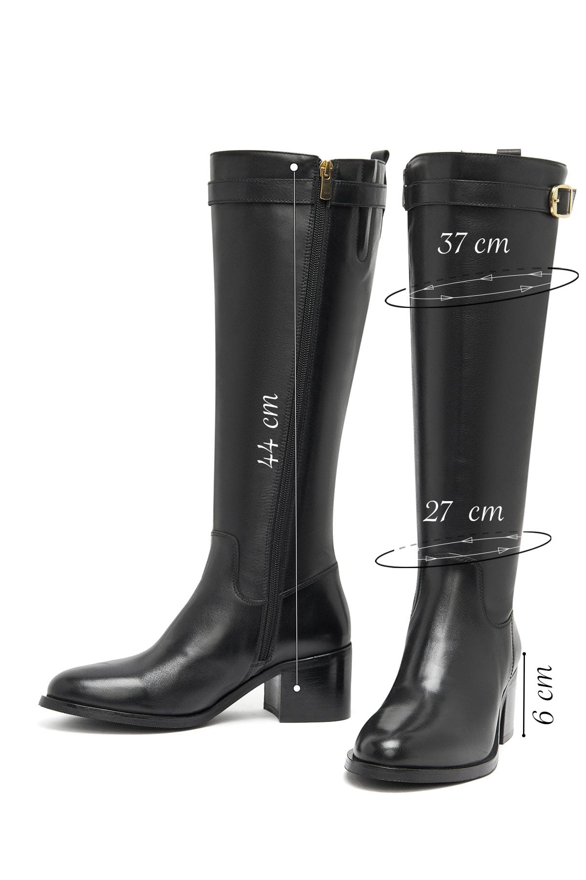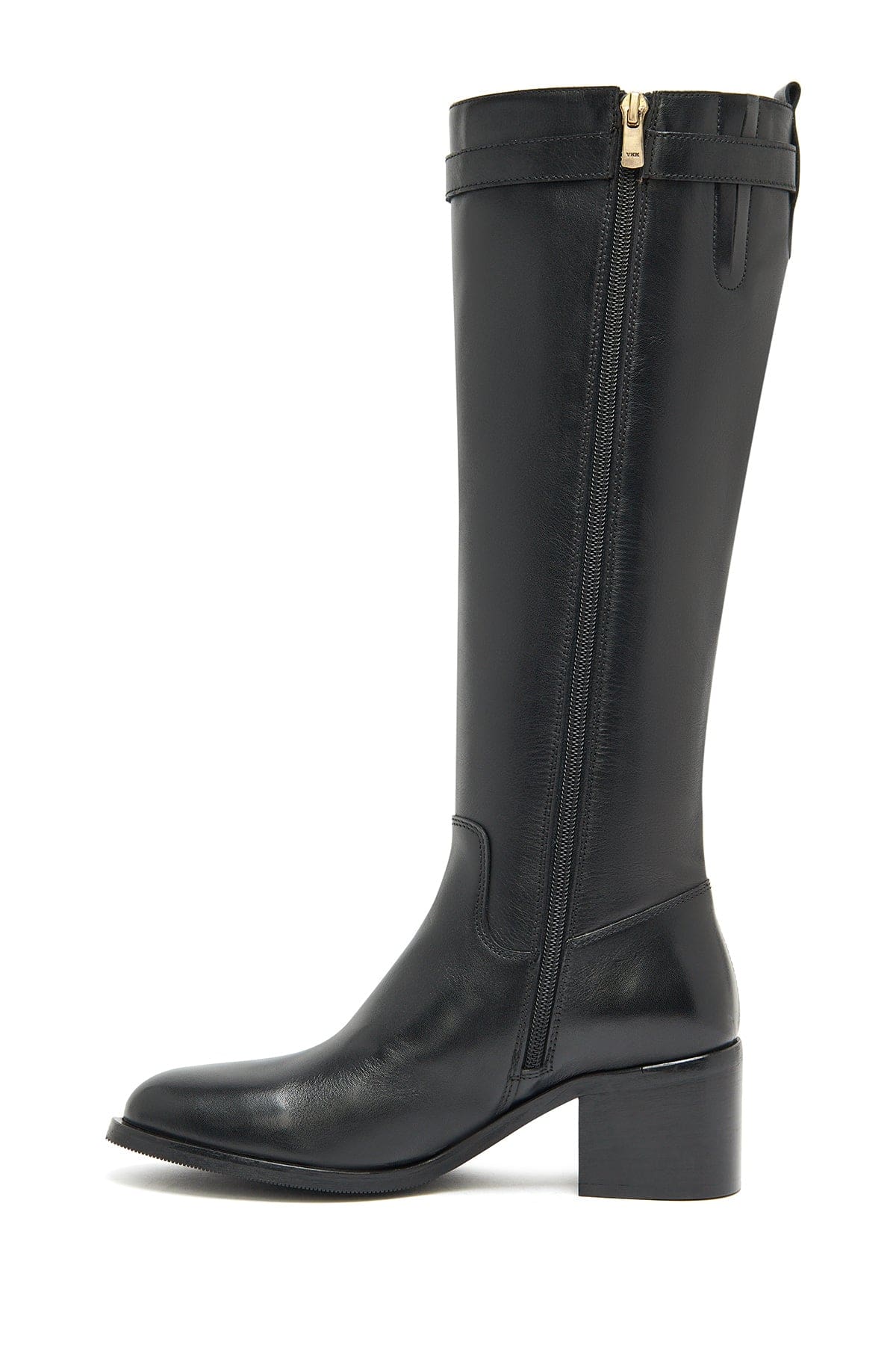 Kadın Siyah Fermuarlı Kalın Topuklu Deri Çizme