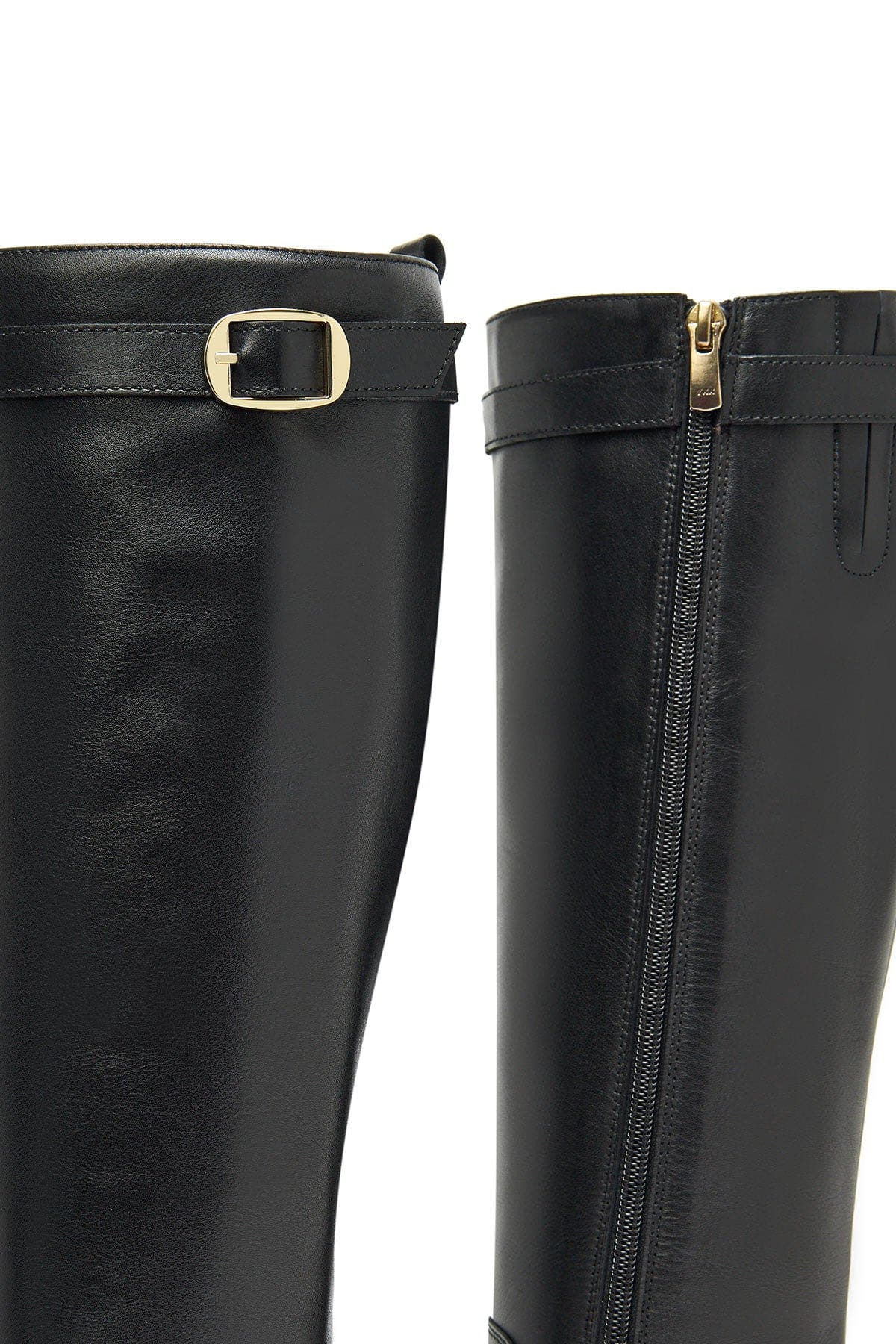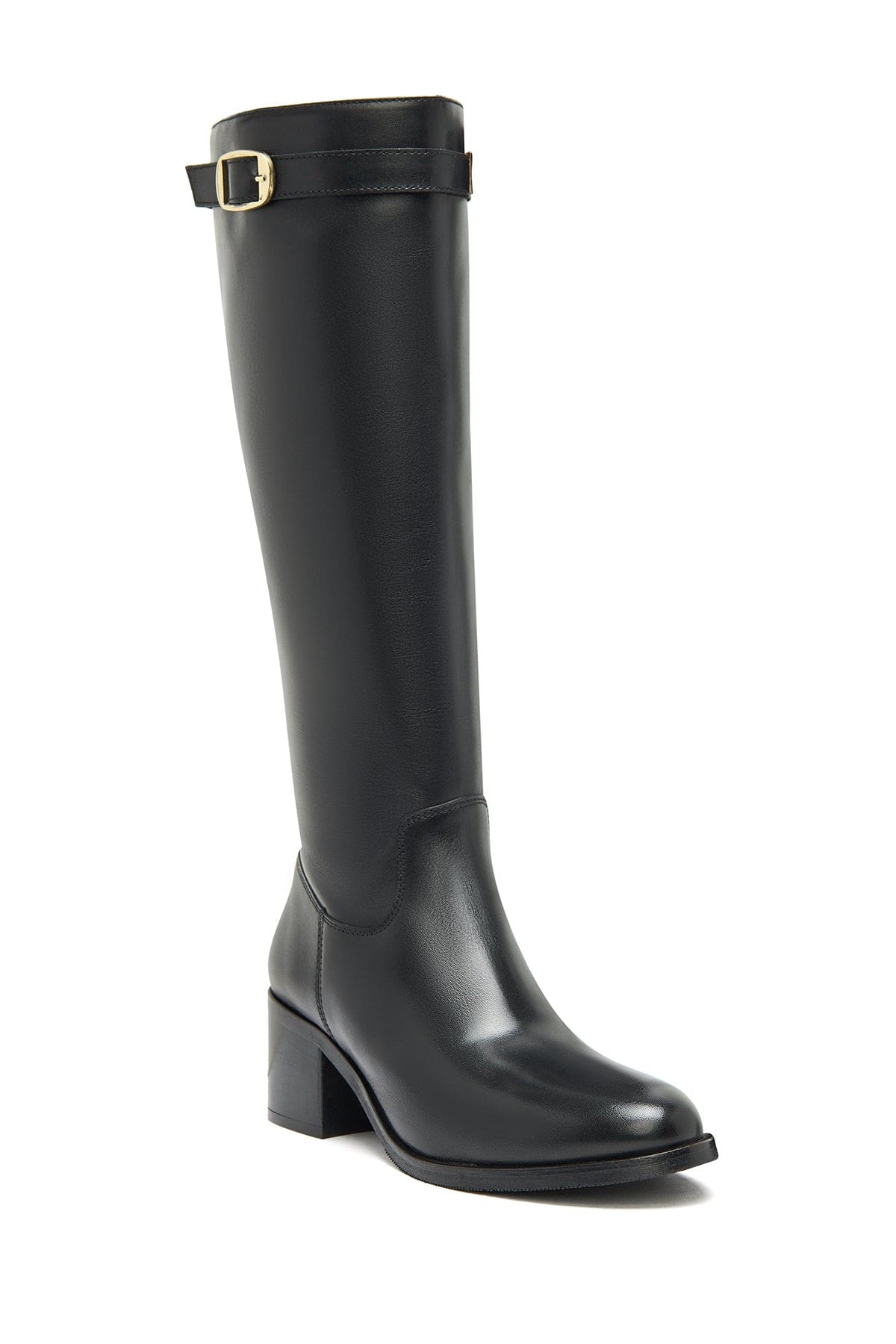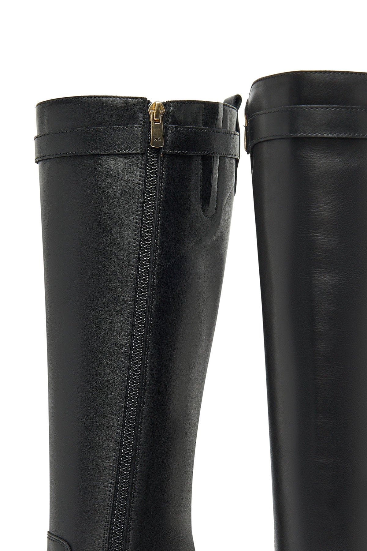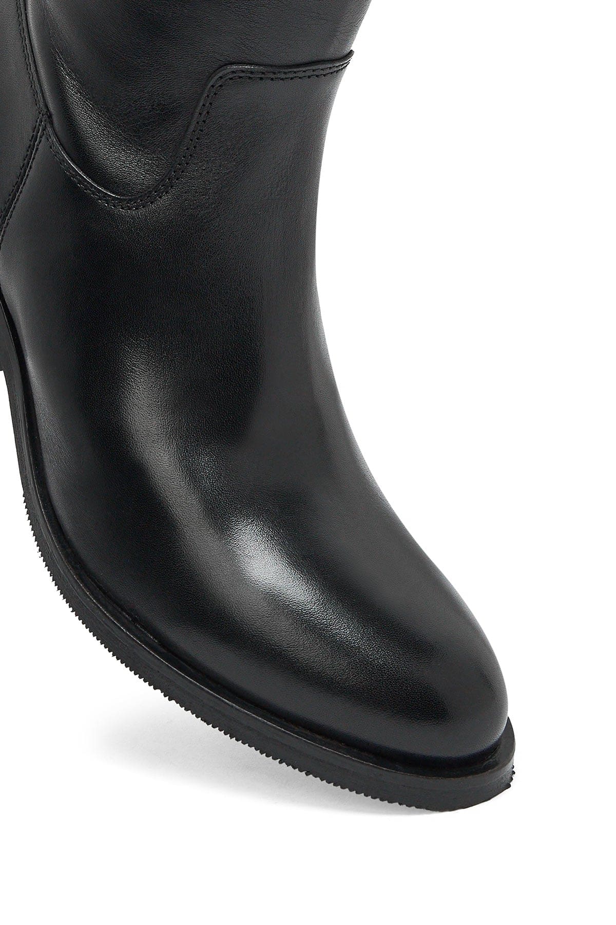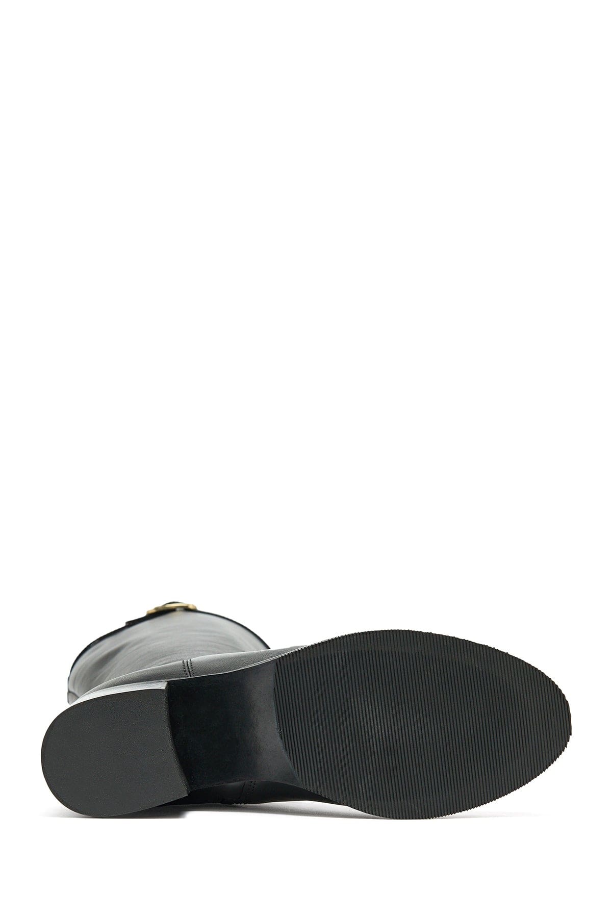 Kadın Siyah Fermuarlı Kalın Topuklu Deri Çizme