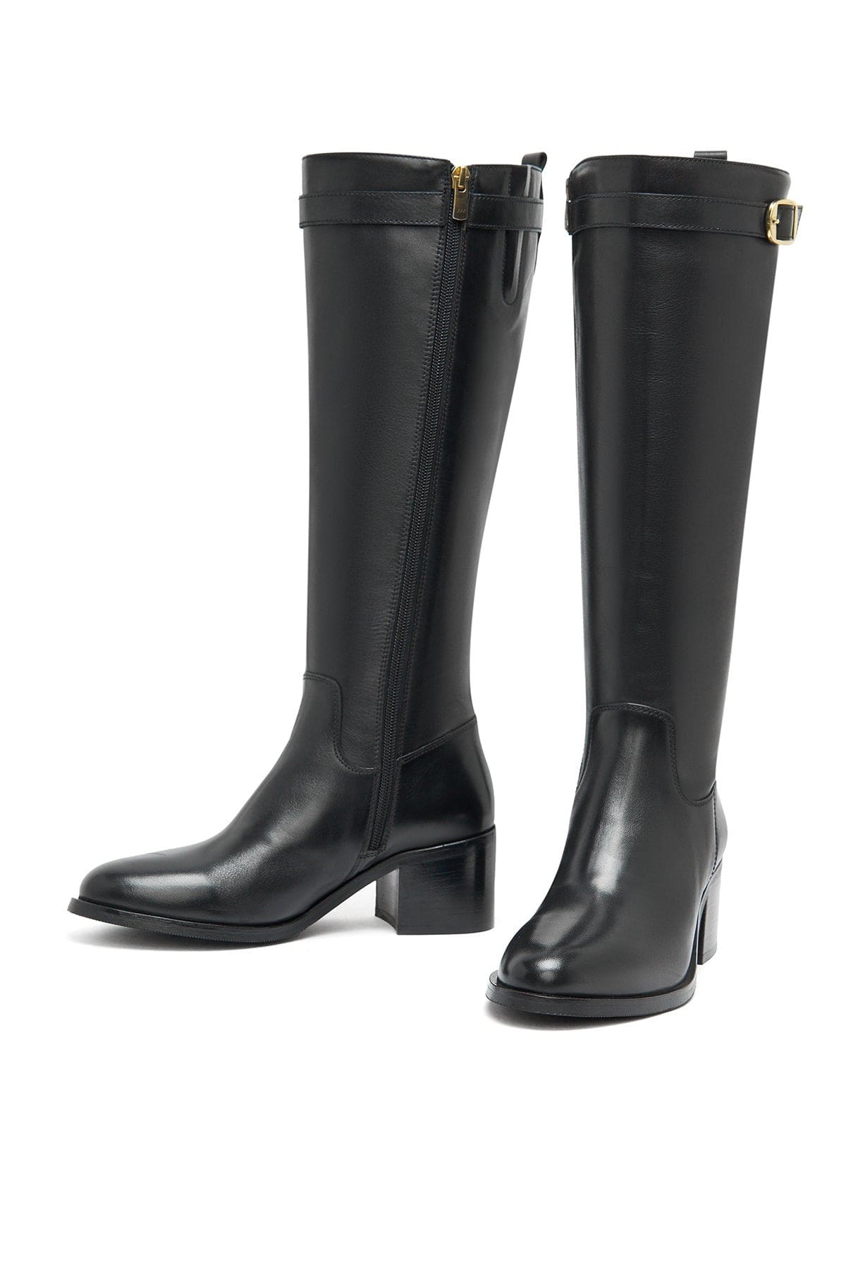 چکمه زنانه مشکی چرمی زیپدار پاشنه ضخیم دری مد